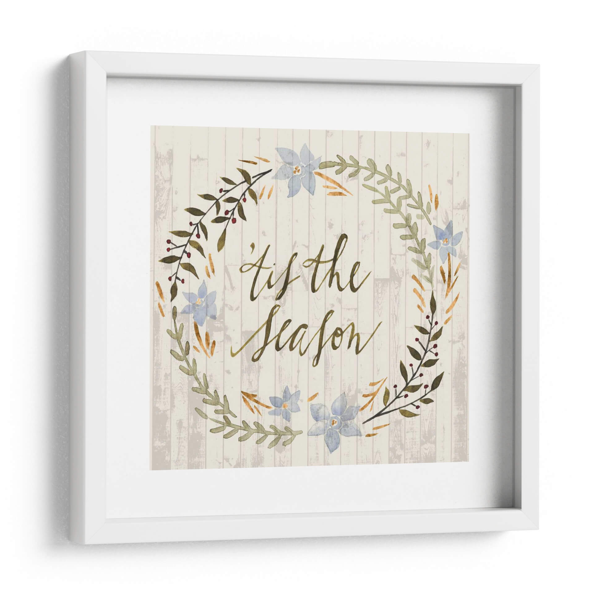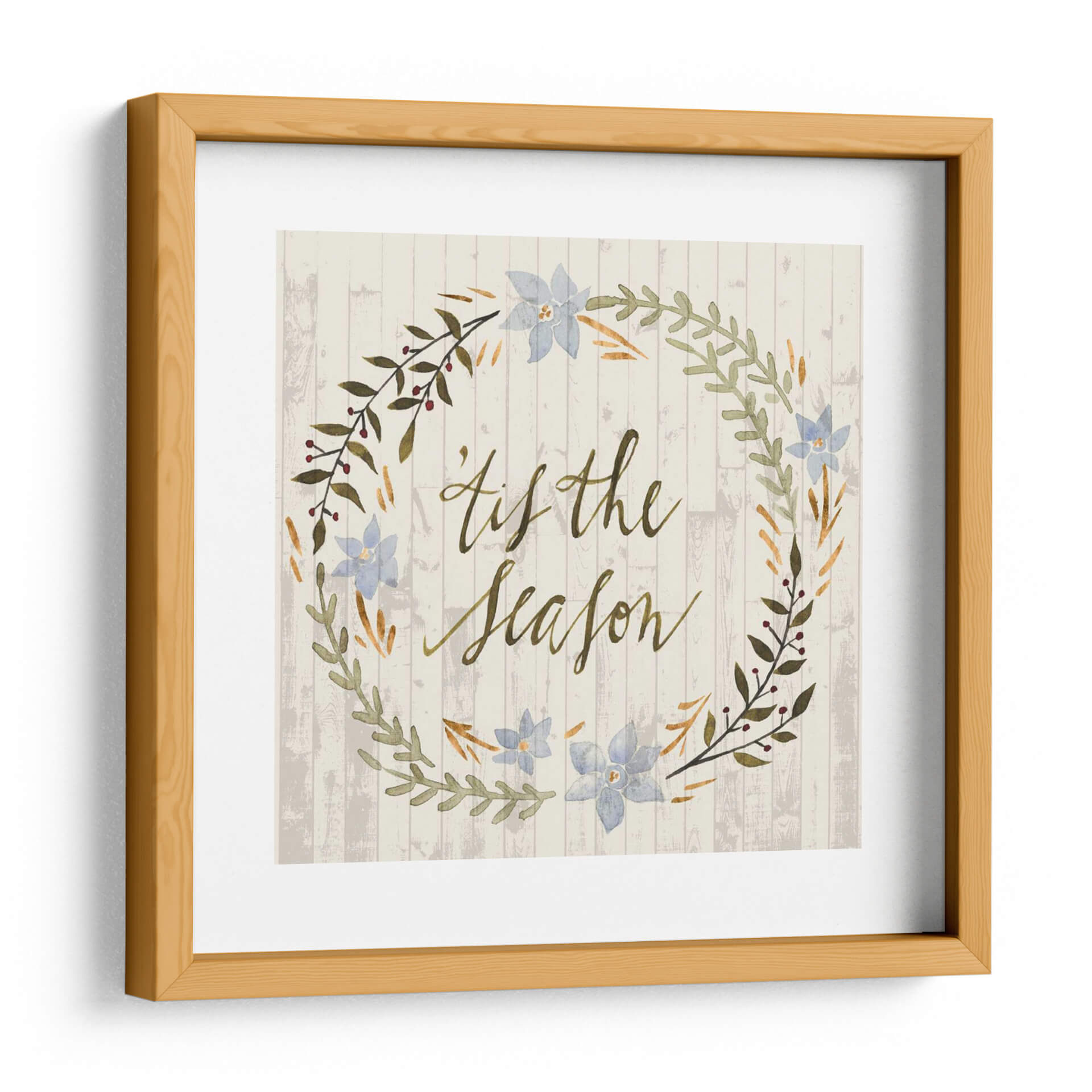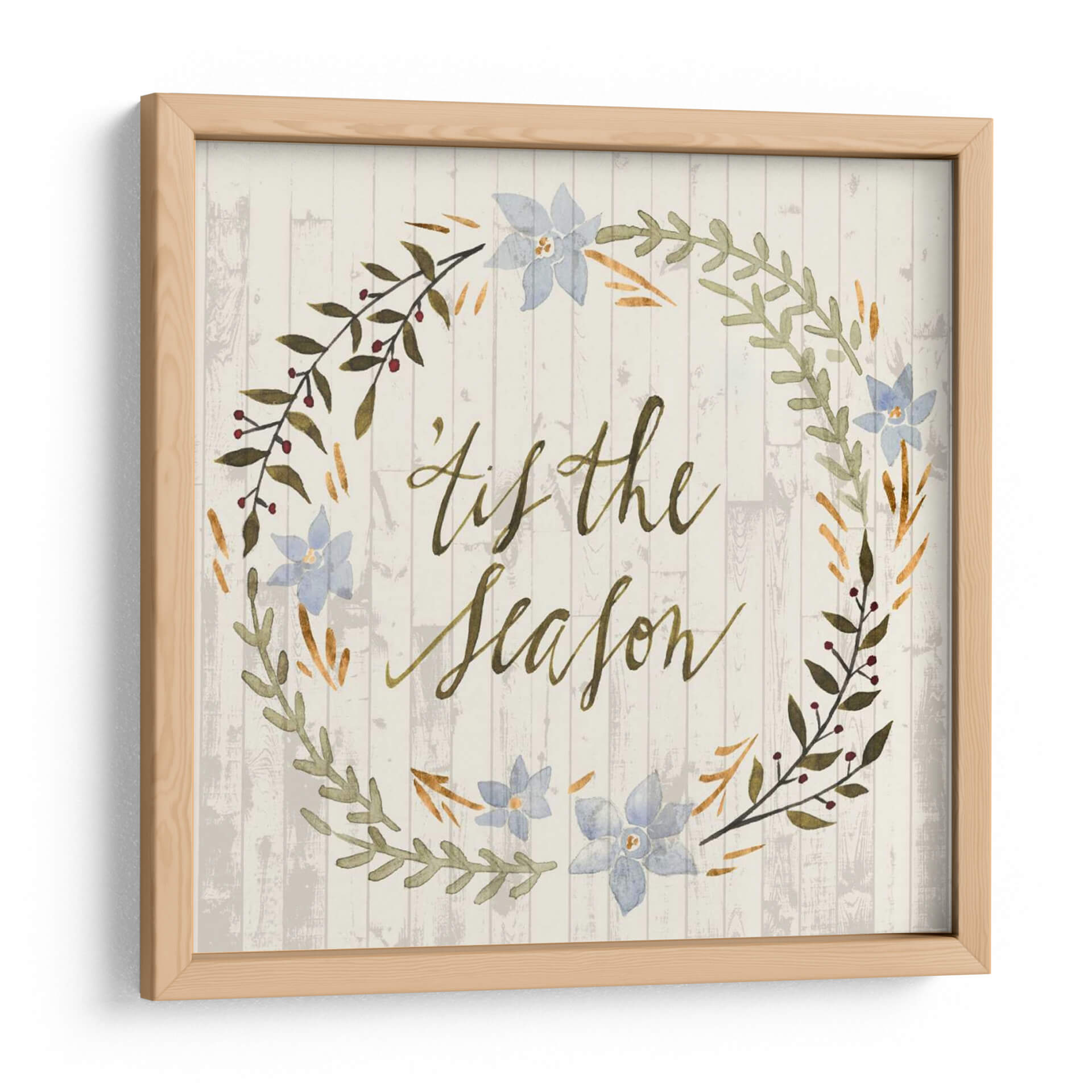 Celebra la temporada con encanto y estilo rústico gracias a "Navidad Rústica IV", una obra de arte que captura la esencia de las festividades con una delicadeza acuarelada. Esta pieza presenta una corona de ramas verdes, sutiles flores en tonos azules pálidos y bayas rojas, todo ello sobre un fondo de tablones de madera clara, evocando una sensación de calidez y bienvenida. El texto "'tis the season" en una caligrafía dorada y fluida añade un toque festivo y elegante. Ideal para quienes buscan infundir sus hogares u oficinas con el espíritu navideño de una manera sofisticada y acogedora. Su paleta de colores suaves y terrosos la convierte en una adición versátil para cualquier decoración, desde la rústica hasta la moderna minimalista. Este cuadro decorativo es perfecto para crear un ambiente acogedor en tu sala de estar, comedor o entrada durante la época invernal. Añade un toque de arte contemporáneo y festivo a tu espacio y comparte la alegría de la temporada con esta hermosa creación de Grace Popp.