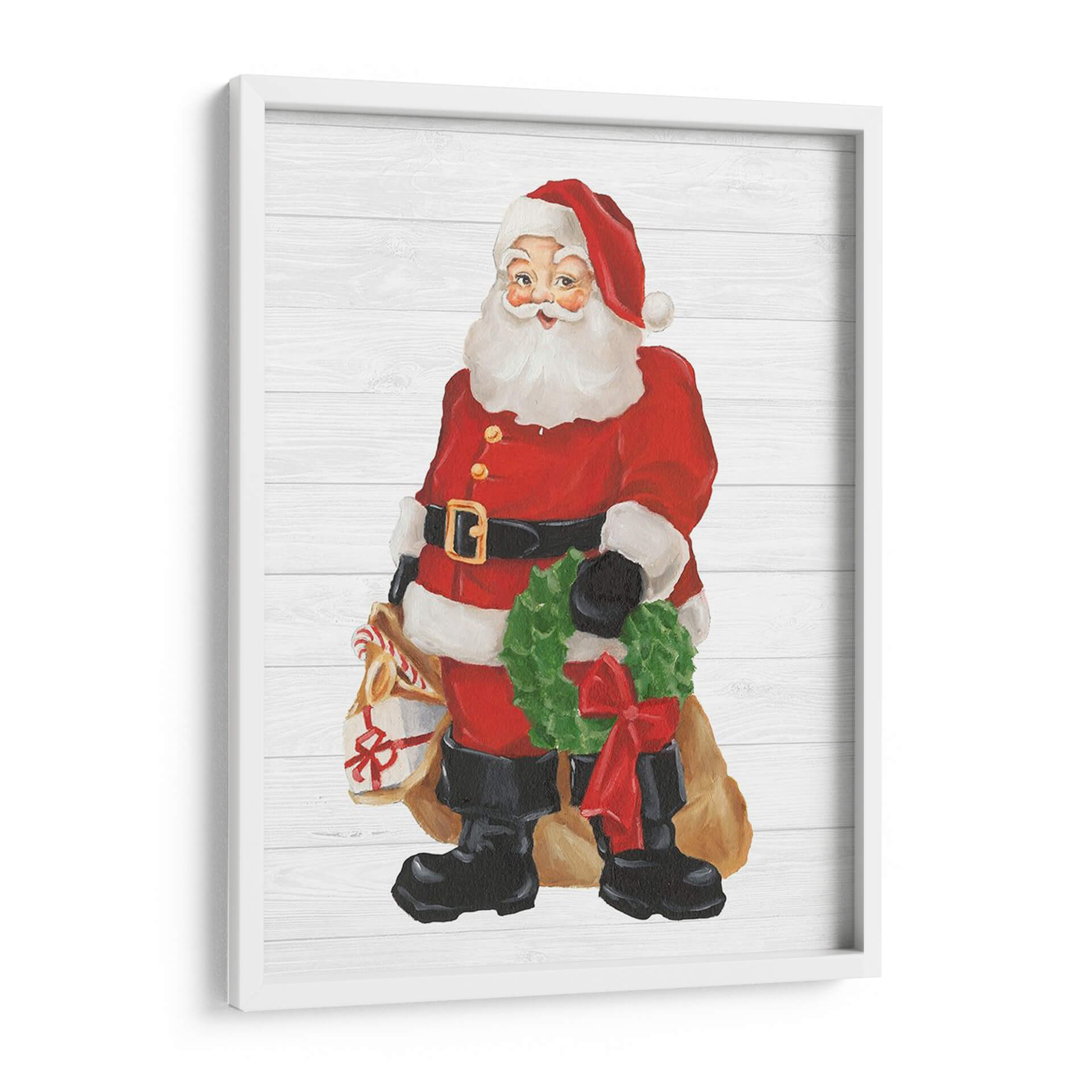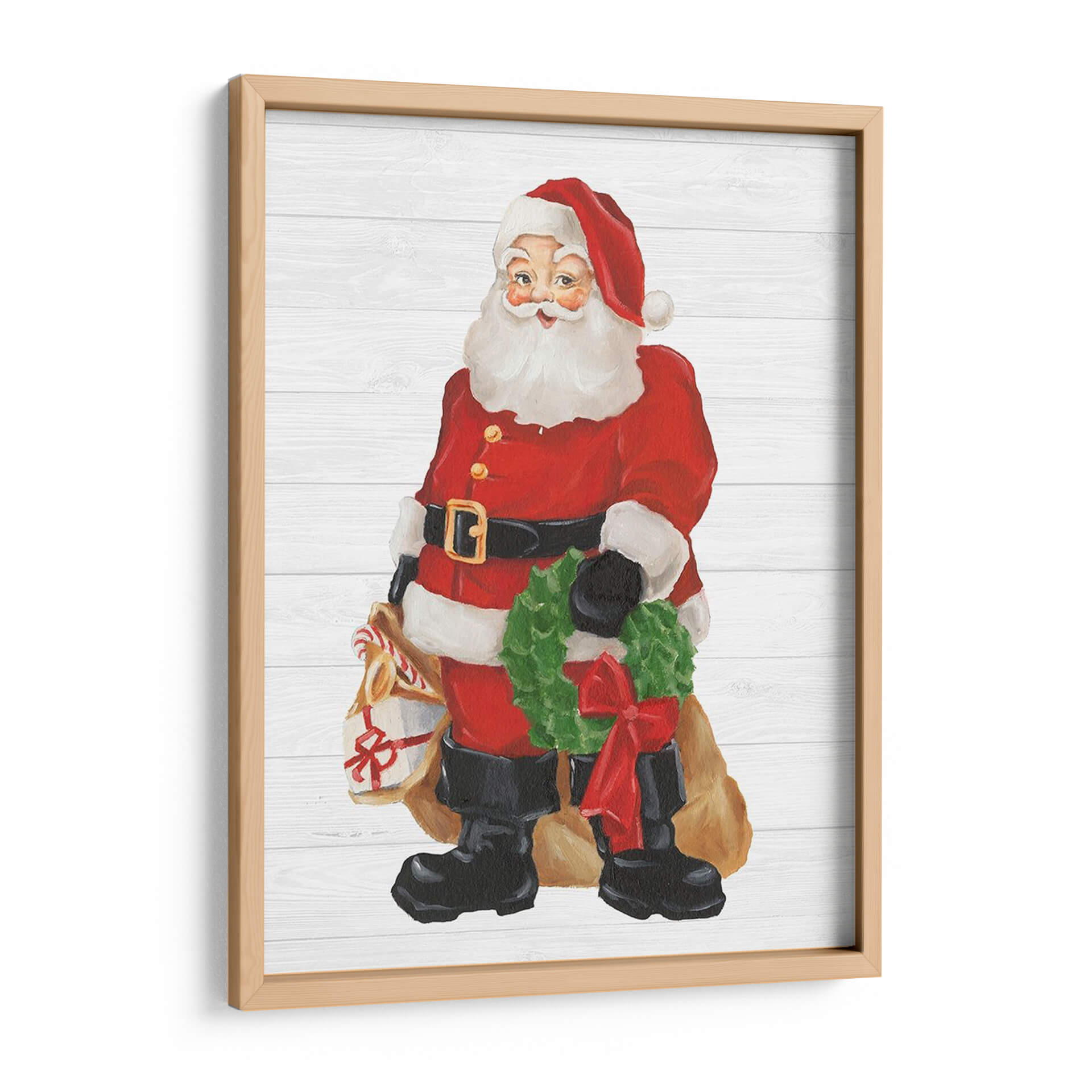Celebra la magia de la Navidad con "Nostálgico Santa I", una obra de arte que captura la esencia del espíritu festivo. Este cuadro decorativo presenta una representación encantadora de Santa Claus, con su icónico traje rojo, barba blanca y una sonrisa cálida, listo para repartir alegría. Sostenendo una corona verde adornada con un lazo rojo y acompañado de un saco lleno de regalos y bastones de caramelo, esta pieza evoca una profunda sensación de nostalgia y calidez hogareña. La paleta de colores, dominada por el vibrante rojo de su atuendo y el verde festivo de la corona, contrasta elegantemente con el fondo de tablones de madera en tono blanco grisáceo, creando una atmósfera acogedora y tradicional. El estilo pictórico, con pinceladas visibles que aportan textura y carácter, le confiere un aire artístico y contemporáneo. "Nostálgico Santa I" es ideal para añadir un toque festivo y sentimental a tu sala de estar, comedor o cualquier espacio que desees llenar de espíritu navideño. Es una pieza perfecta para coleccionistas de arte navideño o para quienes buscan revivir la ilusión de la infancia durante la temporada decembrina. Transforma tu hogar en un refugio de alegría y tradición con este cautivador cuadro decorativo.