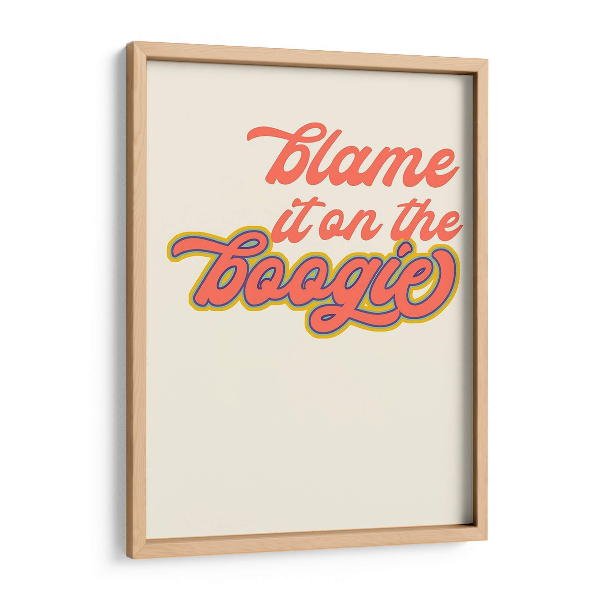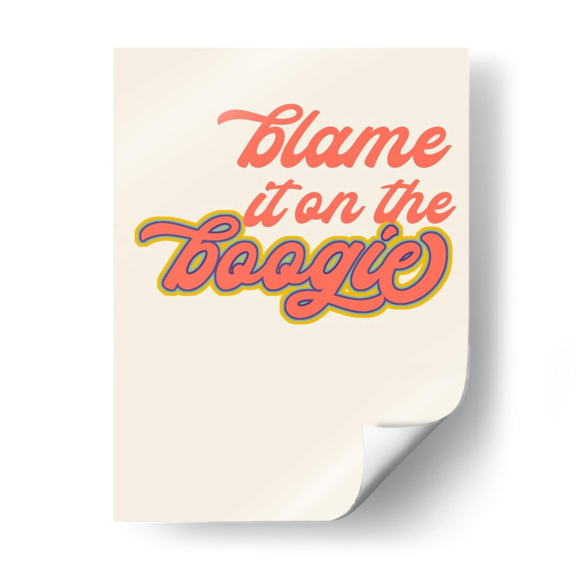 Inyecta una dosis de diversión y nostalgia a tu espacio con "Oh Bebe Yo", una obra de arte de Anna Hambly que evoca el espíritu de la pista de baile. Esta pieza presenta una tipografía audaz y juguetona, con la frase "Blame it on the Boogie" escrita en vibrantes tonos coral y azul, acentuada con un contorno amarillo y azul que le añade profundidad y un aire retro. El fondo de color crema proporciona un lienzo limpio y suave que permite que las letras resalten, creando un contraste visual atractivo. El estilo gráfico y el mensaje desenfadado hacen de este cuadro decorativo una adición perfecta para salas de estar, estudios o cualquier lugar donde se desee añadir un toque de energía y alegría. Ideal para quienes aprecian el arte pop y la estética vintage, "Oh Bebe Yo" es más que una simple decoración; es una invitación a la celebración y al optimismo. Transforma tu hogar en un espacio lleno de vida y personalidad con esta pieza única.