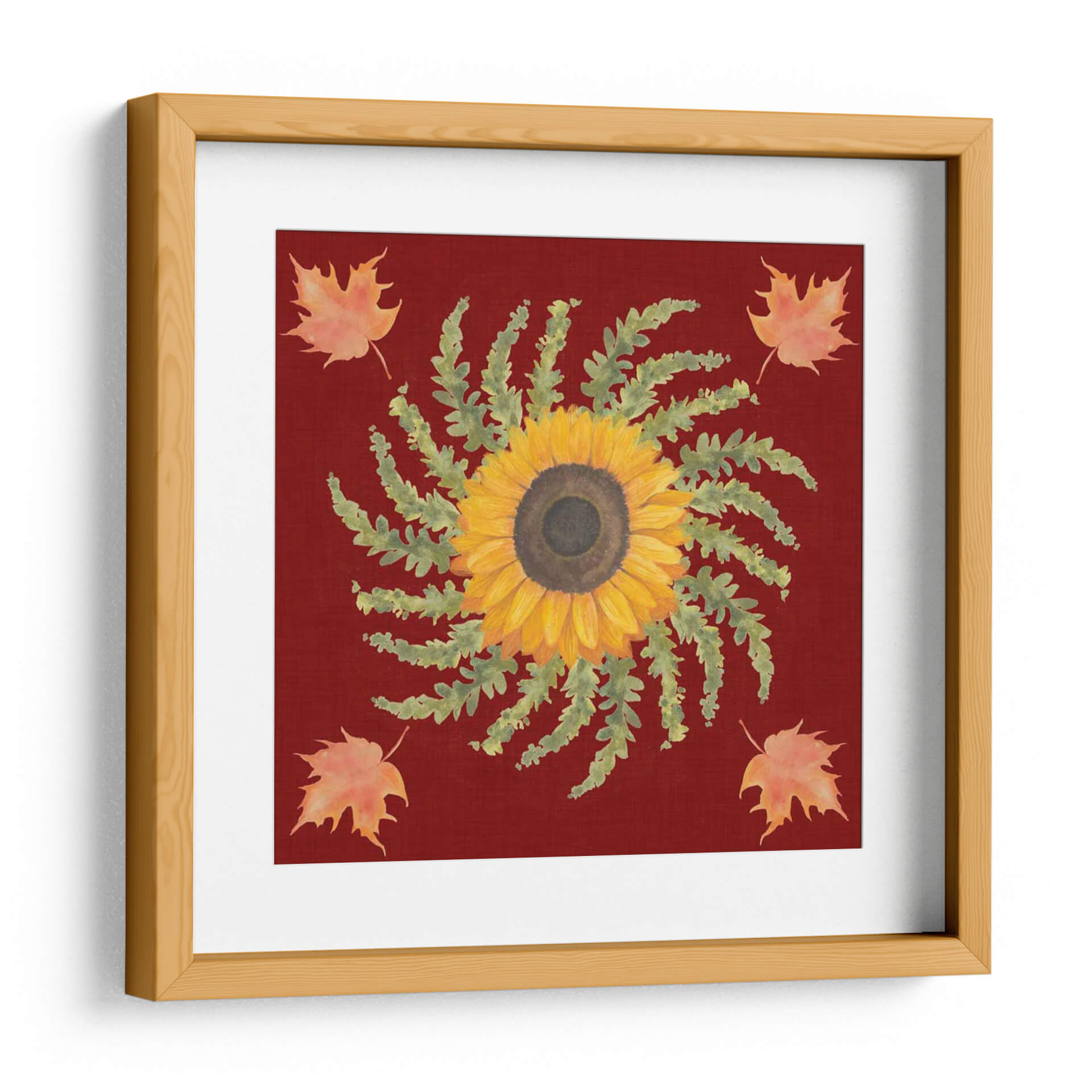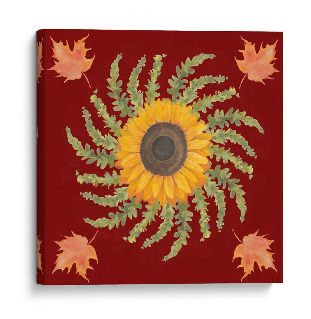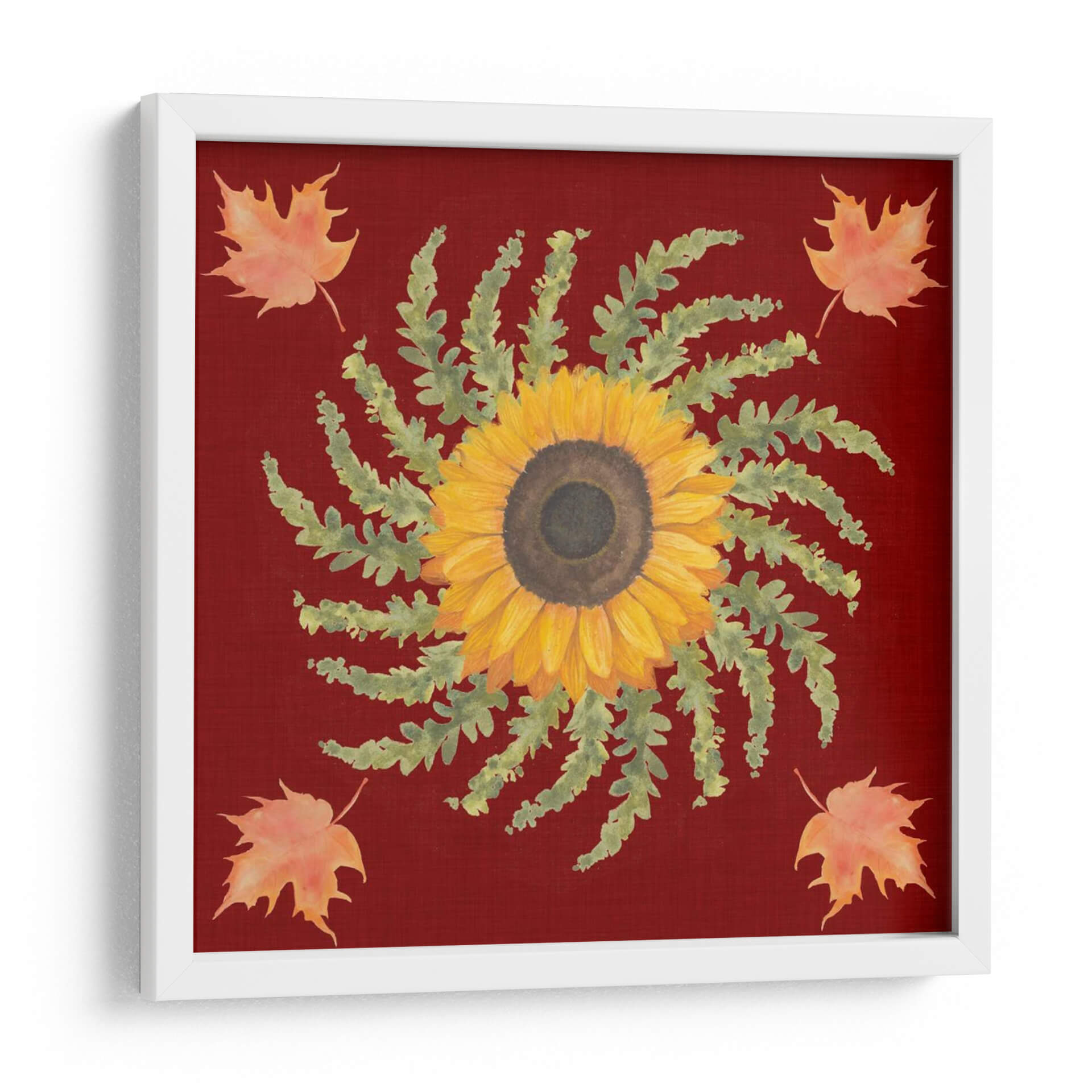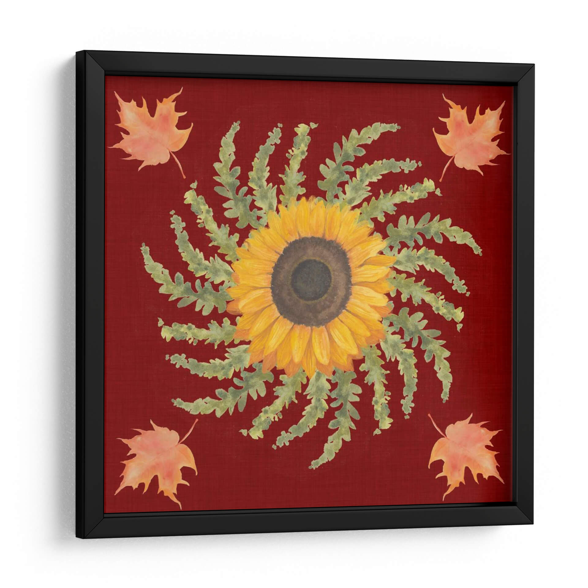 Sumérgete en la calidez y la belleza del otoño con "Otoño Floral I", una cautivadora obra de arte de Grace Popp. Este cuadro decorativo presenta un vibrante girasol en el centro, rodeado por una corona de frondosas hojas verdes dispuestas en un patrón circular que evoca movimiento y vida. Cuatro delicadas hojas de otoño de color naranja se dispersan armoniosamente sobre un rico fondo rojo carmesí, creando un contraste visual impactante. La composición circular y simétrica del girasol y las hojas verdes aporta una sensación de equilibrio y armonía, mientras que los toques de naranja y rojo infunden una energía acogedora y estacional. El estilo de pintura, que recuerda a la acuarela por su textura y trazos, añade un toque artístico y orgánico. Ideal para añadir un toque de color y naturaleza a cualquier espacio, este cuadro es perfecto para salones, comedores o incluso oficinas que busquen una pieza que celebre la abundancia y la serenidad de la estación. "Otoño Floral I" no es solo una decoración, es una invitación a sentir la esencia de la cosecha y la belleza efímera del otoño. Su diseño versátil lo convierte en un punto focal encantador que complementará una variedad de estilos decorativos, desde el rústico hasta el contemporáneo.