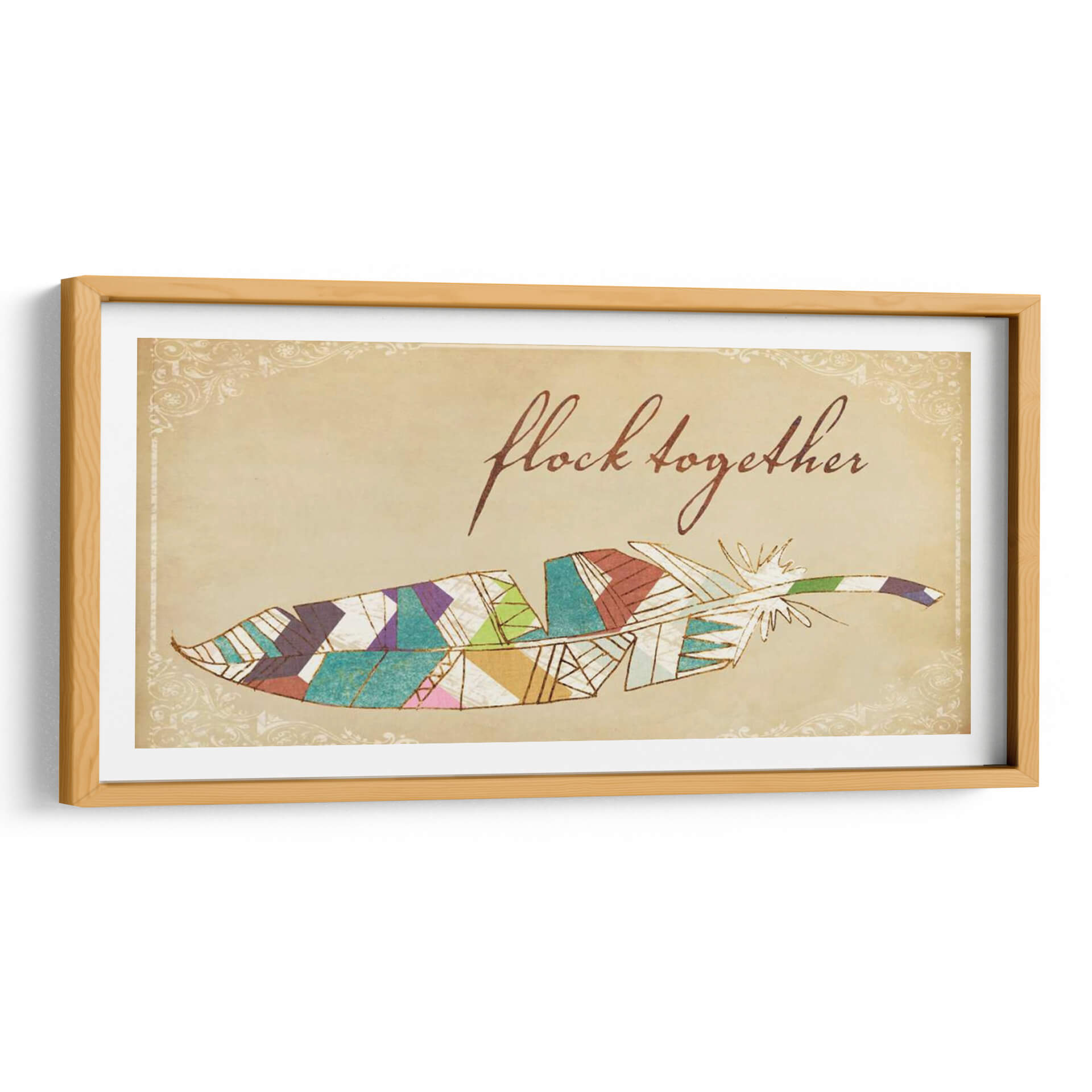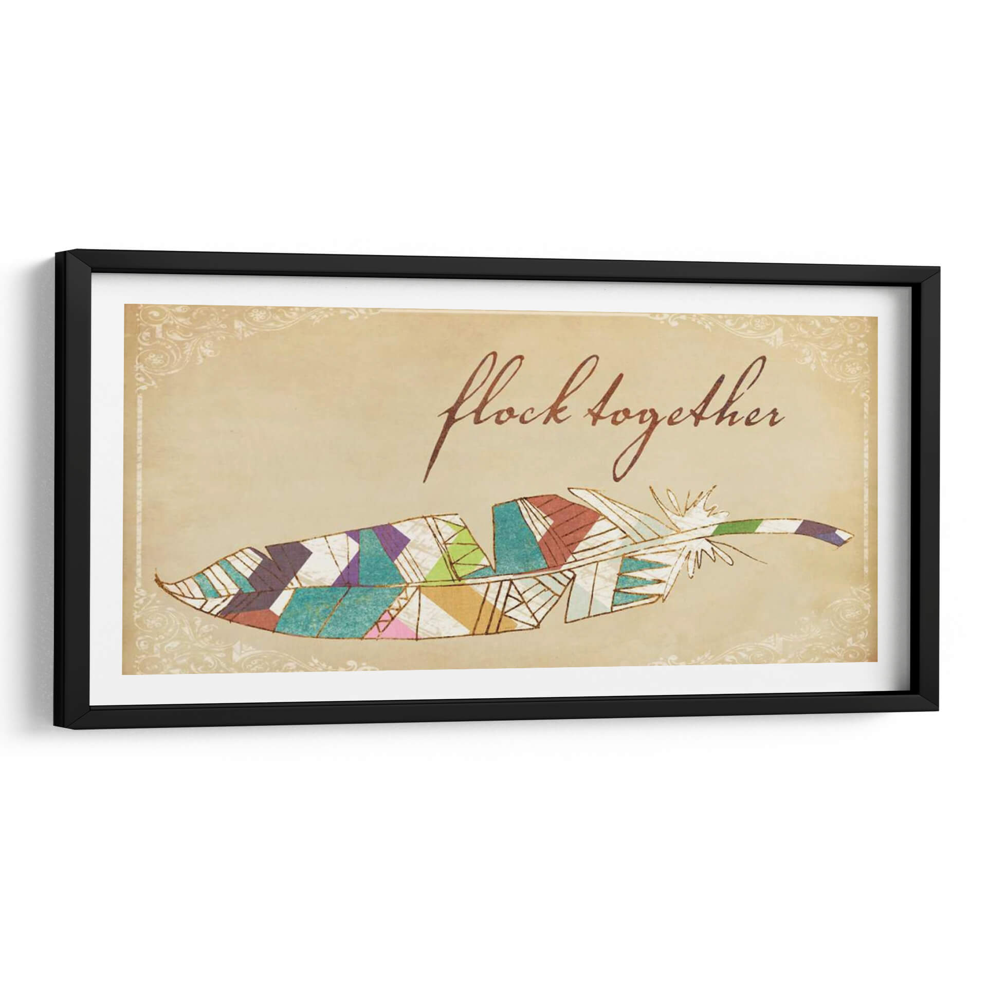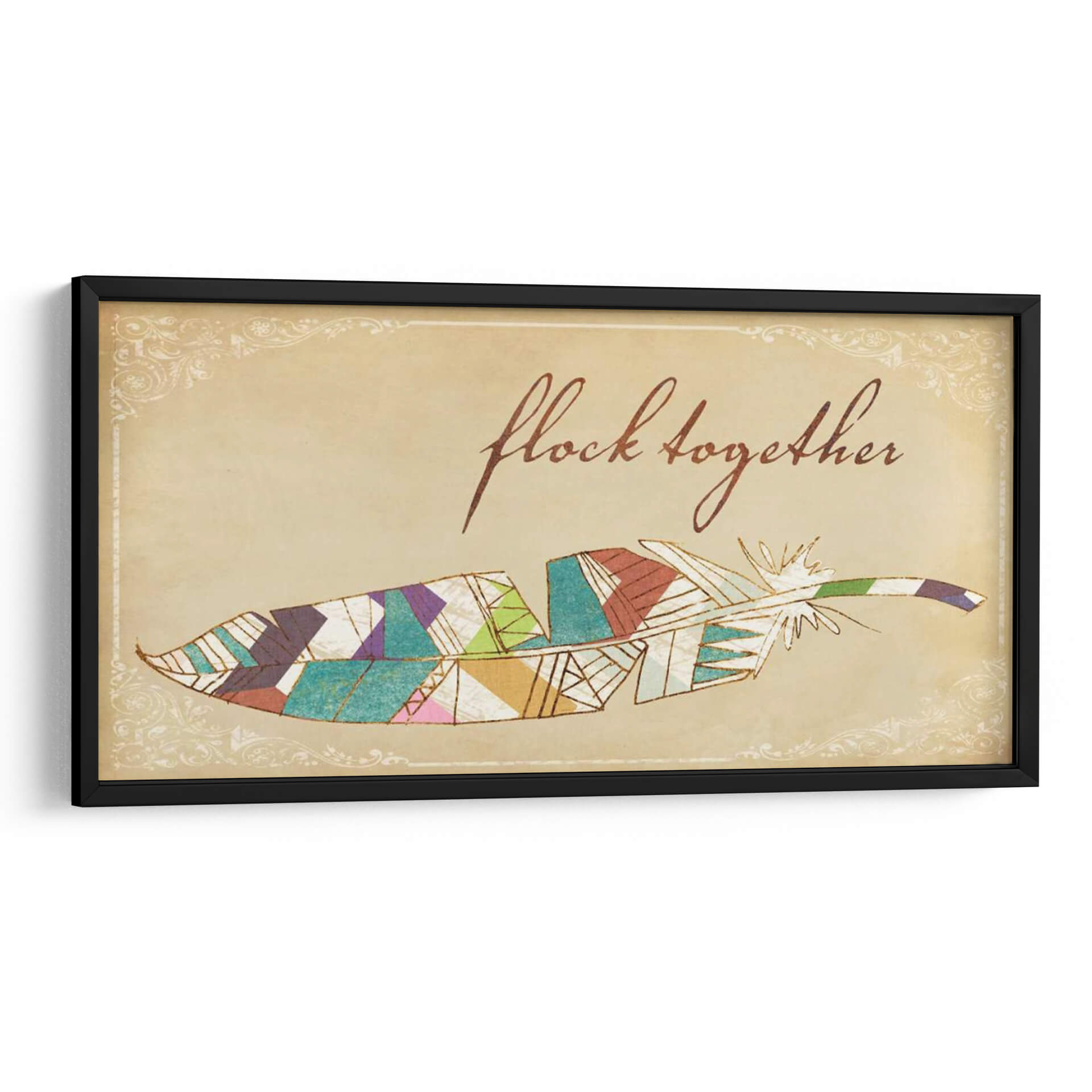 Transforma tu espacio con "Pájaros De Una Pluma II", una cautivadora obra de Jarman Fagalde que fusiona la delicadeza de una pluma con un vibrante diseño geométrico. Los colores tierra del fondo evocan una sensación de calidez y nostalgia, mientras que los detalles en acuarela y las líneas doradas aportan un toque de sofisticación y brillo. La composición, centrada en esta estilizada pluma, se ve realzada por un elegante marco ornamental de estilo vintage, creando un contraste visual fascinante entre lo orgánico y lo decorativo. Esta pieza es perfecta para añadir un toque bohemio y espiritual a tu hogar u oficina. Imagina este cuadro decorativo sobre un sofá en la sala de estar, en un rincón de lectura acogedor o como pieza central en un dormitorio que busca expresar personalidad y creatividad. Su diseño versátil permite integrarlo en diversas decoraciones, desde rústicas hasta modernas con un toque étnico. "Pájaros De Una Pluma II" no es solo una decoración, es una invitación a la reflexión sobre la unión y la belleza en los detalles, un símbolo de libertad y conexión que inspirará a quienes lo contemplen. Descubre la magia de añadir arte que habla de ti y de tus aspiraciones a tu ambiente.