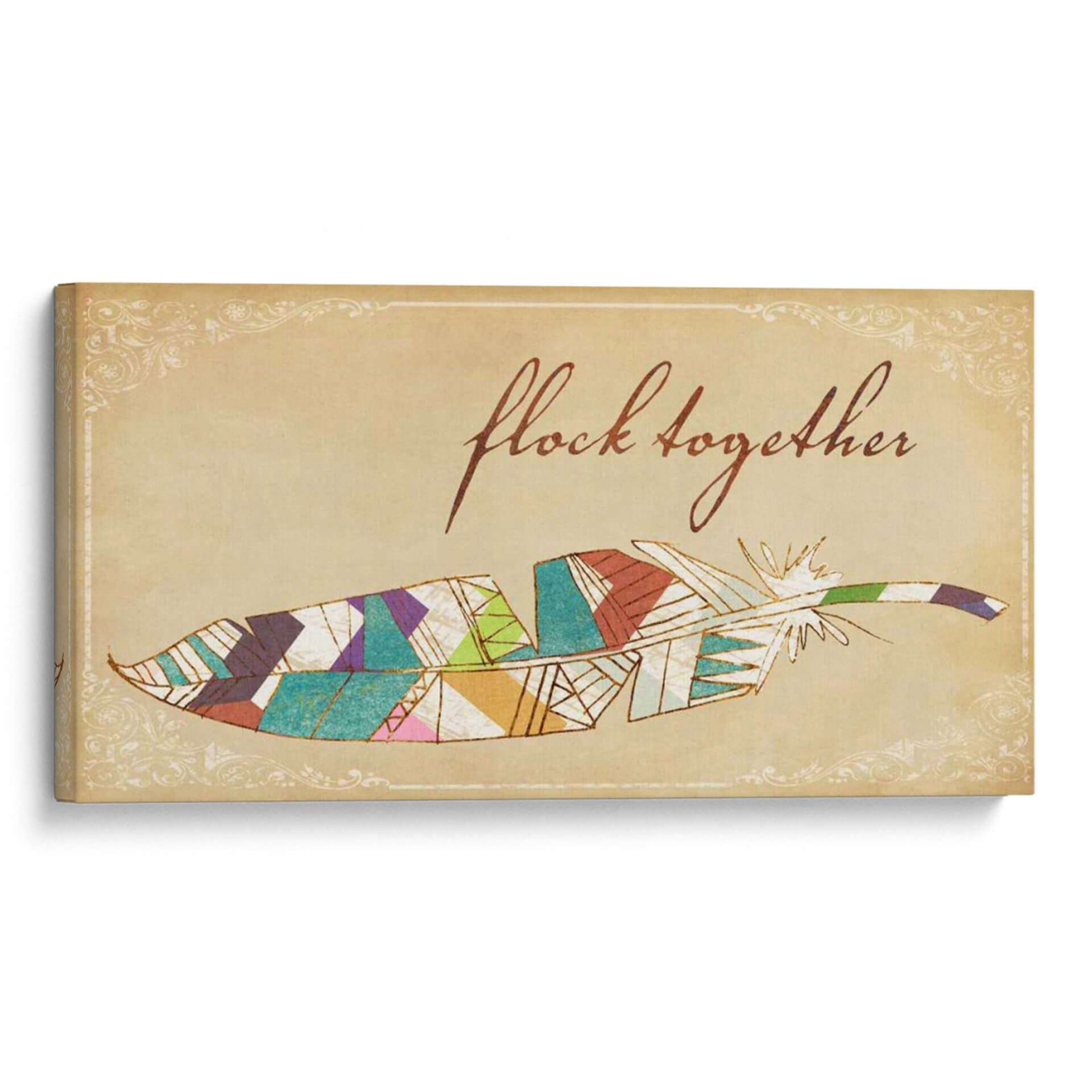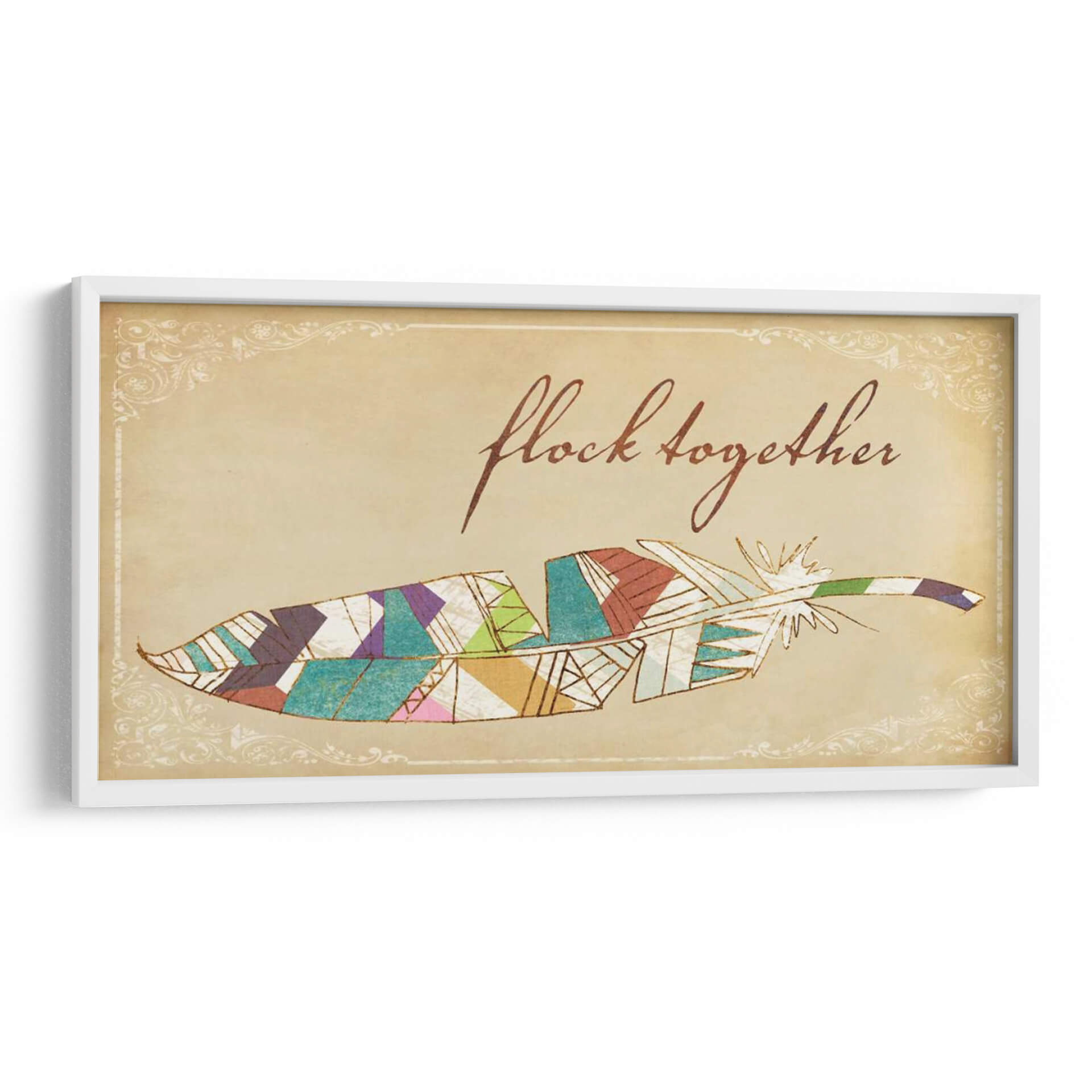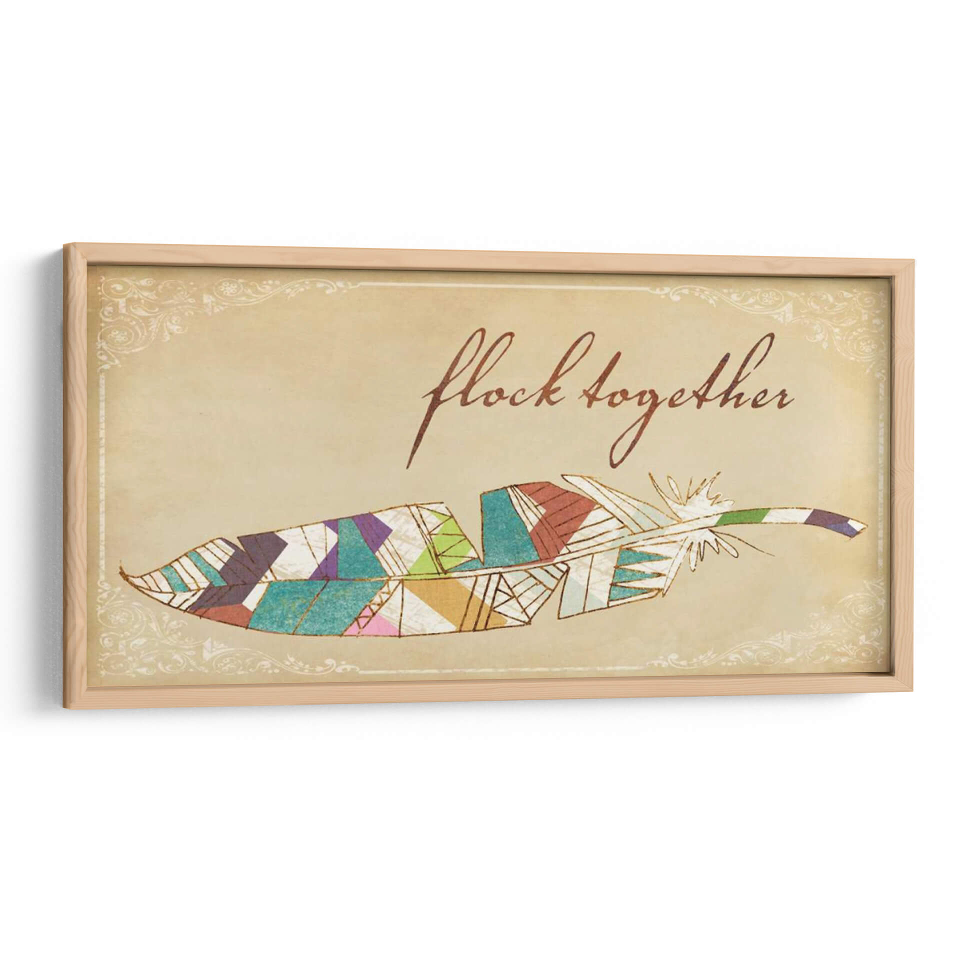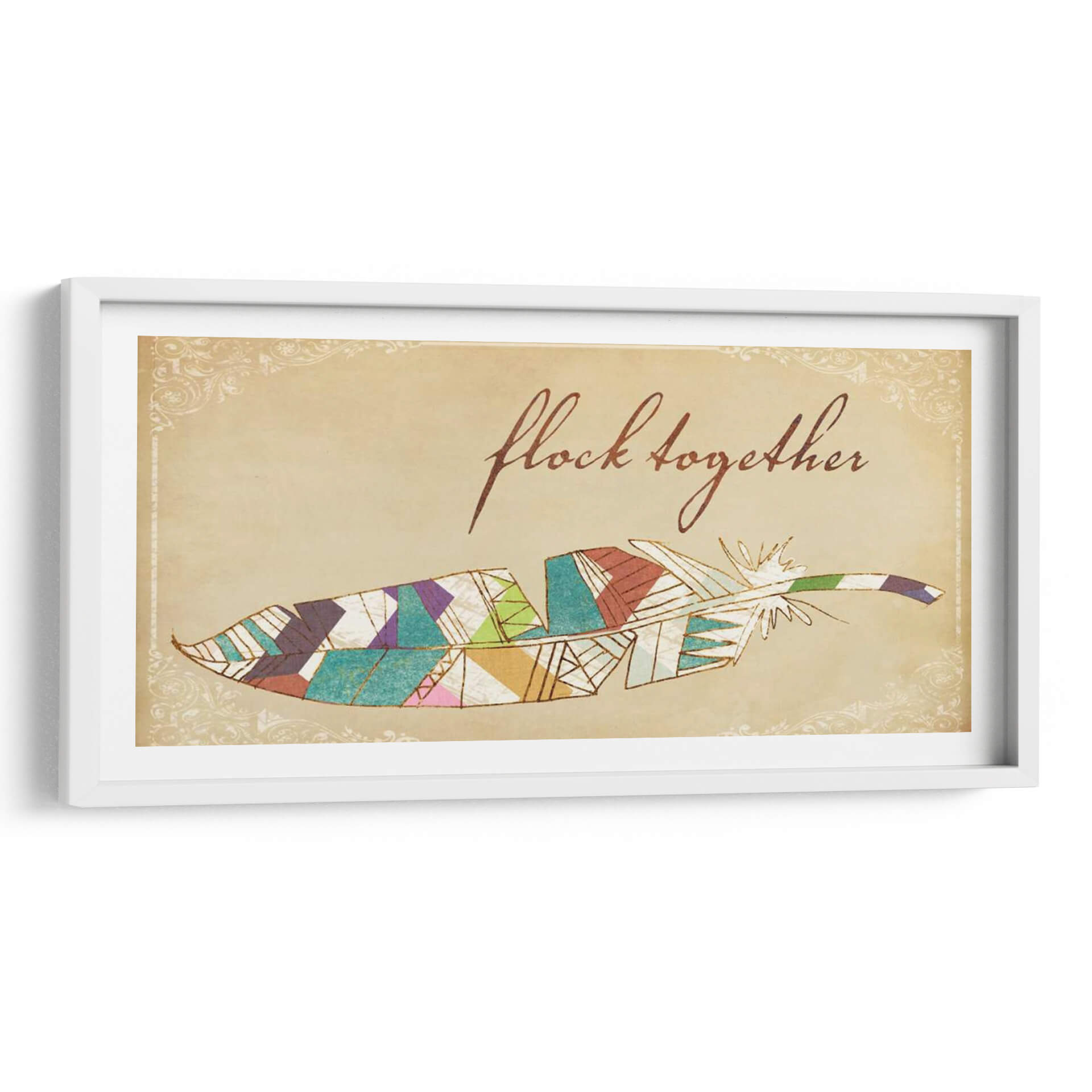 Transforma tu espacio con "Pájaros De Una Pluma II", una cautivadora obra de Jarman Fagalde que fusiona la delicadeza de una pluma con un vibrante diseño geométrico. Los colores tierra del fondo evocan una sensación de calidez y nostalgia, mientras que los detalles en acuarela y las líneas doradas aportan un toque de sofisticación y brillo. La composición, centrada en esta estilizada pluma, se ve realzada por un elegante marco ornamental de estilo vintage, creando un contraste visual fascinante entre lo orgánico y lo decorativo. Esta pieza es perfecta para añadir un toque bohemio y espiritual a tu hogar u oficina. Imagina este cuadro decorativo sobre un sofá en la sala de estar, en un rincón de lectura acogedor o como pieza central en un dormitorio que busca expresar personalidad y creatividad. Su diseño versátil permite integrarlo en diversas decoraciones, desde rústicas hasta modernas con un toque étnico. "Pájaros De Una Pluma II" no es solo una decoración, es una invitación a la reflexión sobre la unión y la belleza en los detalles, un símbolo de libertad y conexión que inspirará a quienes lo contemplen. Descubre la magia de añadir arte que habla de ti y de tus aspiraciones a tu ambiente.