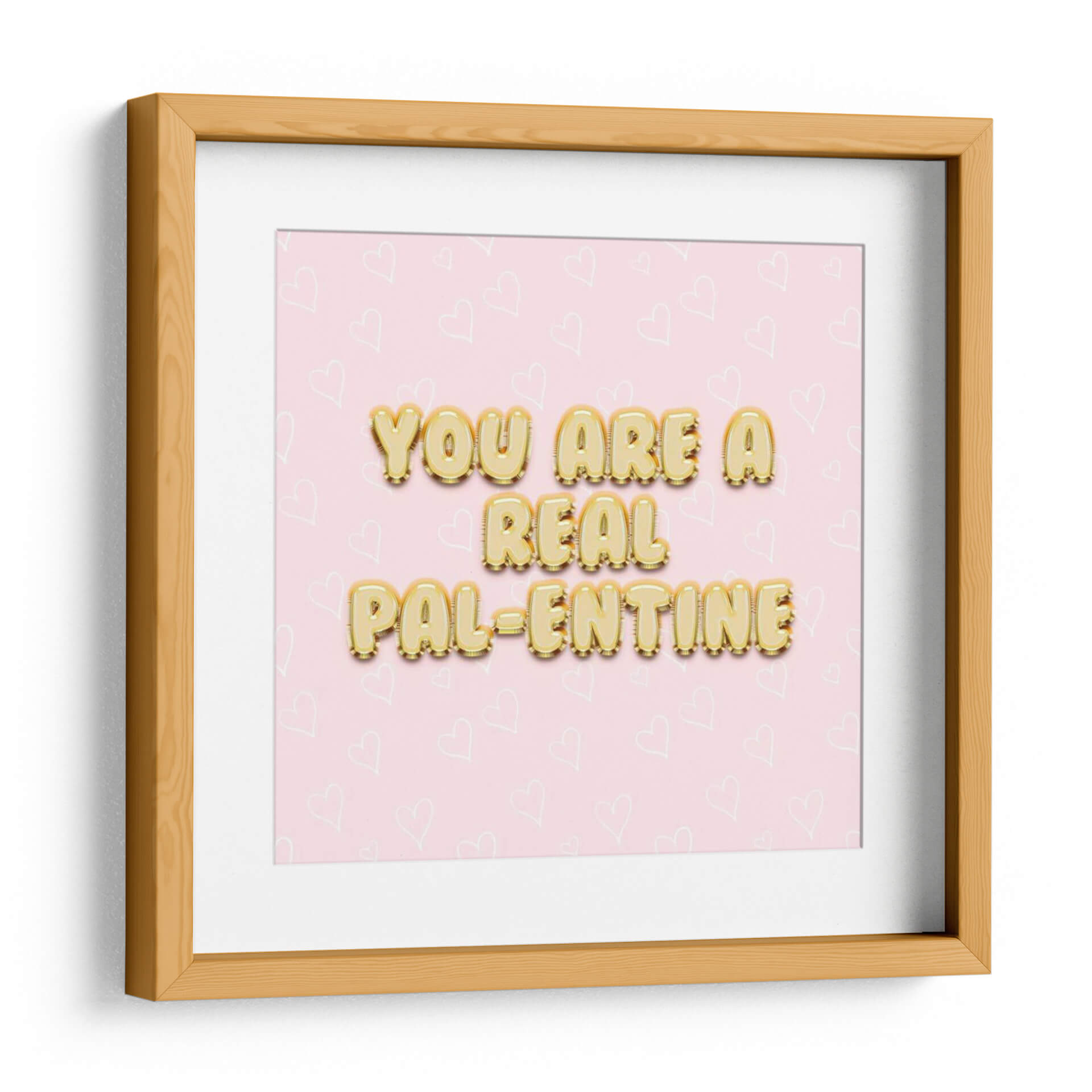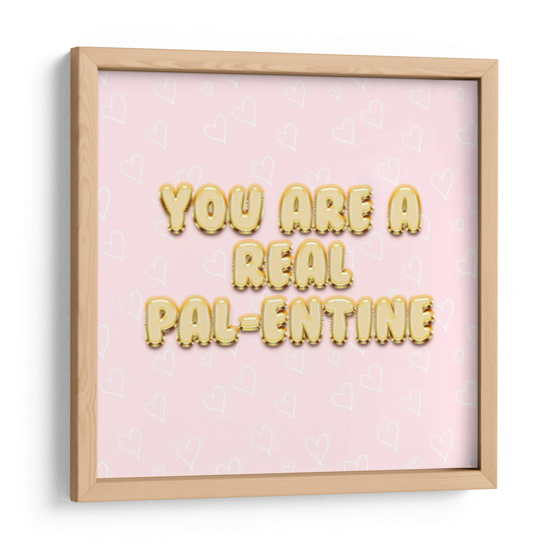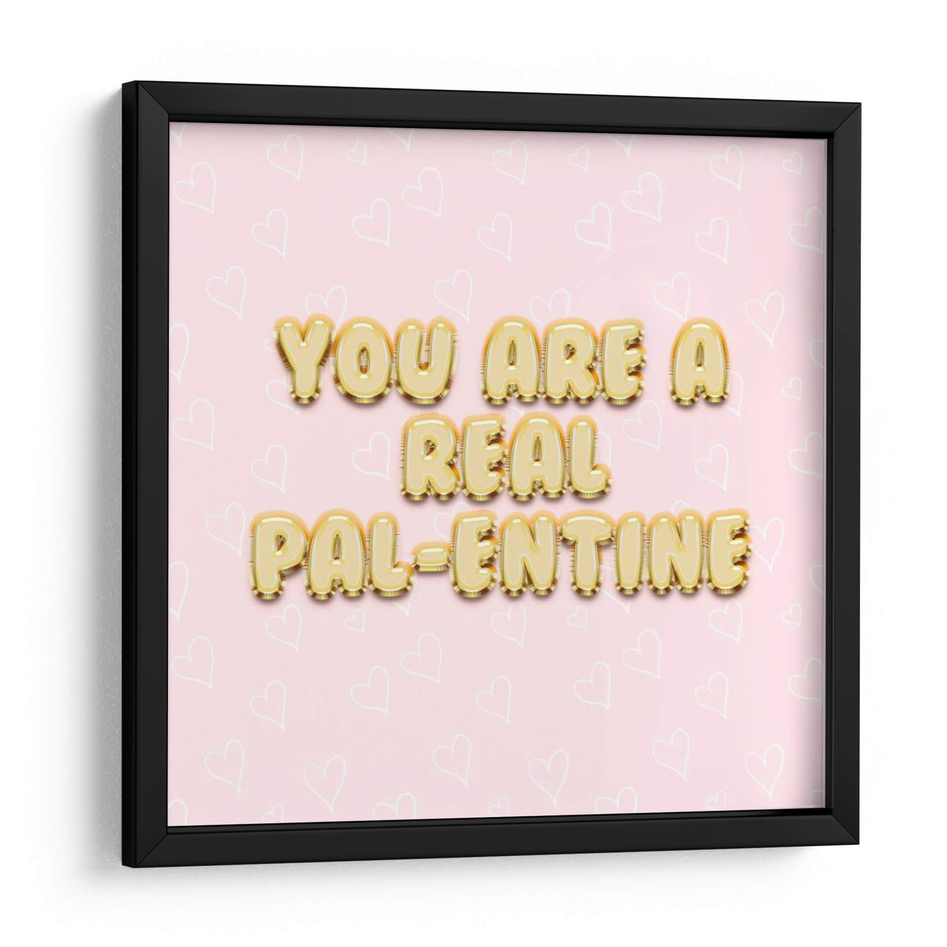 Celebra la amistad con un toque de estilo moderno y juguetón con el cuadro decorativo "Pal-Entine II" de Grace Popp. Esta obra captura la esencia de una amistad valiosa a través de un diseño visualmente atractivo y lleno de significado. La pieza presenta un fondo rosa pálido sutilmente decorado con pequeños corazones blancos, creando una base tierna y dulce. Sobre este lienzo, las palabras "YOU ARE A REAL PAL-ENTINE" se despliegan en llamativas letras doradas, con una textura que imita globos inflados, aportando un toque festivo y contemporáneo. El estilo es decididamente pop y gráfico, con una composición centrada que dirige toda la atención al mensaje. La paleta de colores, dominada por el rosa suave y el dorado brillante, transmite una sensación de alegría, afecto y celebración. Es la pieza perfecta para añadir un acento de color y un mensaje positivo a cualquier espacio, ya sea una sala de estar, una oficina o incluso un dormitorio. "Pal-Entine II" es más que una decoración; es una declaración de aprecio, ideal para regalar o para recordarte la importancia de tus amistades.