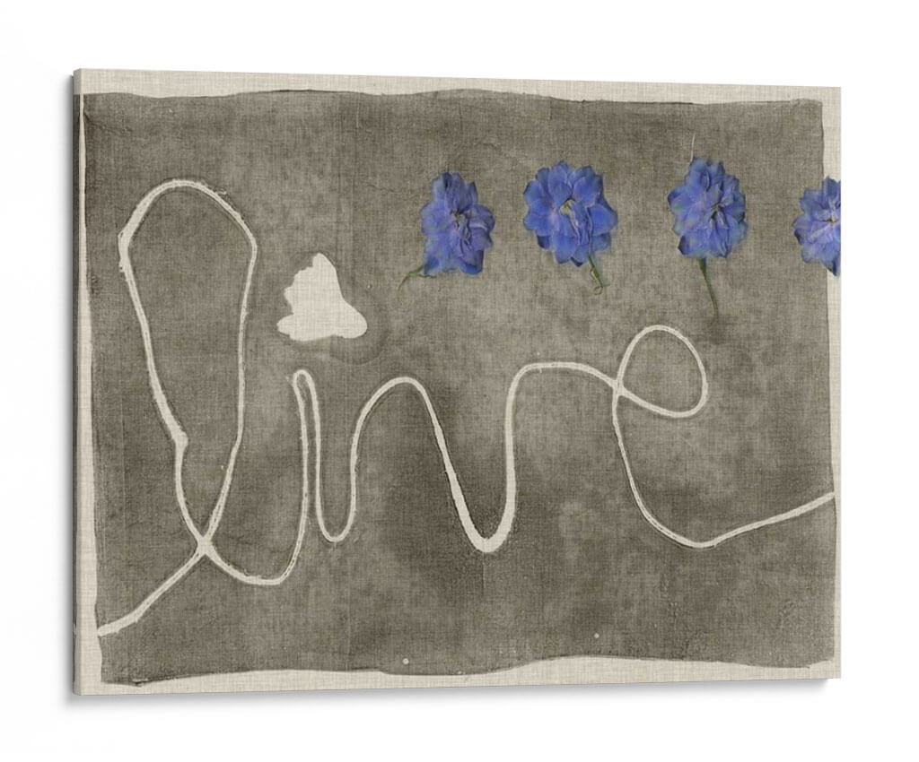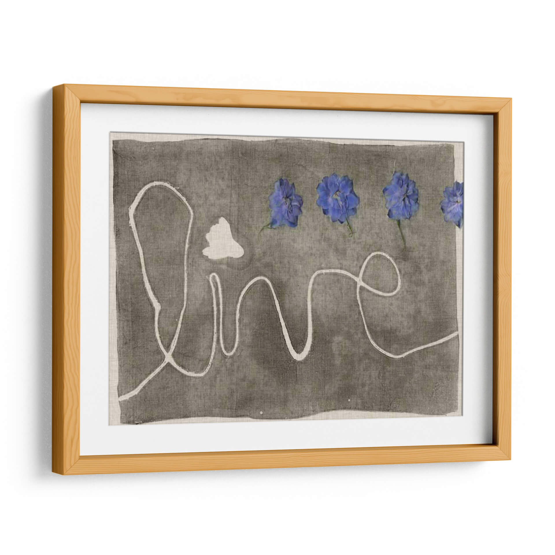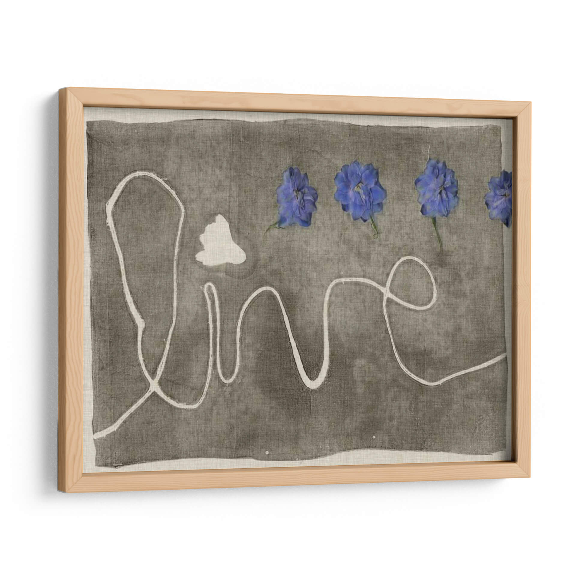 Sumérgete en la delicadeza y el encanto de "Palabras Simples III", una obra de arte contemporáneo que fusiona elementos botánicos con una expresión caligráfica minimalista. Este cuadro decorativo presenta una paleta de colores predominantemente en tonos tierra y grises, creando una atmósfera serena y sofisticada. Cuatro vibrantes flores azules, posiblemente acianos o delfinios, se alinean elegantemente en la parte superior, contrastando con la suavidad del fondo texturizado. Una línea blanca fluida y abstracta, que evoca la caligrafía o una forma orgánica, atraviesa la composición, añadiendo un toque de dinamismo y misterio. El estilo general es evocador y moderno, ideal para aquellos que buscan añadir un acento de color sutil pero impactante a su hogar u oficina. Esta pieza es perfecta para espacios que buscan transmitir calma y elegancia, como un dormitorio, una sala de estar minimalista o un estudio. "Palabras Simples III" no solo decora, sino que también inspira una reflexión sobre la belleza de lo cotidiano y la conexión entre la naturaleza y la expresión artística, convirtiéndose en un punto focal que invita a la contemplación y al aprecio por el arte contemporáneo.
