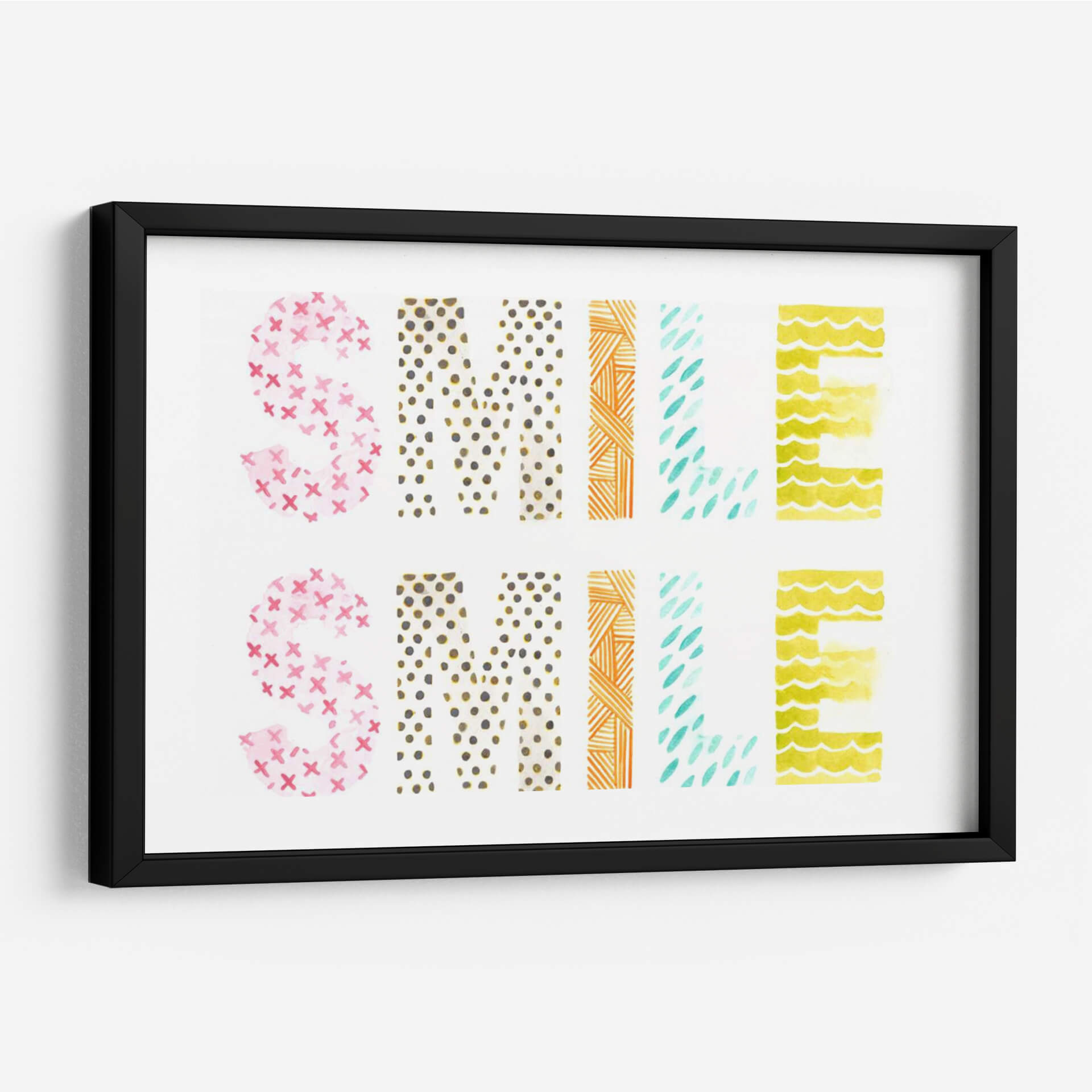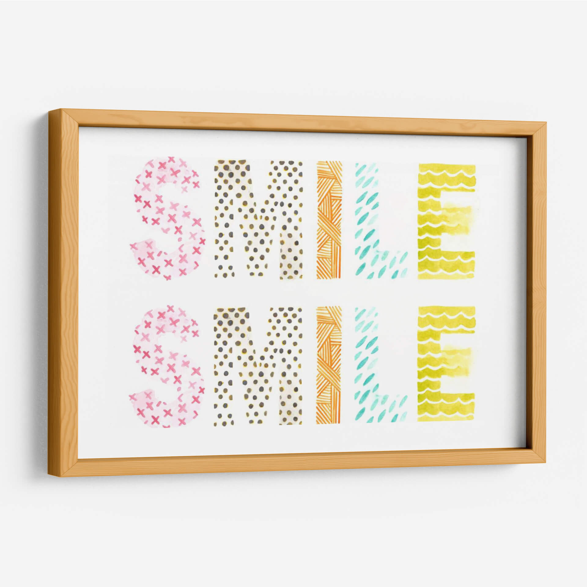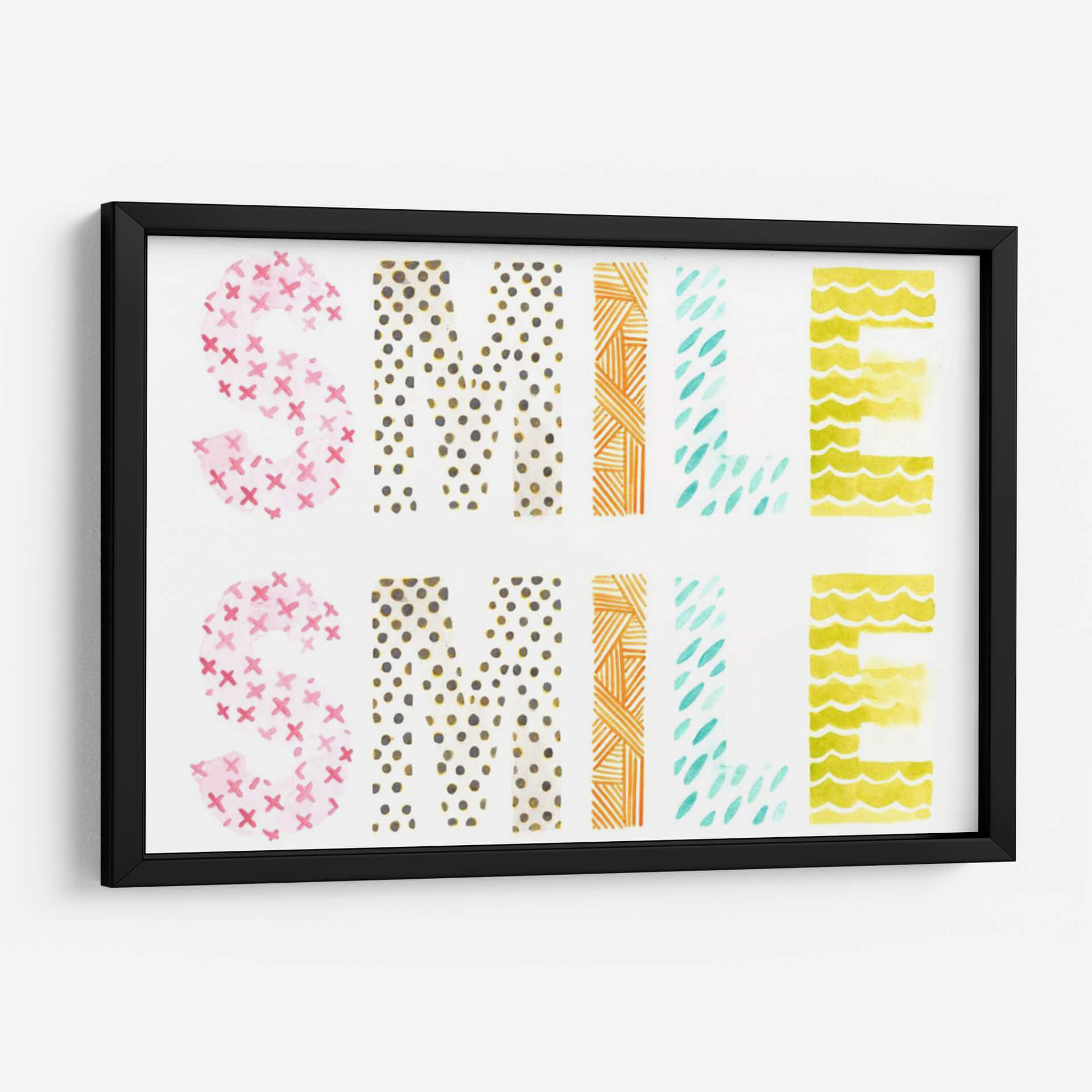 Inyecta una dosis de alegría y positividad en tu espacio con "Patrón Sentimiento III", una obra de arte contemporáneo que celebra la simpleza de una sonrisa. Esta pieza visualmente atractiva presenta la palabra "SMILE" repetida dos veces, cada letra estilizada con patrones y texturas únicas. La primera 'S' y 'M' están adornadas con un delicado patrón de cruces en tonos rosados, evocando una sensación de dulzura y calidez. Las siguientes letras 'I' y 'L' de cada palabra explotan en un vibrante mosaico de puntos dorados y marrones, añadiendo un toque de sofisticación y energía. Las 'E' finales se presentan con un diseño vibrante de líneas naranjas y salpicaduras de acuarela turquesa, culminando en una serie de formas onduladas en amarillo, que recuerdan a la luz del sol o al agua, aportando dinamismo y frescura. La composición dividida en dos filas, cada una formando la palabra "SMILE", crea un ritmo visual cautivador y un mensaje doblemente inspirador. "Patrón Sentimiento III" es perfecto para dar vida a cualquier habitación, desde una sala de estar moderna hasta un despacho o incluso un dormitorio infantil, promoviendo un ambiente de optimismo y buen humor. Este cuadro decorativo es una elección ideal para quienes buscan arte funcional que además de embellecer, transmita un mensaje positivo y estimulante.