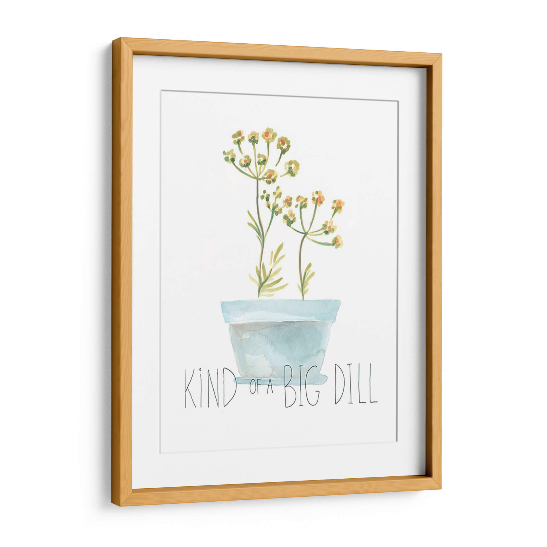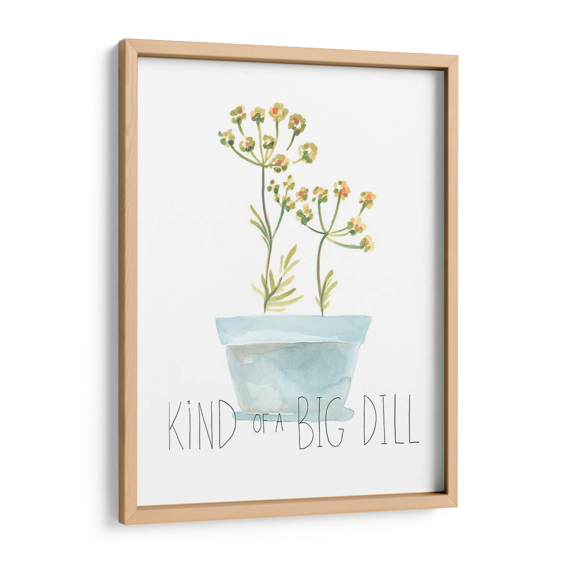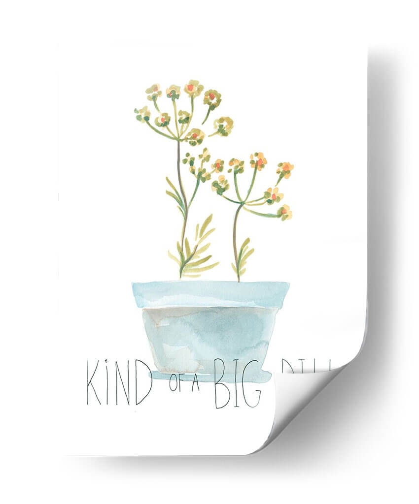 Embellece tu espacio con el encantador cuadro "Planta Punna Iii", una obra de arte original de June Erica Vess que irradia serenidad y un toque de humor. Esta pieza, que presenta delicadas flores en tonos amarillos y anaranjados emergiendo de una maceta azul pastel, captura la esencia de la botánica con un estilo acuarela suave y etéreo. El diseño minimalista, con un fondo blanco limpio, permite que los sutiles colores de las flores y la simpática inscripción "Kind Of A Big Dill" sean los protagonistas, aportando una atmósfera de calma y ligereza. Ideal para quienes buscan añadir un toque de naturaleza y personalidad a su hogar u oficina, este cuadro decorativo es perfecto para salas de estar modernas, dormitorios acogedores o estudios creativos. Su composición sencilla pero efectiva lo convierte en un punto focal sutil que invita a la reflexión y al disfrute de la belleza cotidiana. Añade un toque de frescura y originalidad a tu decoración con esta pieza única que combina arte botánico y un mensaje juguetón.