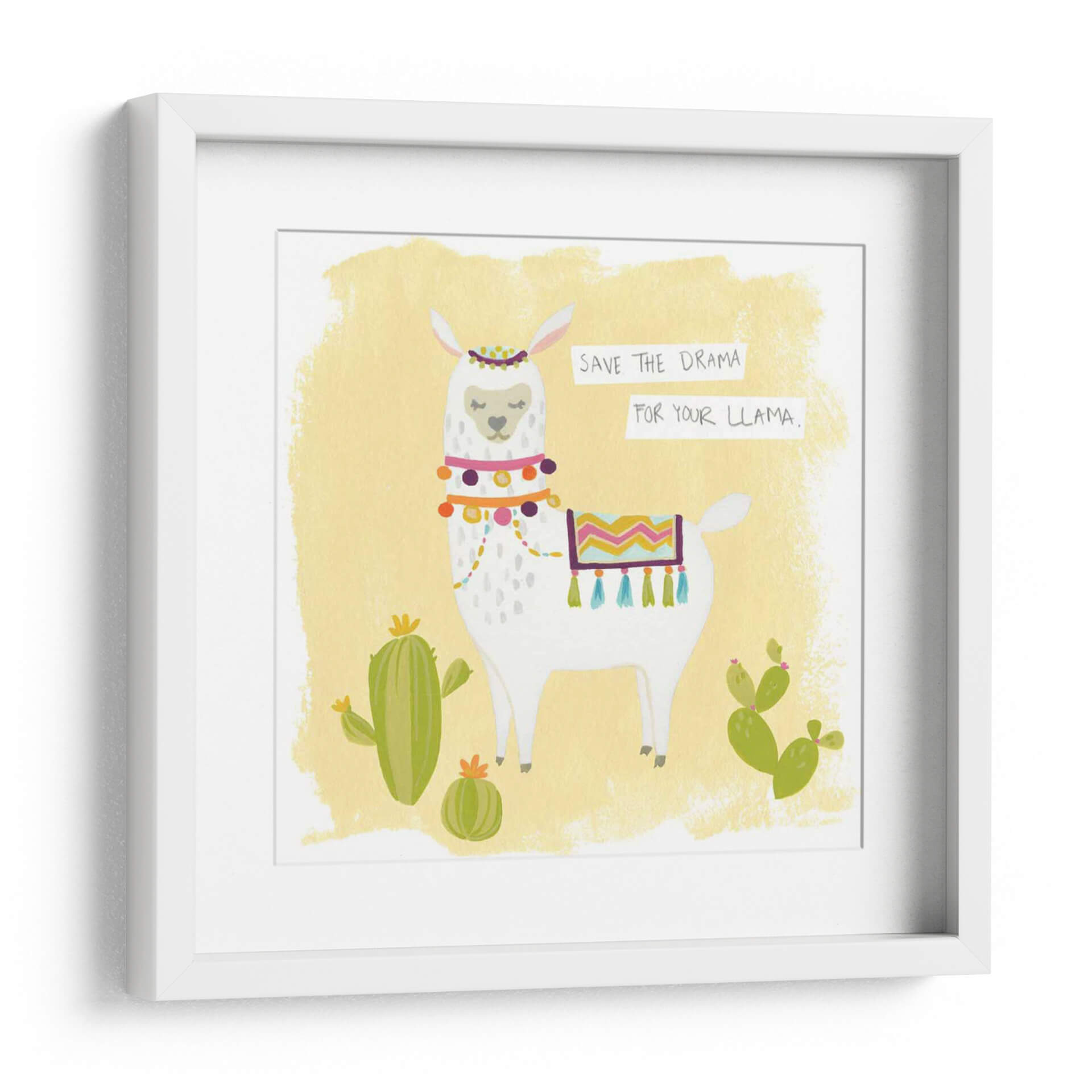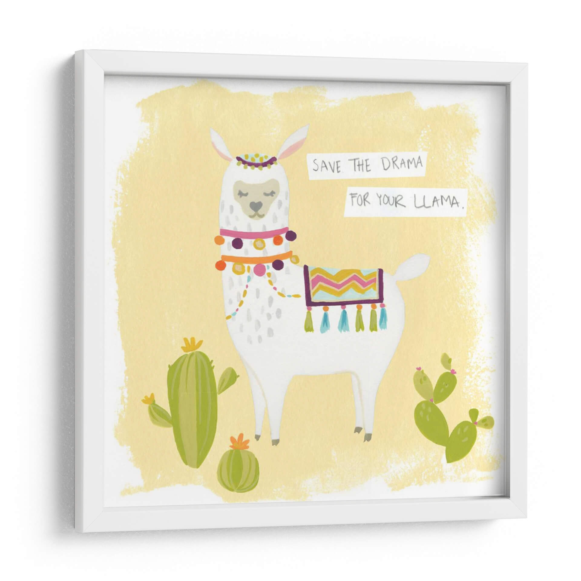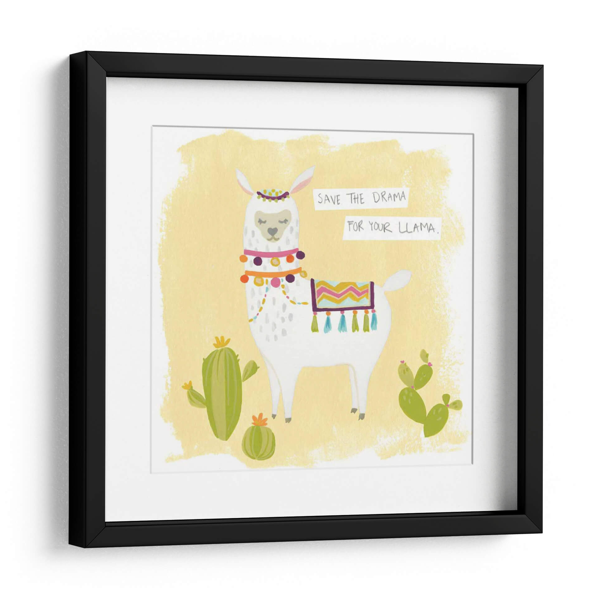 Este encantador cuadro decorativo 'Pom Pom Llama Rama I' de June Erica Vess captura la esencia juguetona y serena del mundo andino con un toque moderno. La obra presenta una llama blanca con detalles vibrantes, adornada con pompones coloridos y una manta zigzag que evoca la artesanía tradicional. Rodeada de cactus verdes en diferentes tamaños, la pieza transmite una sensación de alegría y tranquilidad, invitando a la calma. La paleta de colores, dominada por un suave fondo amarillo pastel y los vivos verdes de los cactus, crea un ambiente cálido y acogedor. Ideal para espacios que buscan un punto focal divertido y lleno de personalidad, como habitaciones infantiles, salas de estar o estudios, este cuadro es una invitación a 'guardar el drama para tu llama', fomentando un ambiente relajado y optimista. La simplicidad estilizada y el uso de trazos suaves aportan una cualidad artesanal y contemporánea, perfecta para quienes buscan arte que hable de estilo de vida y buen humor. Añade un toque de encanto y color a tu hogar con esta pieza única que celebra la naturaleza y la diversión.