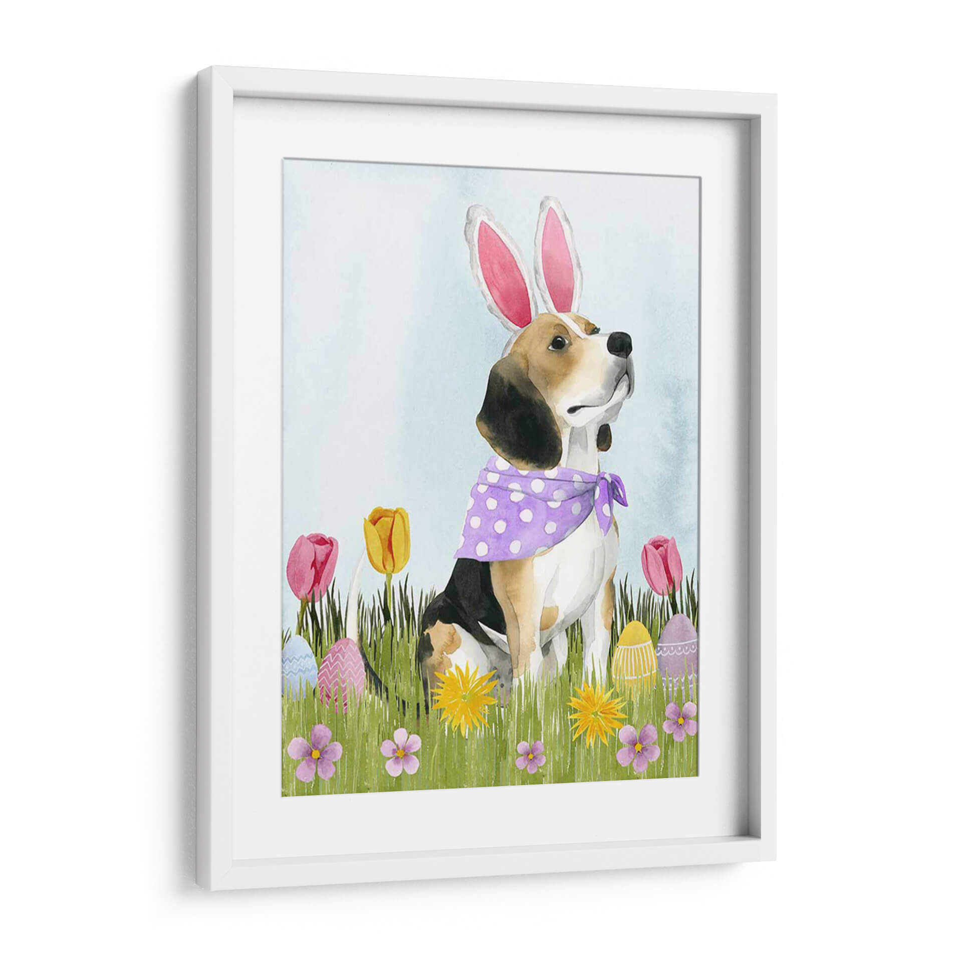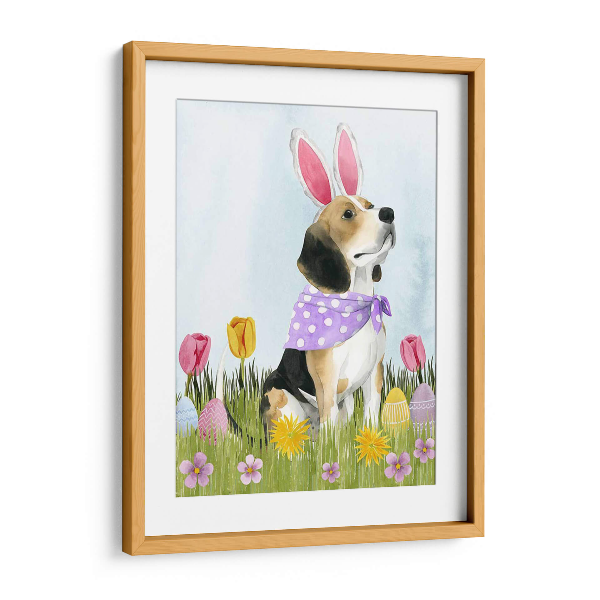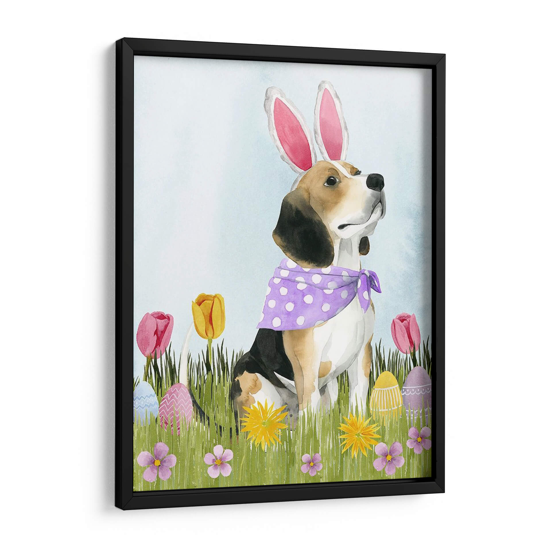 Captura la alegría y el encanto de la primavera con este adorable cuadro decorativo, "Puppy Pascua II" de Grace Popp. Esta obra de arte, realizada en acuarela, presenta a un juguetón cachorro de beagle con orejas de conejo, adornado con un pañuelo de lunares morados. Sentado entre vibrantes tulipanes, flores silvestres y decorativos huevos de Pascua, el cuadro evoca una atmósfera de festividad y ternura. La suave paleta de colores pastel, con predominio de azules celestes, verdes frescos y toques de rosa, amarillo y morado, aporta una sensación de calma y optimismo a cualquier espacio. El estilo de Grace Popp, con sus trazos delicados y su atención al detalle, da vida a esta escena encantadora, haciéndola perfecta para añadir un toque de dulzura y color a una habitación infantil, una cocina acogedora o como pieza central para celebrar la temporada de Pascua. Este cuadro decorativo es ideal para quienes buscan infundir calidez y personalidad en su hogar u oficina, creando un ambiente acogedor y lleno de vida. Su diseño temático lo convierte en una opción fantástica para la decoración de Pascua o para los amantes de los perros y la estética primaveral.