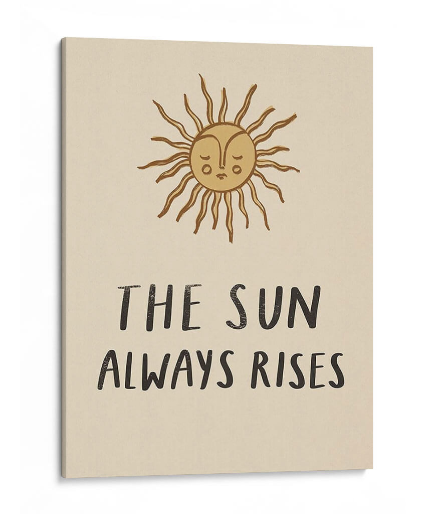 Inyecta optimismo y estilo a tu hogar con "Recógame II" de Susan Savory, una obra de arte inspiradora que celebra la resiliencia y la esperanza. Este cautivador cuadro decorativo presenta un sol estilizado, dibujado con trazos orgánicos y una expresión melancólica pero determinada, sobre un fondo de tono neutro que evoca serenidad y calidez. El mensaje "The Sun Always Rises" refuerza la idea de que, incluso en los momentos difíciles, siempre hay un nuevo comienzo. La paleta de colores, dominada por tonos tierra y ocres, aporta una sensación de calma y conexión con la naturaleza, ideal para cualquier estancia que busque un toque de positividad y arte contemporáneo. Su estilo minimalista y la composición centrada la convierten en una pieza versátil, perfecta para salones modernos, dormitorios acogedores u oficinas que necesiten un recordatorio visual de la perseverancia. Añade esta pieza única a tu colección y deja que su mensaje de esperanza ilumine tu día a día, creando un ambiente de paz y motivación.