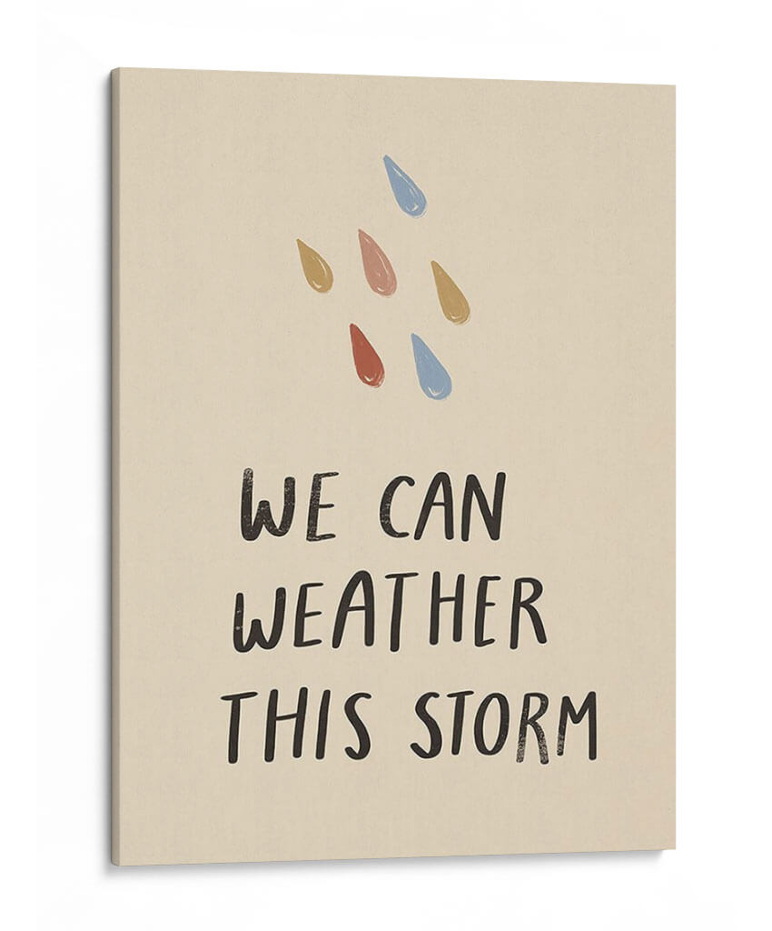 Este cuadro decorativo, titulado "Recogerme Iv" de Susan Savory, es una pieza de arte contemporáneo que transmite un mensaje de resiliencia y esperanza. La obra presenta una paleta de colores suaves y terrosos, con gotas estilizadas en tonos pastel de azul, rosa y ocre que caen sobre un fondo crema. El texto central, "WE CAN WEATHER THIS STORM", escrito en una tipografía manuscrita y audaz, refuerza el espíritu de superación y unidad. Su diseño minimalista y su emotivo mensaje lo convierten en una adición inspiradora para cualquier espacio. Ideal para quienes buscan un recordatorio visual de fortaleza en momentos difíciles, este cuadro decorativo es perfecto para salas de estar, oficinas o dormitorios. Aporta un toque de optimismo y calidez, creando un ambiente de apoyo y perseverancia. Es una pieza que invita a la reflexión y alienta la confianza en uno mismo, perfecta para quienes aprecian el arte con significado y una estética cuidada. Una obra que habla directamente al corazón, recordándonos nuestra capacidad para afrontar cualquier adversidad juntos. Su simplicidad visual combinada con su profundo mensaje lo hacen destacar, convirtiéndose en un punto de conversación y una fuente de motivación diaria. Añade este lienzo inspirador a tu colección y transforma tu hogar en un santuario de fuerza y esperanza.