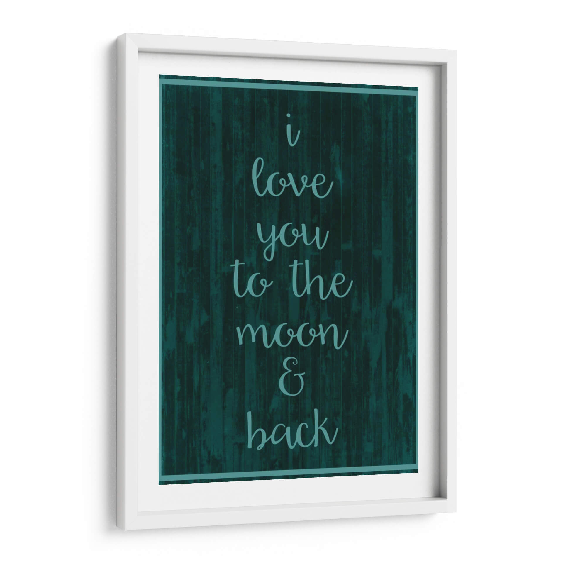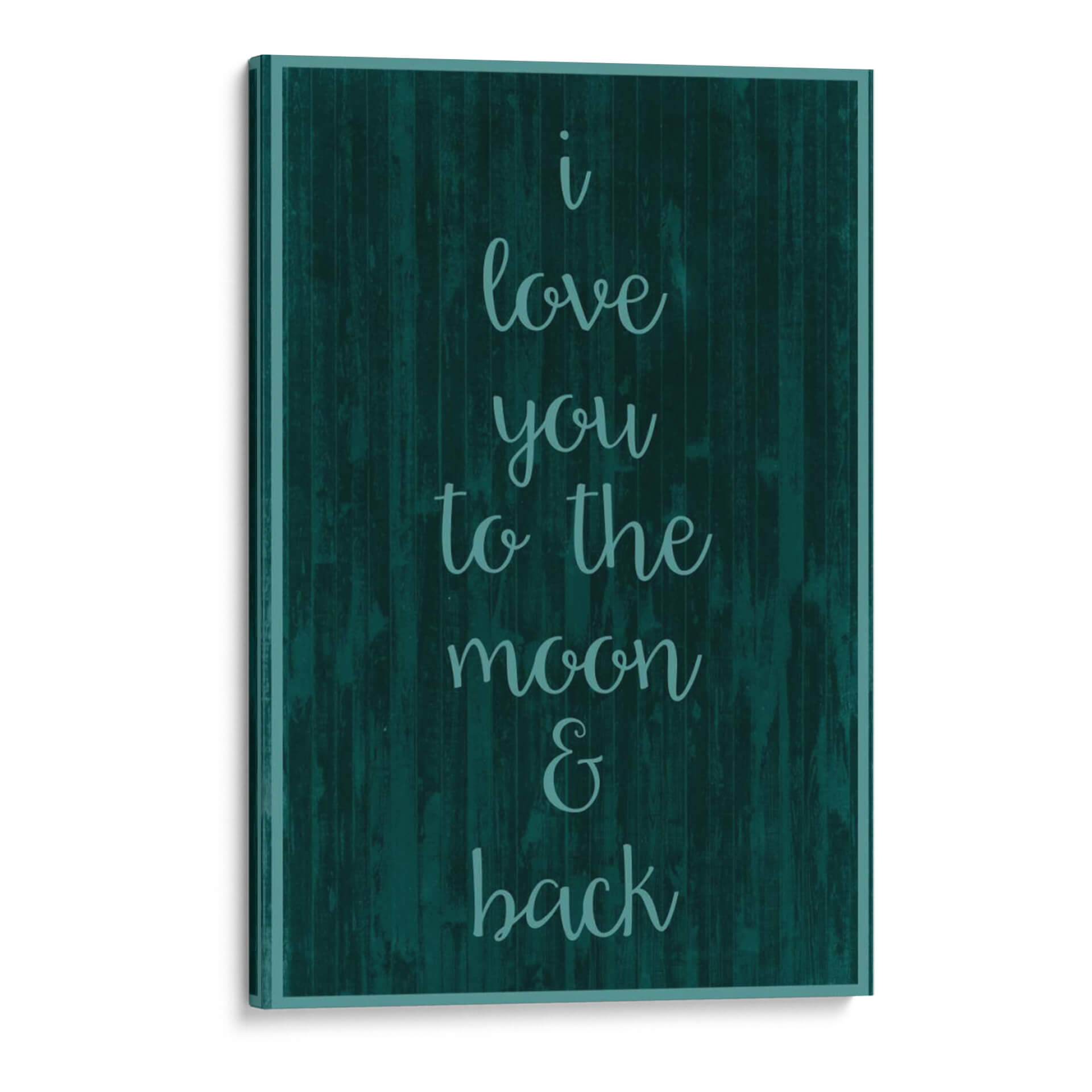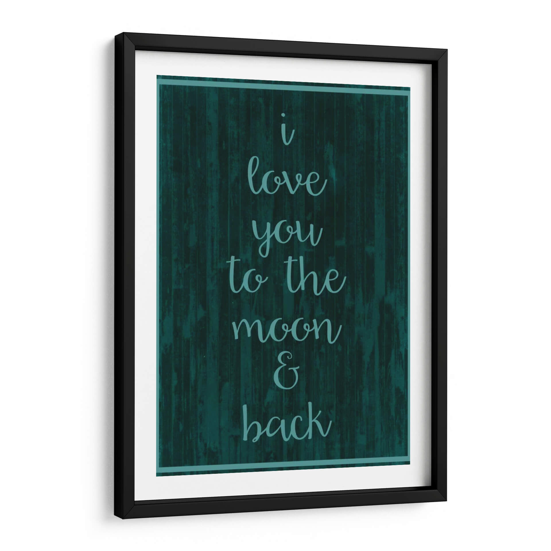 Este cautivador cuadro decorativo, titulado 'Reglas De La Familia De Especias Iv' por Grace Popp, ofrece un mensaje tierno y universal de amor en un diseño moderno y estilizado. La obra presenta la icónica frase "I love you to the moon & back" (Te quiero hasta la luna y de vuelta) escrita con una caligrafía suave y fluida en un tono blanco o azul claro contrastante sobre un fondo de tablones verticales de un profundo color verde azulado, que evoca la serenidad del océano o un bosque crepuscular. La textura sutil del fondo añade profundidad y carácter, creando una atmósfera acogedora y reflexiva. El estilo tipográfico es contemporáneo y minimalista, lo que permite que el mensaje sea el protagonista. Este cuadro es ideal para añadir un toque personal y emotivo a cualquier espacio, desde una sala de estar o un dormitorio hasta una guardería o una oficina en casa. Su paleta de colores versátil y su mensaje reconfortante lo convierten en una pieza de arte de pared perfecta para expresar afecto y crear un ambiente cálido y entrañable en el hogar. Un regalo excepcional para ocasiones especiales o simplemente para recordar a tus seres queridos cuánto significan para ti.