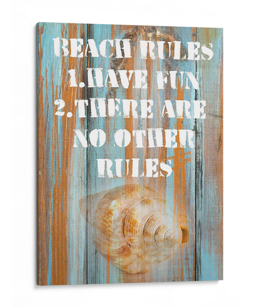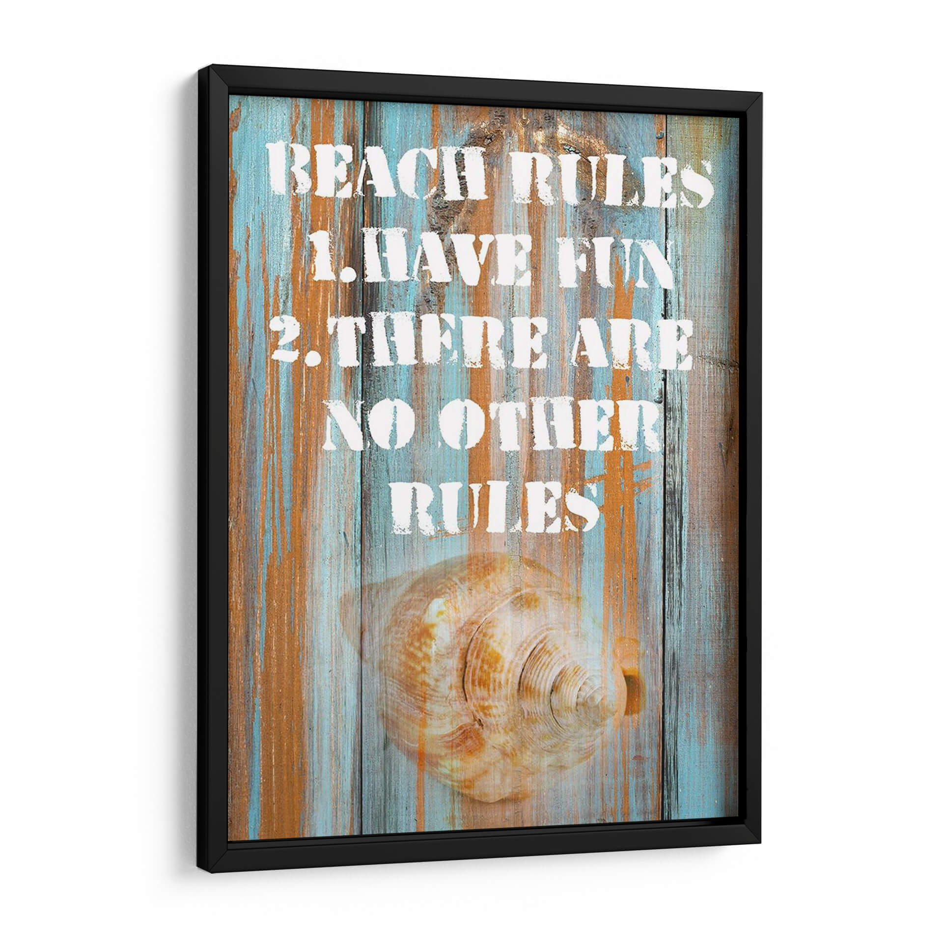Aporta una brisa marina de relajación a tu hogar con este evocador cuadro decorativo 'Reglas de Playa II'. La obra presenta un diseño rústico sobre un fondo de tablones de madera en tonos azules y anaranjados desgastados, evocando la autenticidad de la costa. Sobre este lienzo texturizado, el mensaje 'BEACH RULES 1. HAVE FUN 2. THERE ARE NO OTHER RULES' se despliega en una tipografía blanca y audaz, sencilla pero directa, transmitiendo una filosofía de vida despreocupada y veraniega. En la parte inferior, una detallada concha marina añade un toque de realismo y delicadeza, anclando la pieza a su temática playera. La combinación de colores vibrantes pero envejecidos, junto con el mensaje inspirador, crea una atmósfera de tranquilidad y alegría, perfecta para espacios que buscan un aire de vacaciones y descanso. Ideal para decorar salones, dormitorios, o incluso espacios de ocio, este cuadro decorativo es un recordatorio constante de disfrutar los momentos simples de la vida. Su estilo rústico y playero lo convierte en una adición encantadora para cualquier amante del mar y la serenidad costera, aportando carácter y una dosis de buen humor a la decoración de tu hogar.