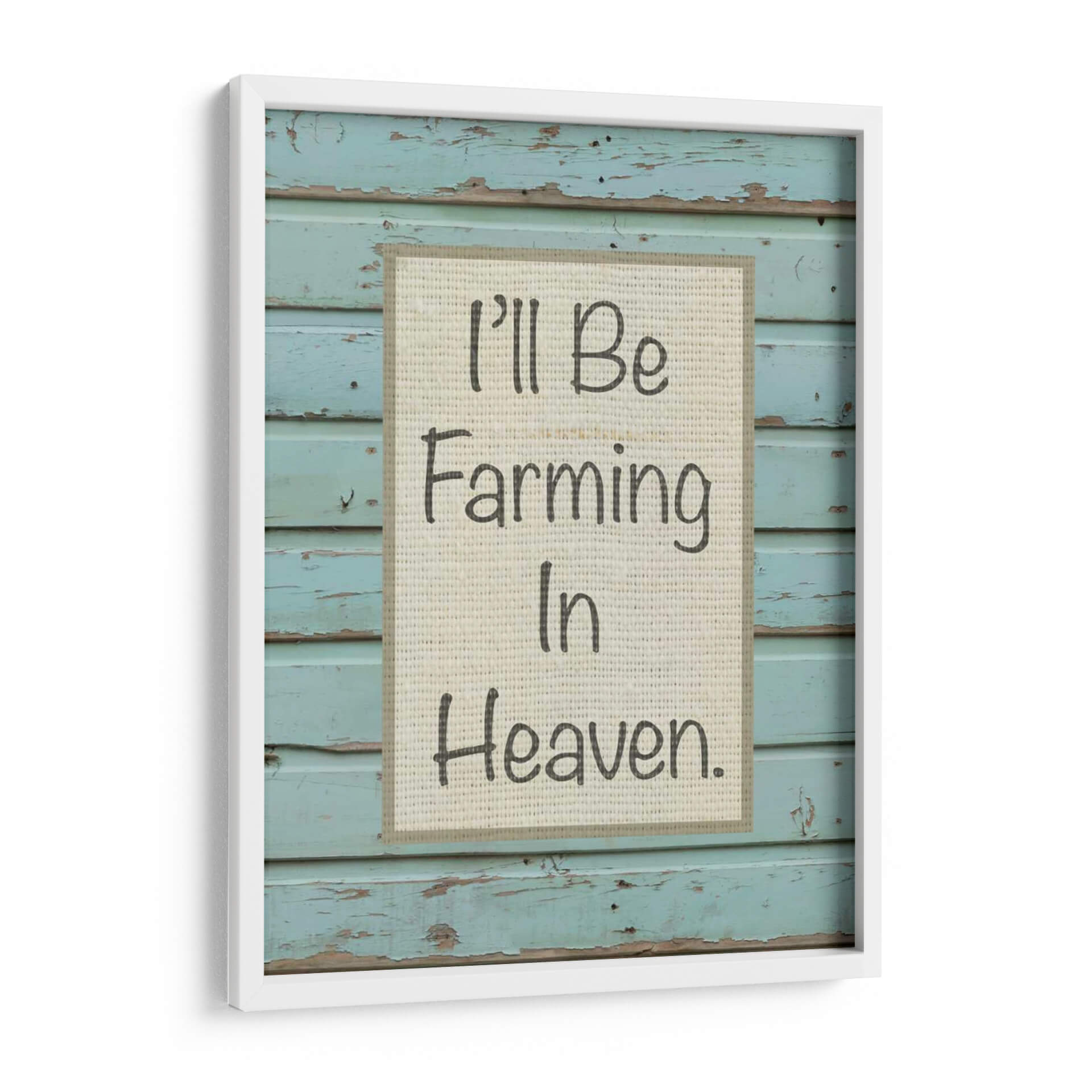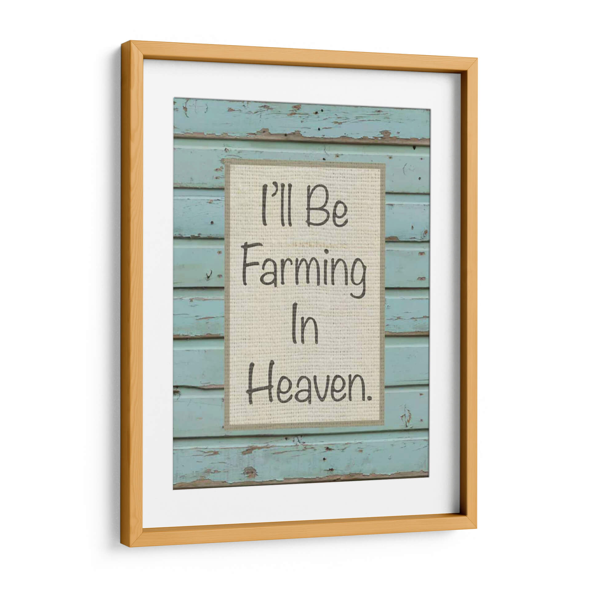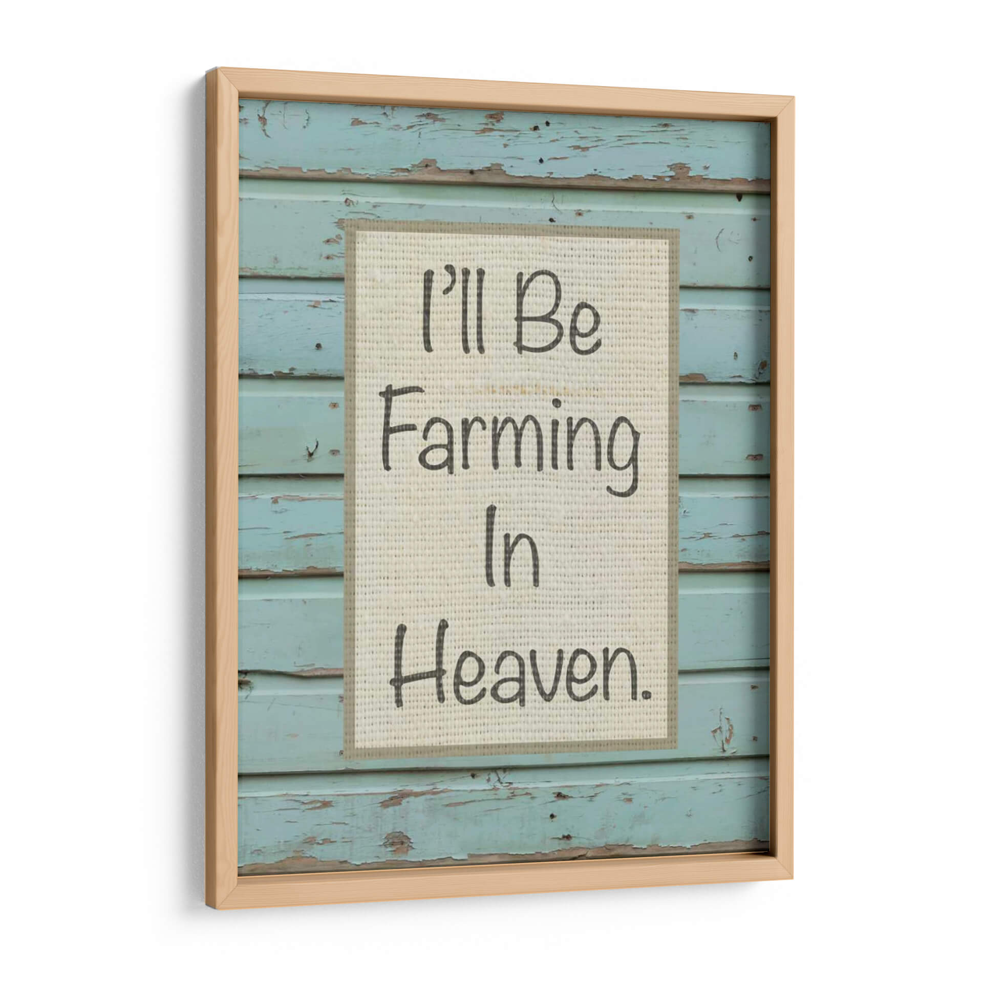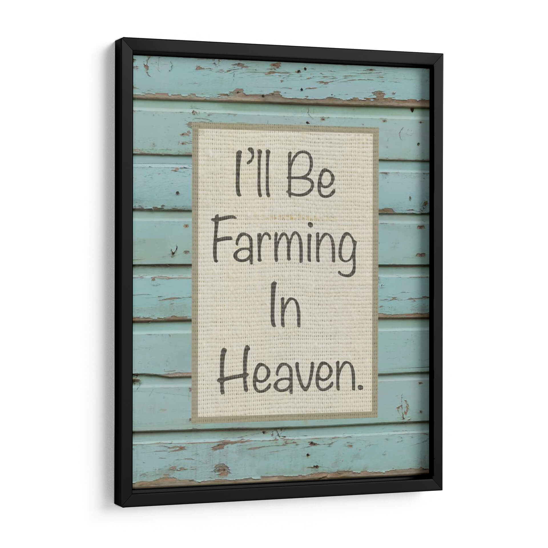 Inyecta un toque de encanto rústico y espiritual a tu hogar con el cuadro decorativo 'Sentimiento De Granja I' de Alonzo Saunders. Esta obra de arte captura la esencia de la vida rural y la esperanza trascendente, presentando un mensaje conmovedor sobre un fondo que evoca la calidez y la autenticidad de una granja. La paleta de colores, dominada por tonos azules deslavados y texturas que recuerdan a la madera rústica, crea una atmósfera serena y acogedora. El diseño central, con una tipografía clara y sencilla sobre un lienzo de aspecto natural, resalta la frase "I'll Be Farming In Heaven", invitando a la reflexión y a un sentimiento de paz interior. Ideal para quienes buscan una pieza de decoración que combine arte contemporáneo con un mensaje inspirador, este cuadro es perfecto para salas de estar, cocinas o cualquier espacio que necesite un acento de carácter y serenidad. Añade profundidad emocional y un estilo campestre chic a tu decoración con esta pieza única, diseñada para resonar con el alma y embellecer tus paredes.