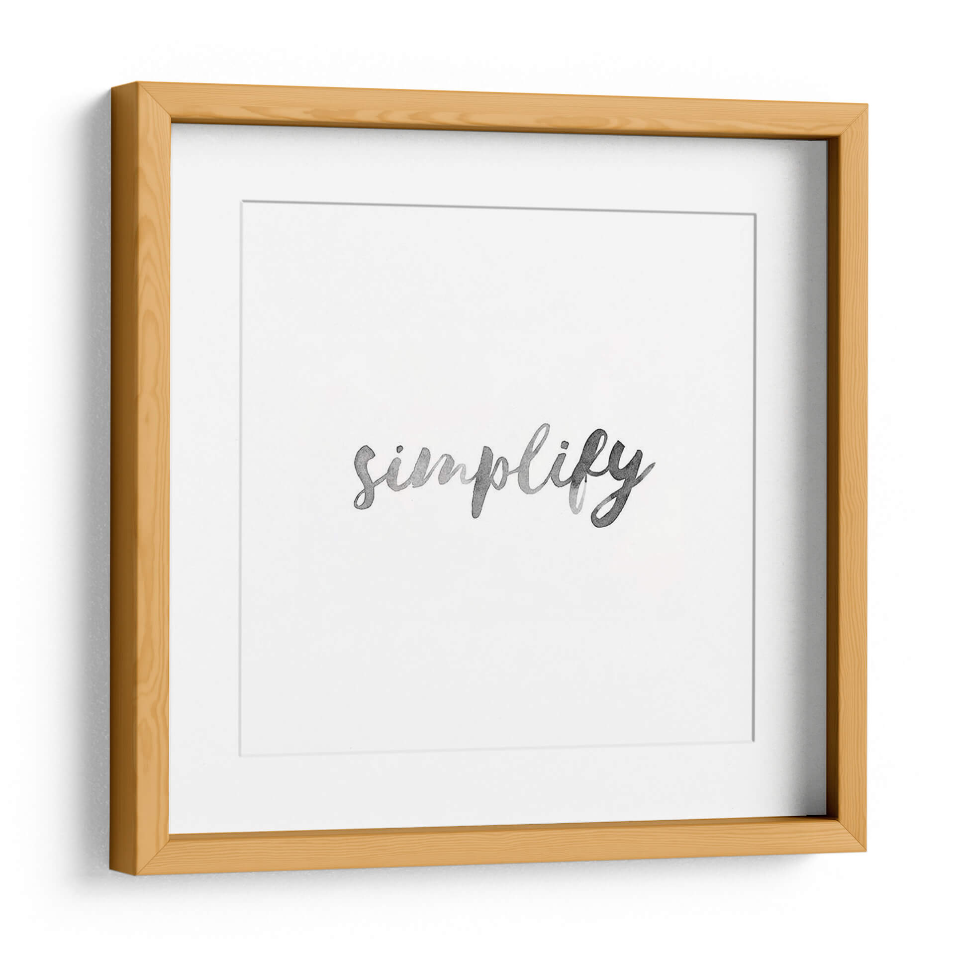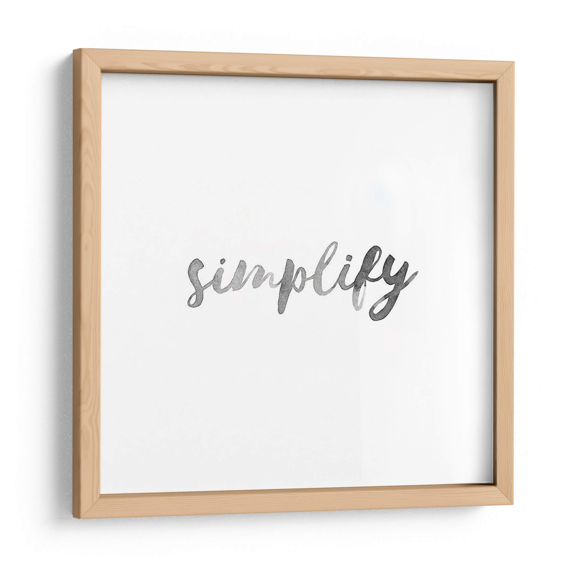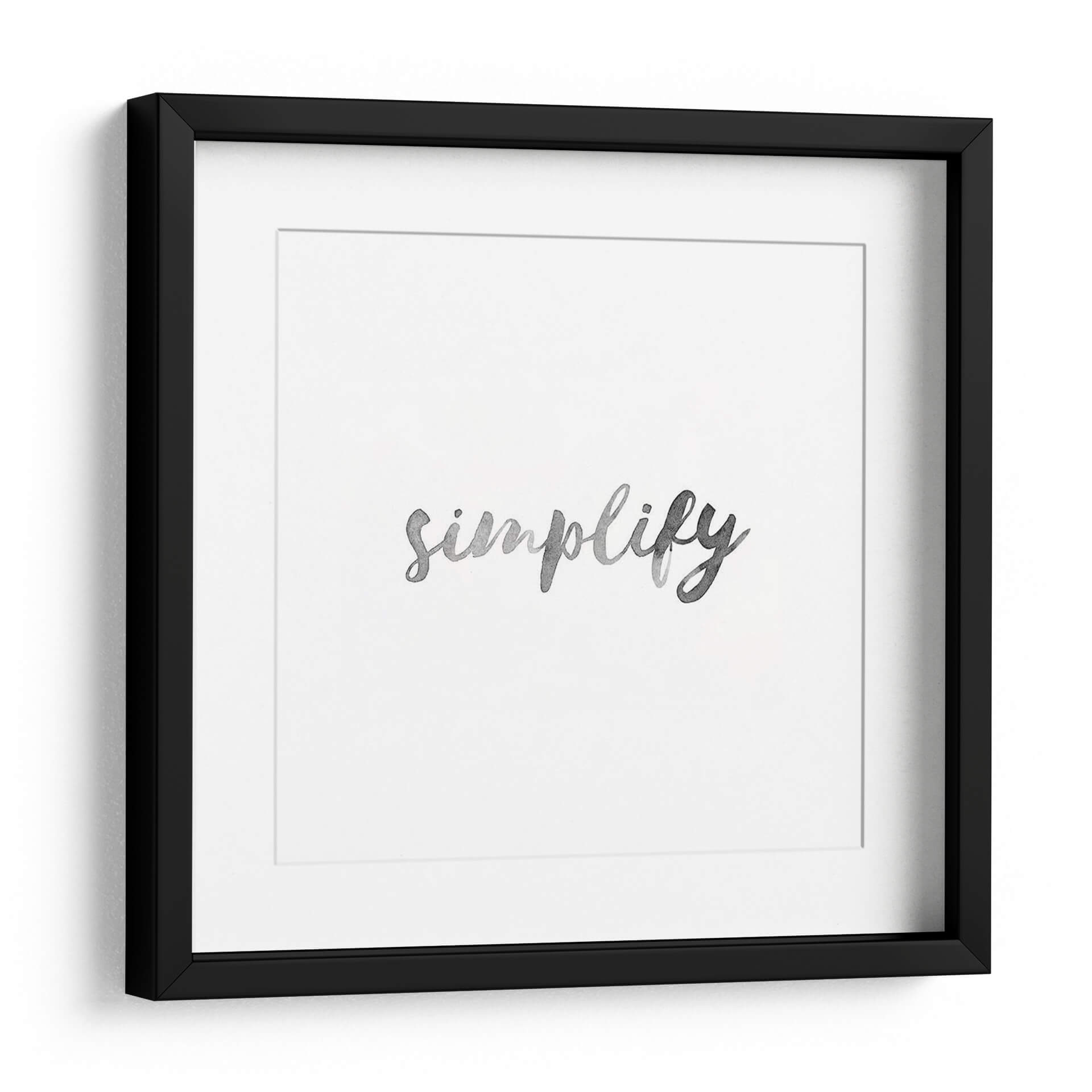 Este evocador cuadro decorativo con la palabra "Simplify" (Simplificar) escrita en una elegante caligrafía de acuarela gris sobre un fondo blanco roto, es una oda a la claridad y la serenidad. La obra de Emma Scarvey captura la esencia del minimalismo moderno, invitando a la reflexión y a la introspección. La delicadeza de las pinceladas de acuarela, con sus sutiles variaciones de tono y textura, aporta una dimensión artística a la simple pero poderosa palabra. Es el recordatorio visual perfecto para cultivar un ambiente de calma y orden en tu hogar u oficina. Ideal para espacios que buscan un toque de sofisticación discreta y un mensaje inspirador, este cuadro decorativo se integra a la perfección en decoraciones contemporáneas, escandinavas o minimalistas. Añade una dosis de paz y enfoque a tu entorno con esta pieza única que promueve un estilo de vida más consciente y tranquilo, haciendo de tu espacio un santuario de simplicidad y buen gusto.