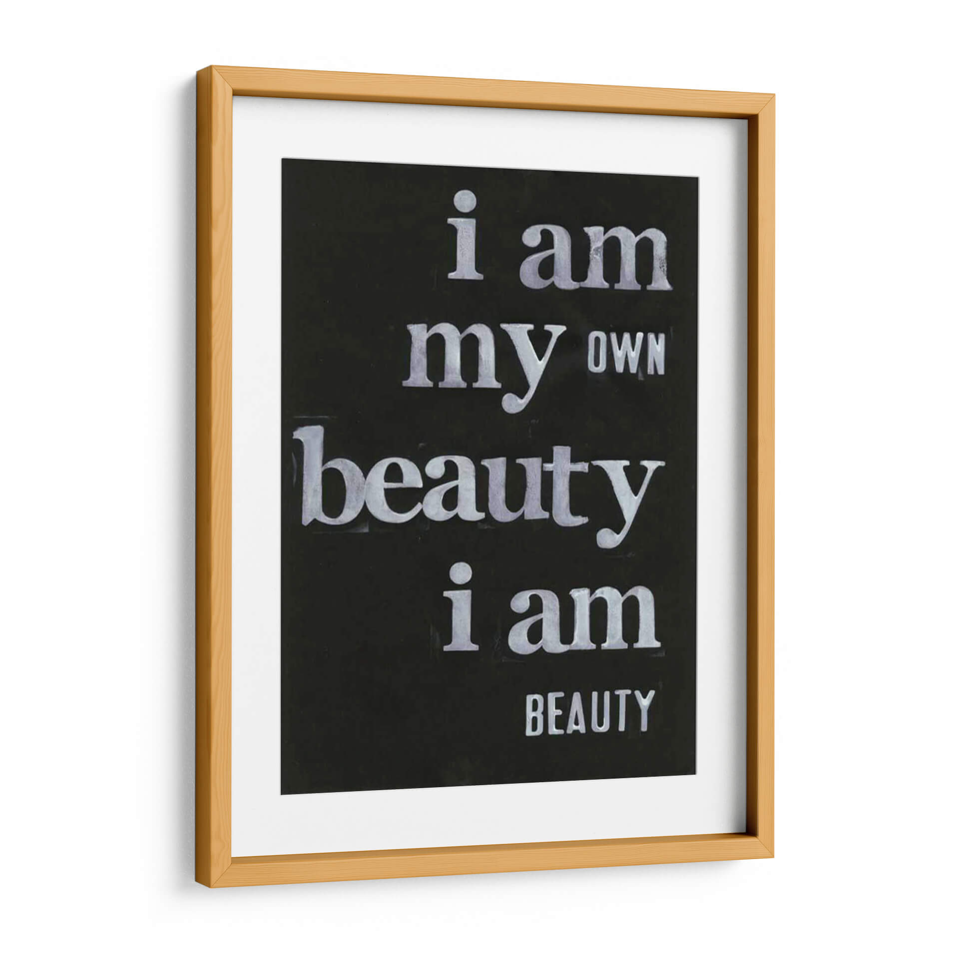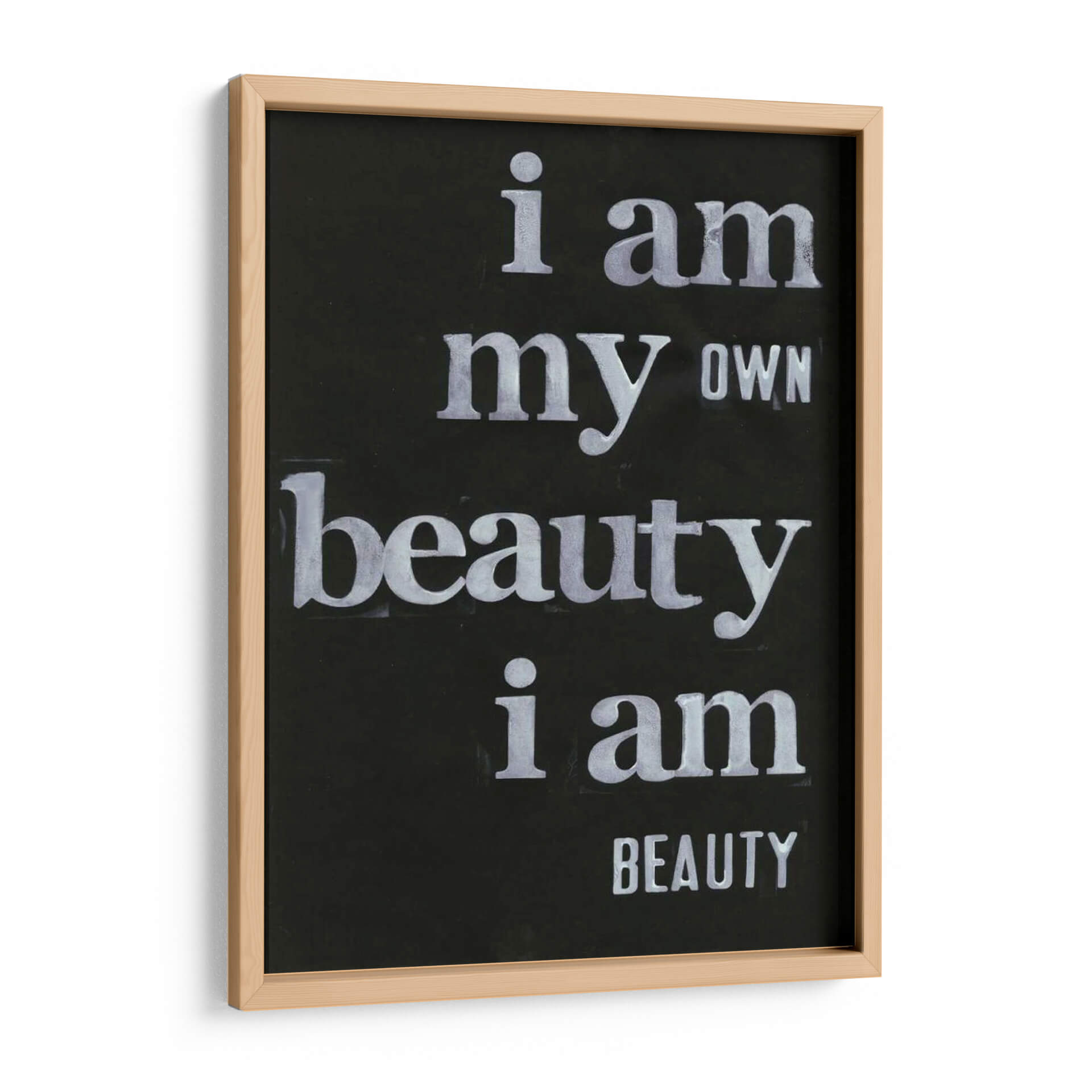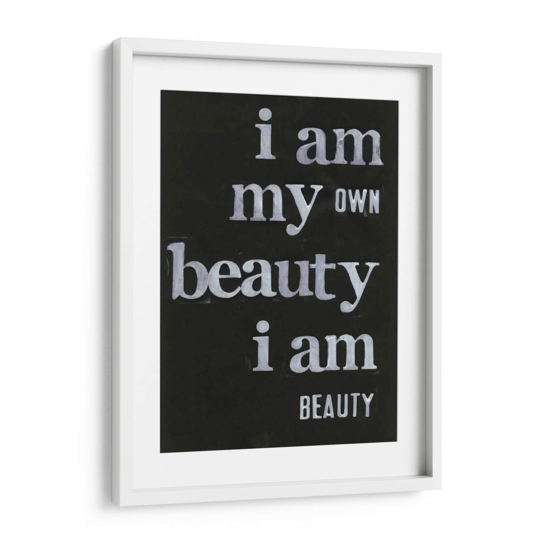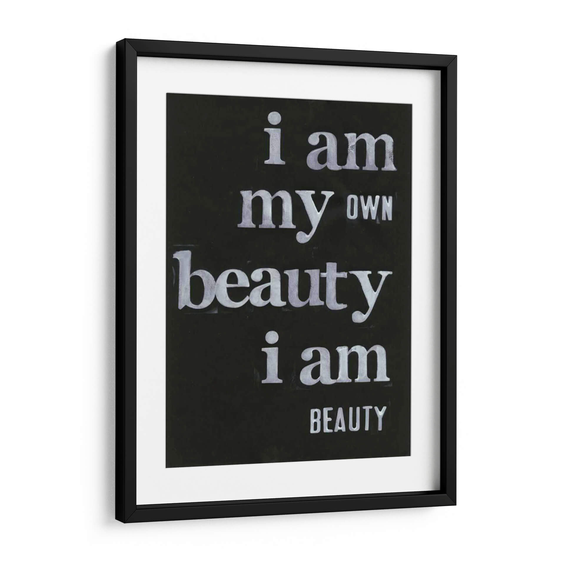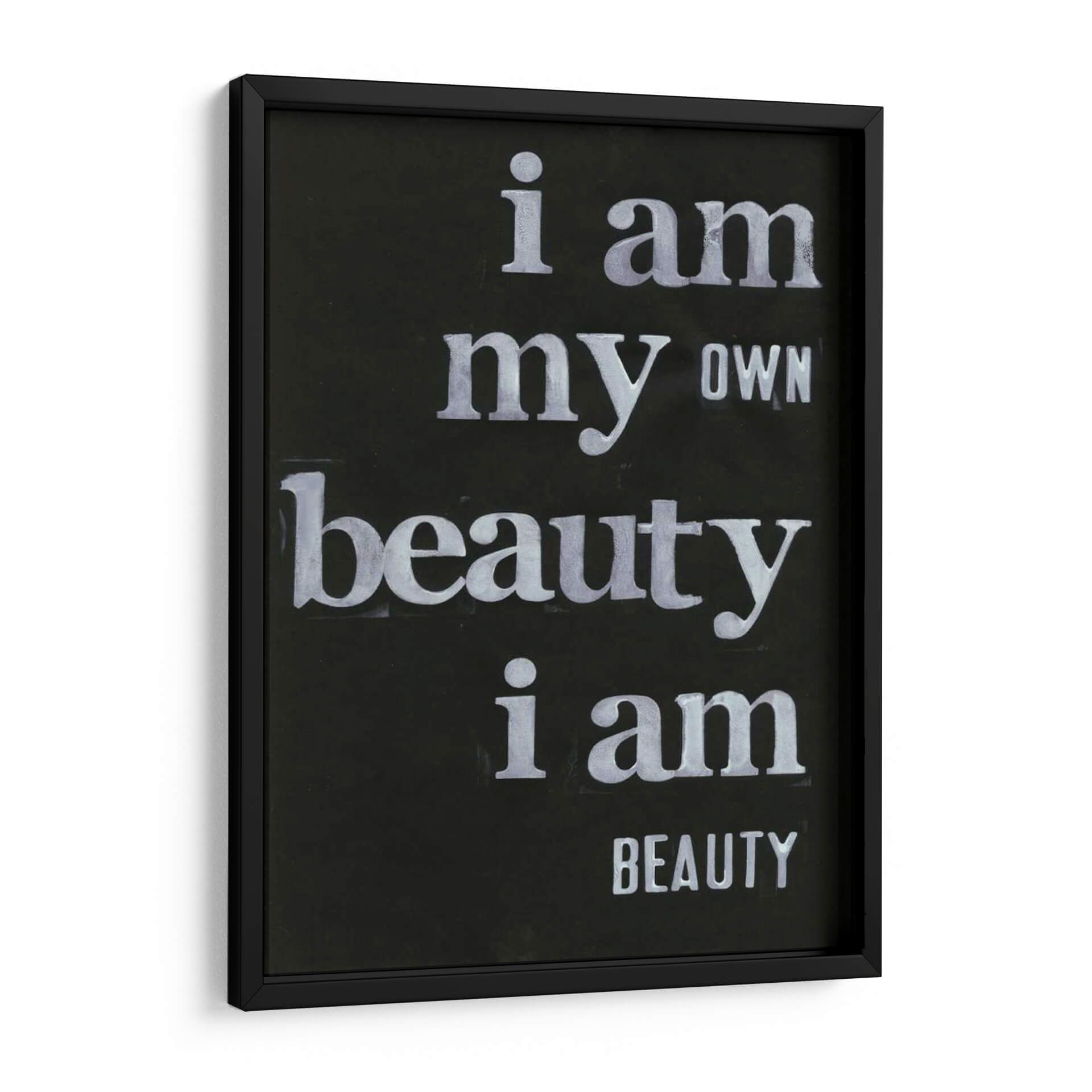 Transforma tu espacio con el inspirador cuadro decorativo "Ser Hermoso Yo" de Deborah Velasquez. Esta cautivadora obra de arte tipográfico, sobre un fondo negro intenso, presenta un poderoso mensaje de autoafirmación y belleza interior, escrito en letras blancas de estilo desgastado que añaden un toque de carácter y profundidad. La composición minimalista y el contraste nítido entre el texto y el fondo hacen que el mensaje sea el protagonista indiscutible. Ideal para quienes buscan infundir sus hogares u oficinas con positividad y un recordatorio diario de su propio valor. Este cuadro decorativo no solo embellece las paredes, sino que también eleva el espíritu, creando un ambiente de confianza y empoderamiento. Su diseño versátil lo convierte en el complemento perfecto para una sala de estar moderna, un estudio inspirador o un dormitorio sereno. Aporta un toque de arte contemporáneo con un significado profundo a tu decoración.
