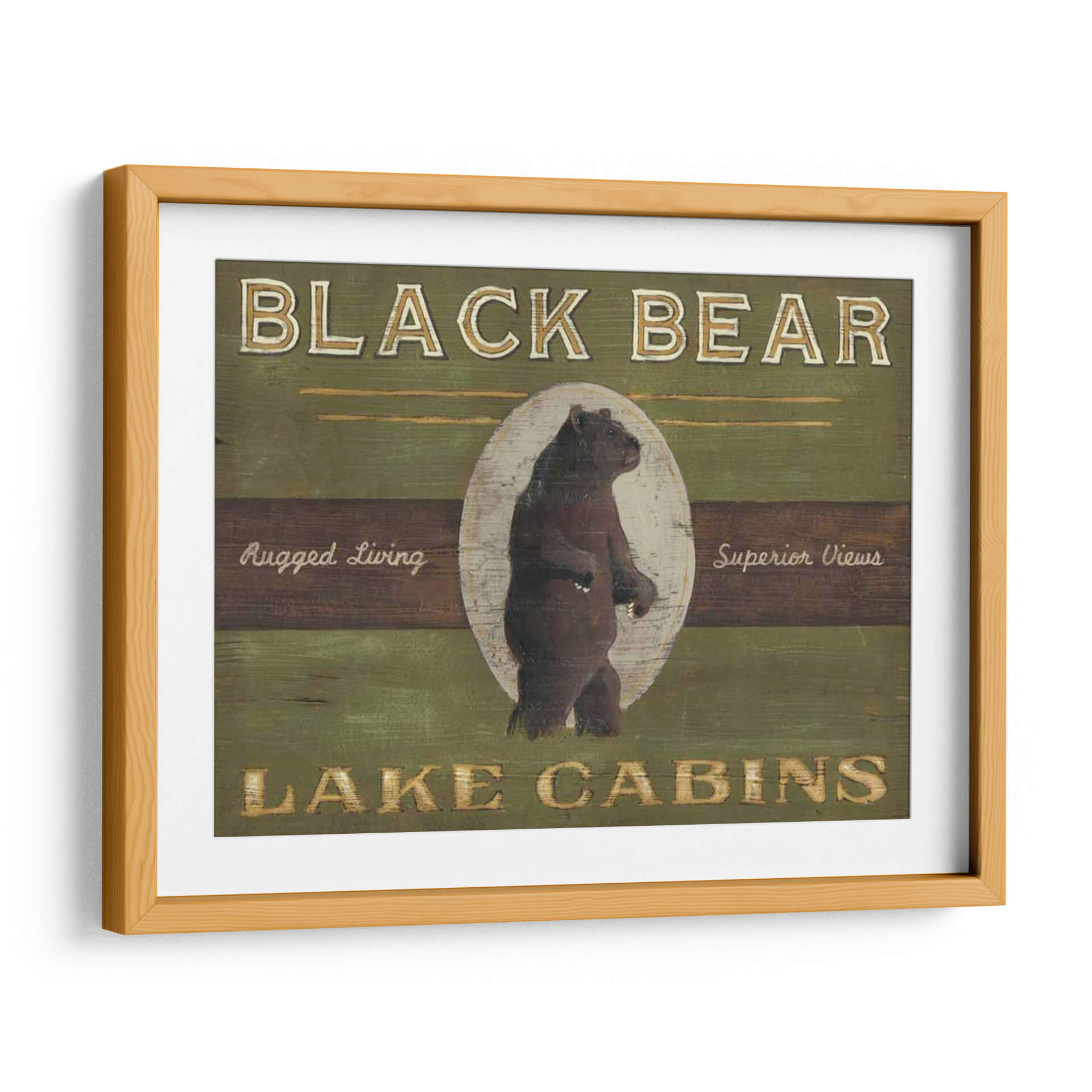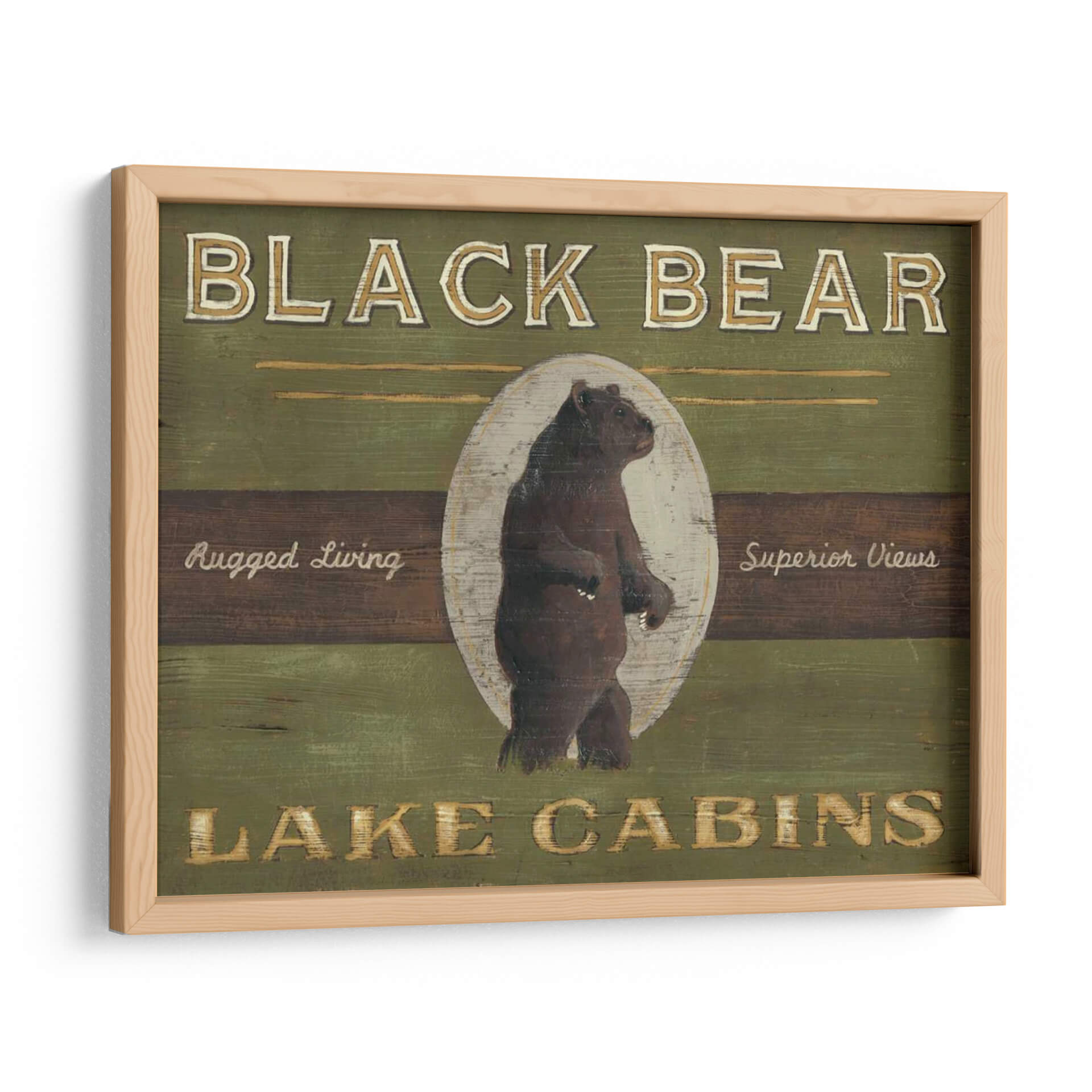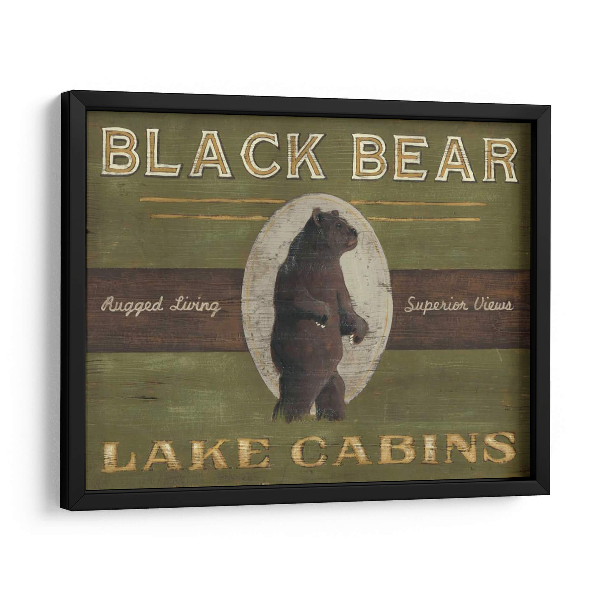 Transforma tu espacio con el cautivador cuadro decorativo "Signo De Lodge V", una obra de arte que evoca la majestuosidad de la naturaleza y el espíritu rústico del lodge. Esta pieza presenta un oso negro imponente, representado en un estilo que recuerda a la señalética clásica de los parques nacionales, pero con un toque artístico contemporáneo. Los colores predominantes, verdes profundos y tonos tierra, crean una atmósfera acogedora y conectada con el entorno natural, mientras que los acentos dorados y blancos aportan un sutil brillo. La composición, centrada en la figura del oso dentro de un óvalo desgastado, transmite fuerza y serenidad. "Signo De Lodge V" es ideal para añadir carácter y un toque de aventura a salas de estar, estudios o cabañas de montaña. Su diseño atemporal y su conexión con la vida salvaje lo convierten en una elección perfecta para quienes buscan una decoración de pared con personalidad y un aire de escapada a la naturaleza, inspirando tranquilidad y admiración por la fauna.