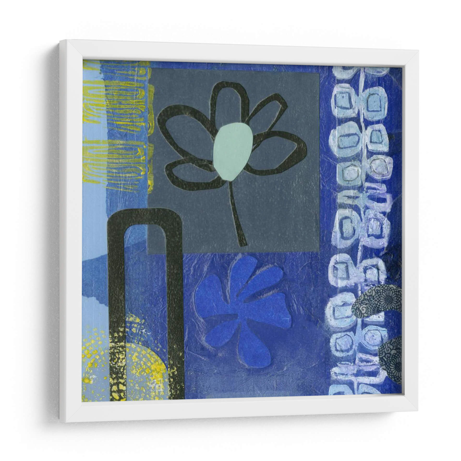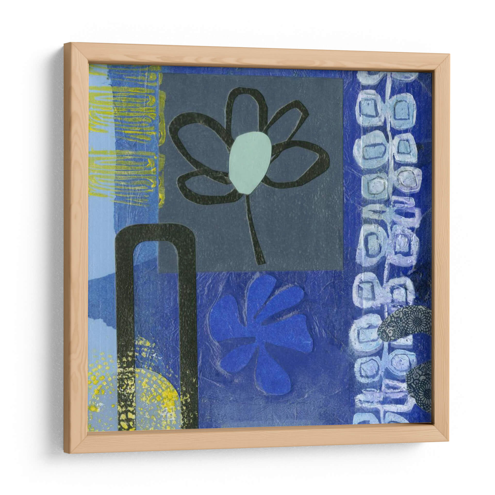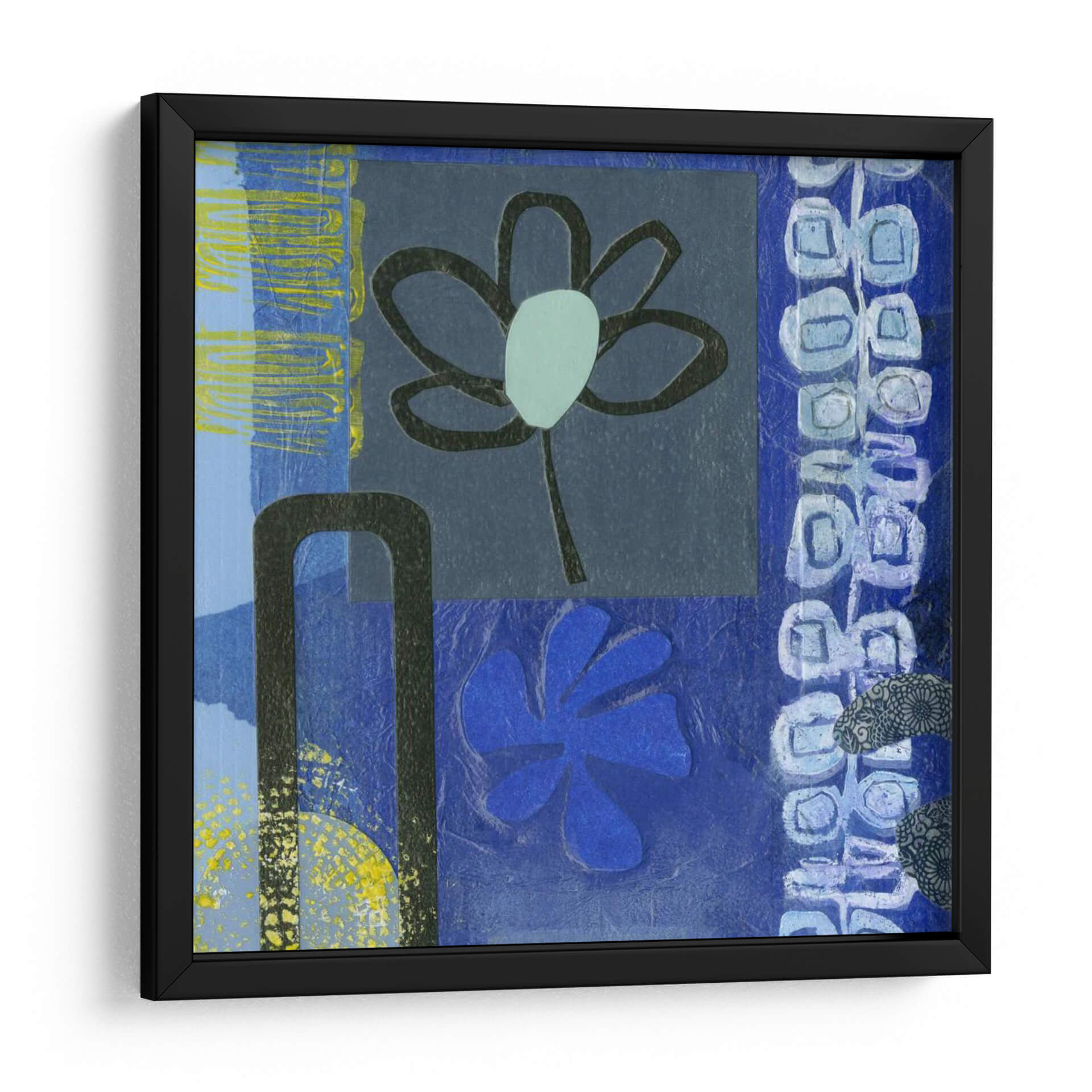 Sumérgete en la vibrante y enigmática obra de arte 'Sonrisa III' de Deborah Velasquez. Este cautivador cuadro decorativo abstracto es una celebración de la forma y el color, dominado por una rica paleta de azules profundos que evocan la serenidad del océano y la profundidad de la noche. La composición audaz presenta contrastes intrigantes, con figuras orgánicas y geométricas entrelazadas que invitan a la contemplación. Un elemento central es una silueta de flor estilizada en tonos grisáceos y azul claro, que contrasta con un vibrante detalle floral azul en la parte inferior. Texturas sutiles y patrones gráficos, como las líneas amarillas y los recuadros decorativos en el lateral, añaden profundidad y dinamismo a la pieza. 'Sonrisa III' es más que una simple decoración de pared; es una invitación a la reflexión, ideal para espacios que buscan un toque de originalidad y sofisticación contemporánea. Perfecta para salas de estar modernas, estudios o cualquier rincón que necesite un acento de color y arte abstracto, esta obra infunde calma y energía a partes iguales, convirtiéndose en un punto focal memorable.