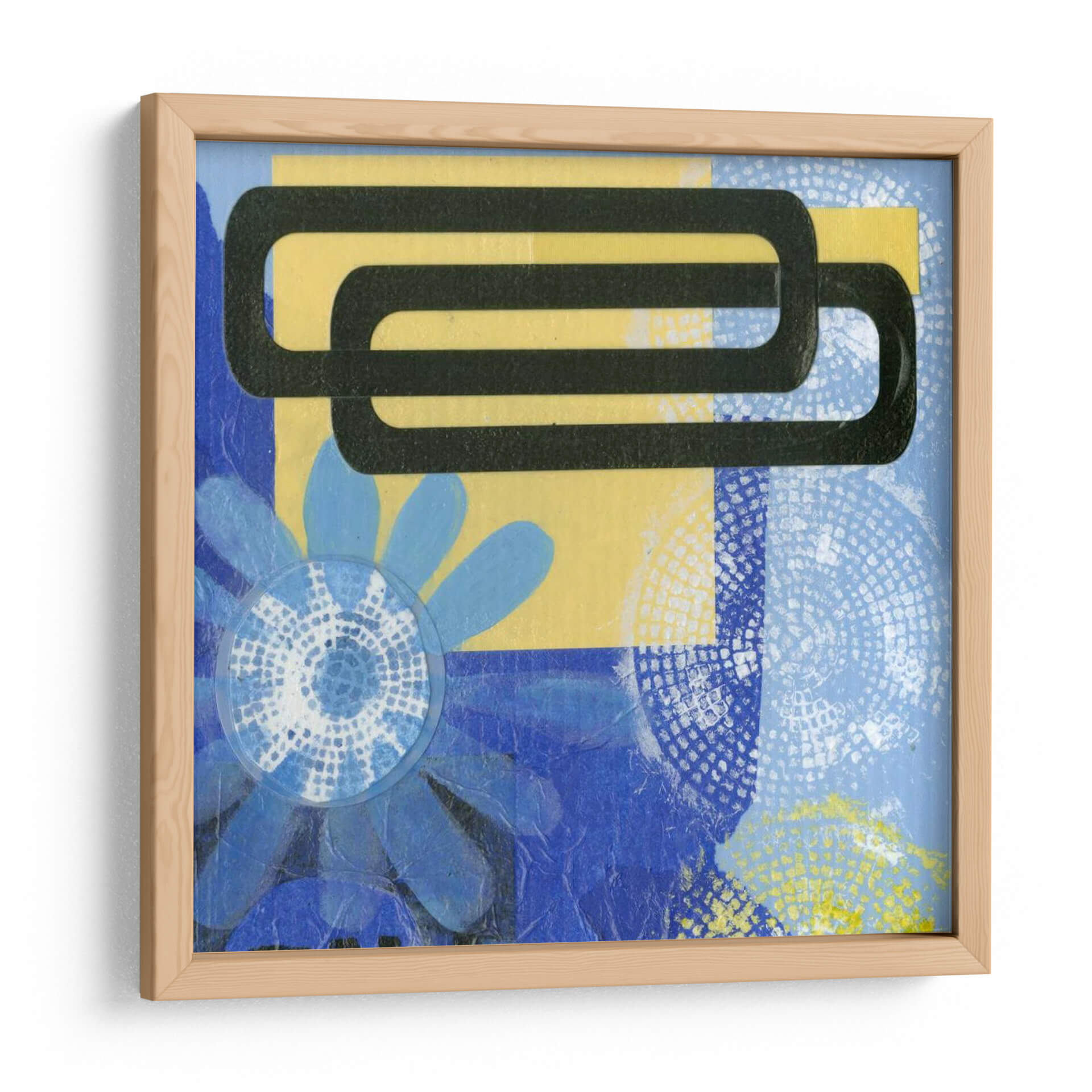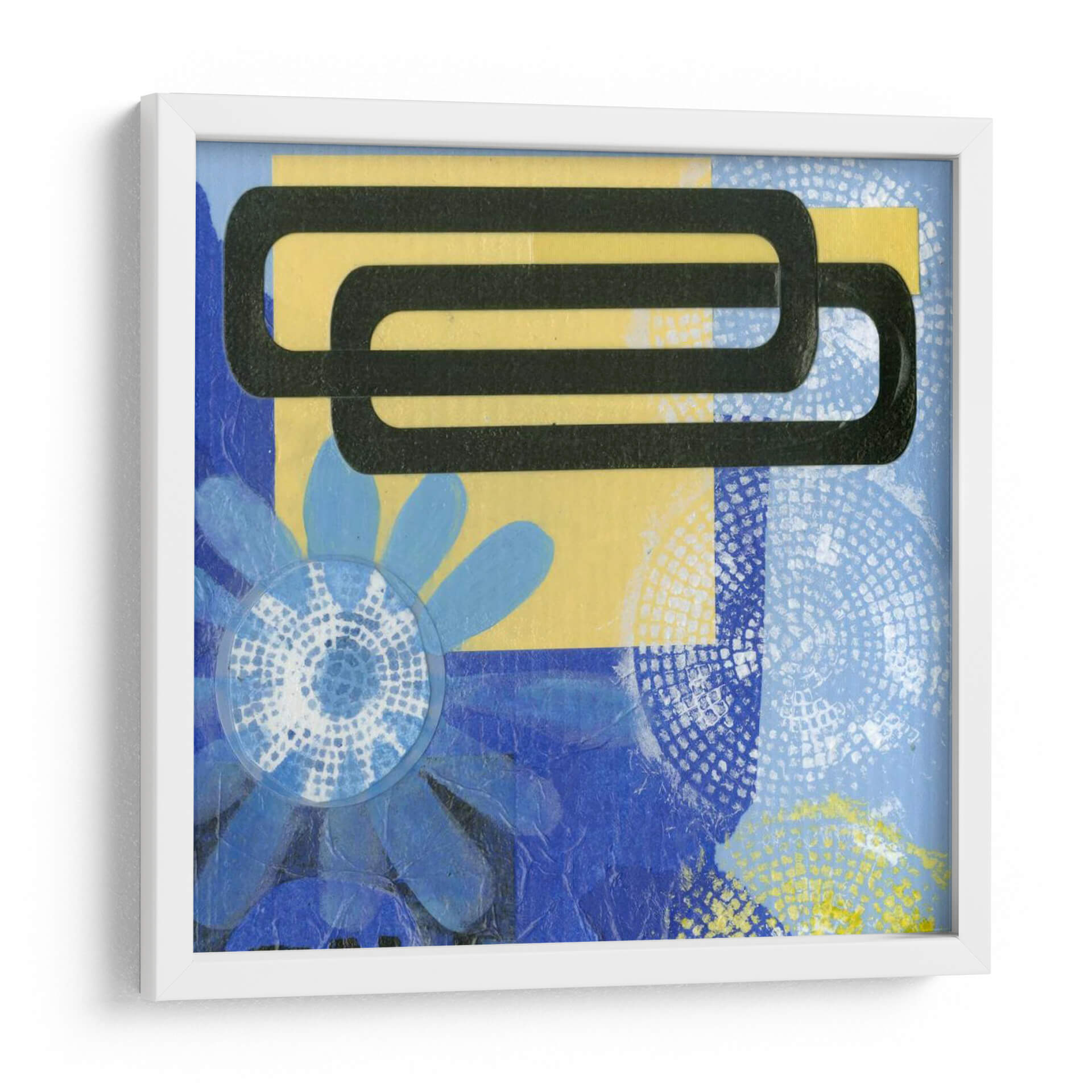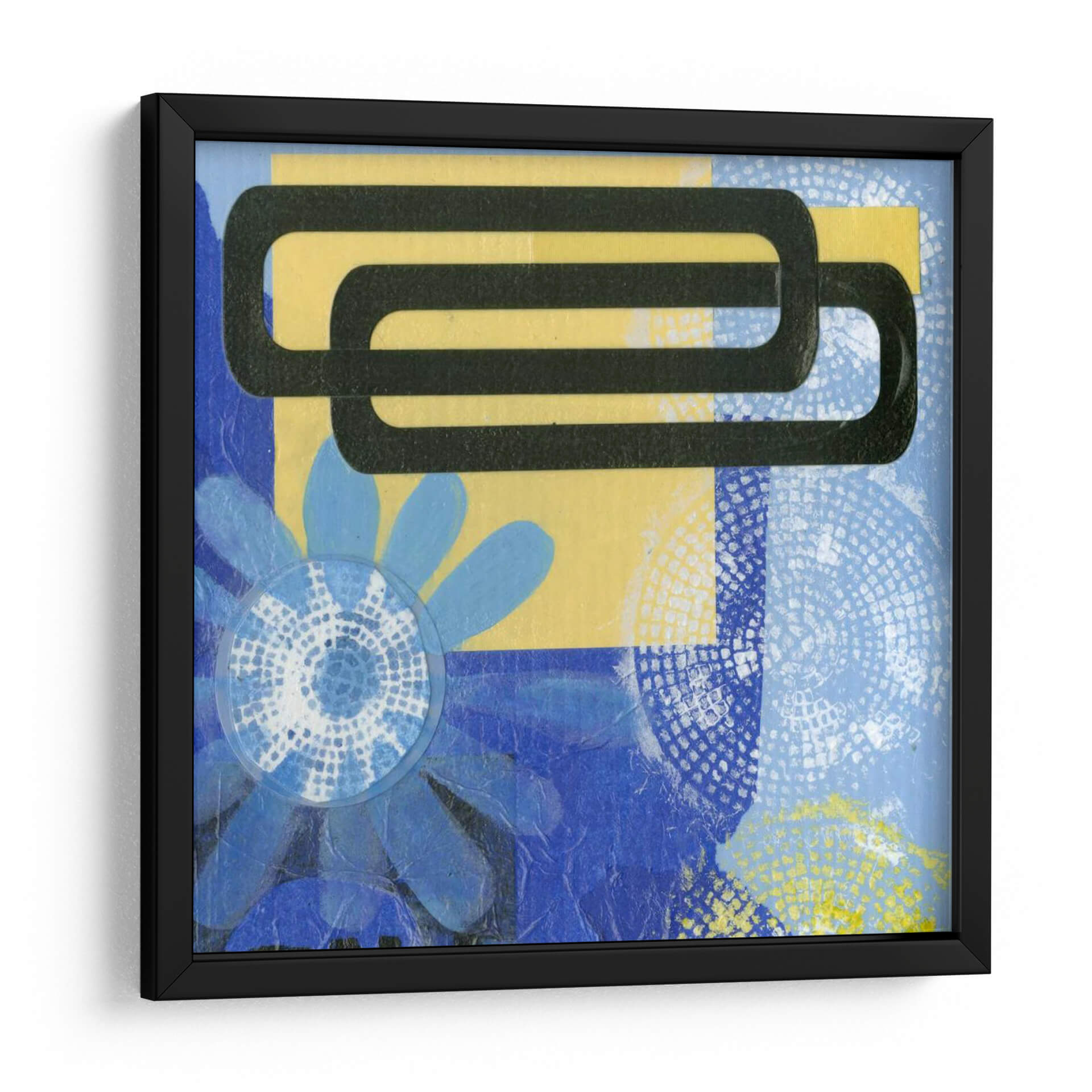Sumérgete en la vibrante energía de "Sonrisa Iv", una cautivadora obra de arte contemporáneo de Deborah Velasquez que fusiona formas geométricas audaces con elementos florales delicados. Los intensos azules, contrastados con vibrantes toques de amarillo y acentos negros, crean una composición dinámica que atrae la mirada y estimula la imaginación. Esta pieza abstracta, con su textura intrigante y superposición de patrones, invita a la contemplación, evocando una sensación de alegría juguetona y modernidad. "Sonrisa Iv" es perfecta para añadir un punto focal de color y carácter a cualquier espacio, desde una sala de estar moderna hasta un estudio creativo u oficina. Su estilo único la convierte en una excelente opción para quienes buscan una decoración de pared que sea a la vez audaz y llena de personalidad. Transforma tu hogar u oficina con este cuadro decorativo que celebra la abstracción y la vitalidad, asegurando conversaciones y admiración. Es una pieza versátil que se adapta a diversos estilos decorativos, aportando un toque de originalidad y sofisticación a tu ambiente.