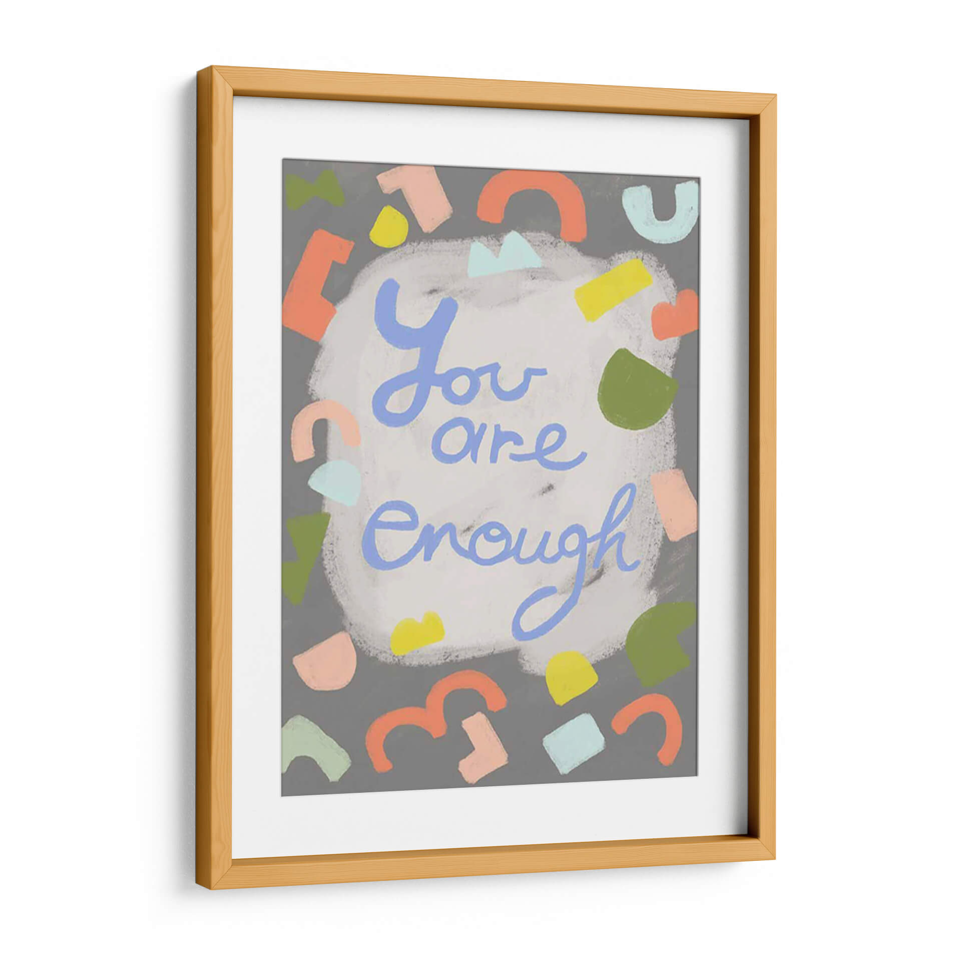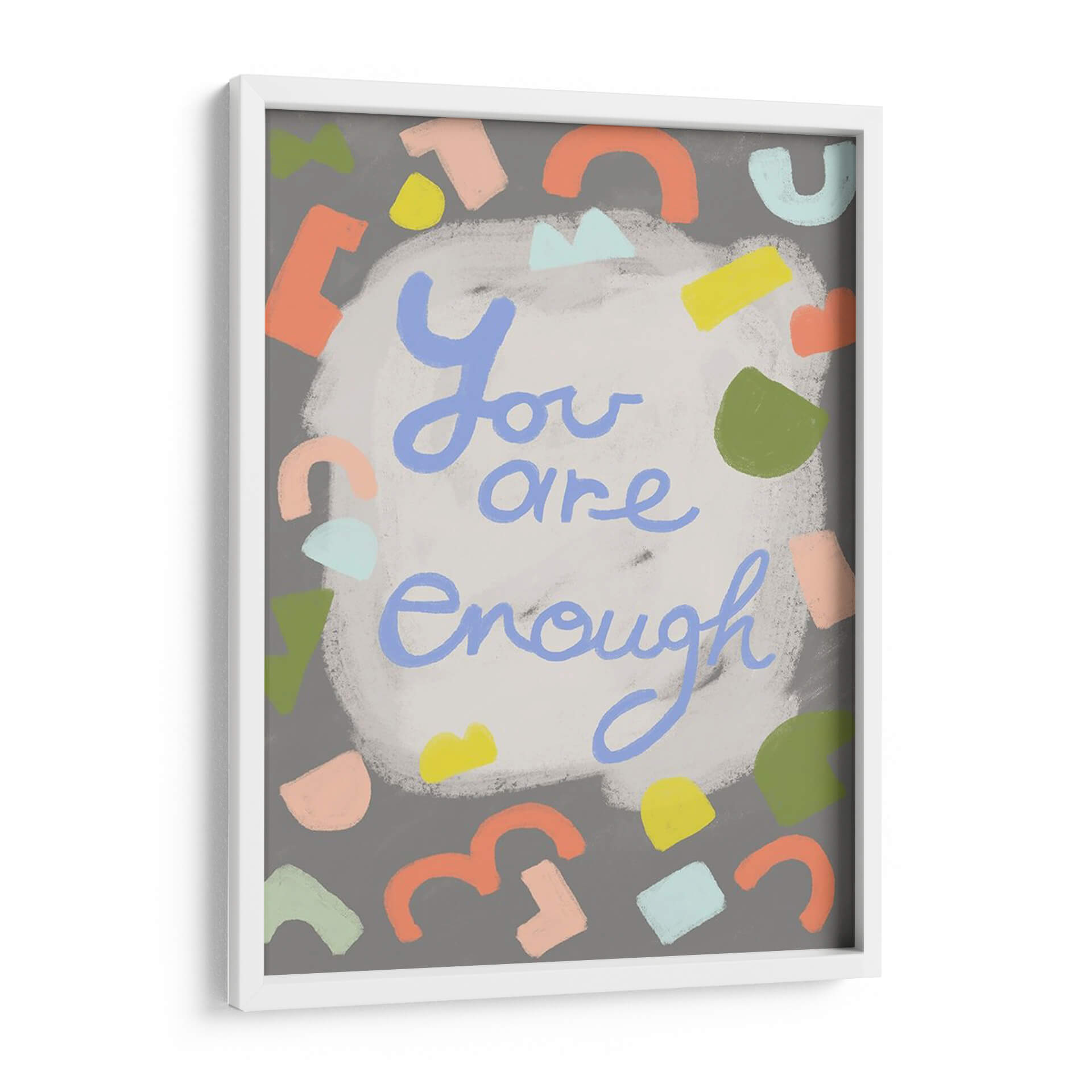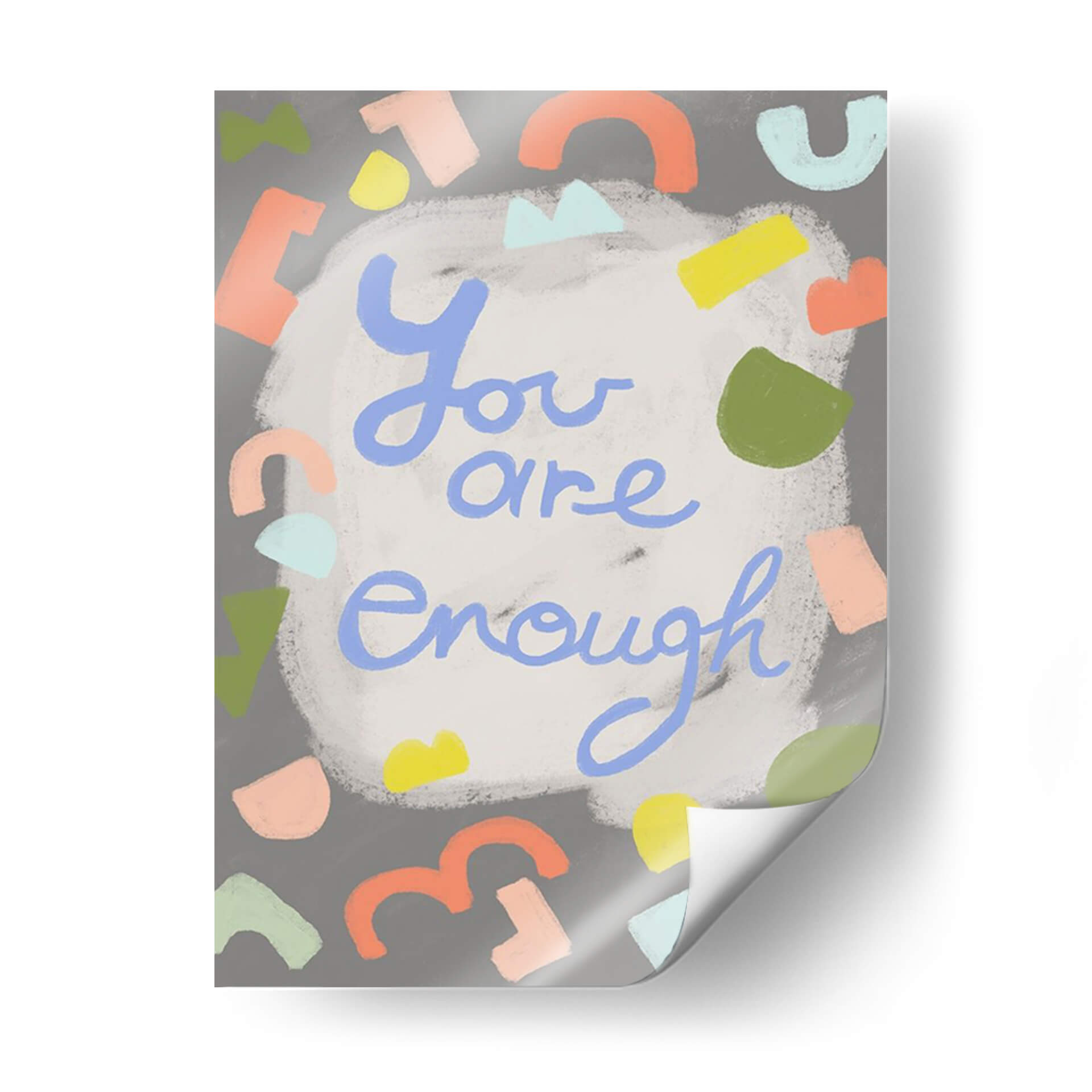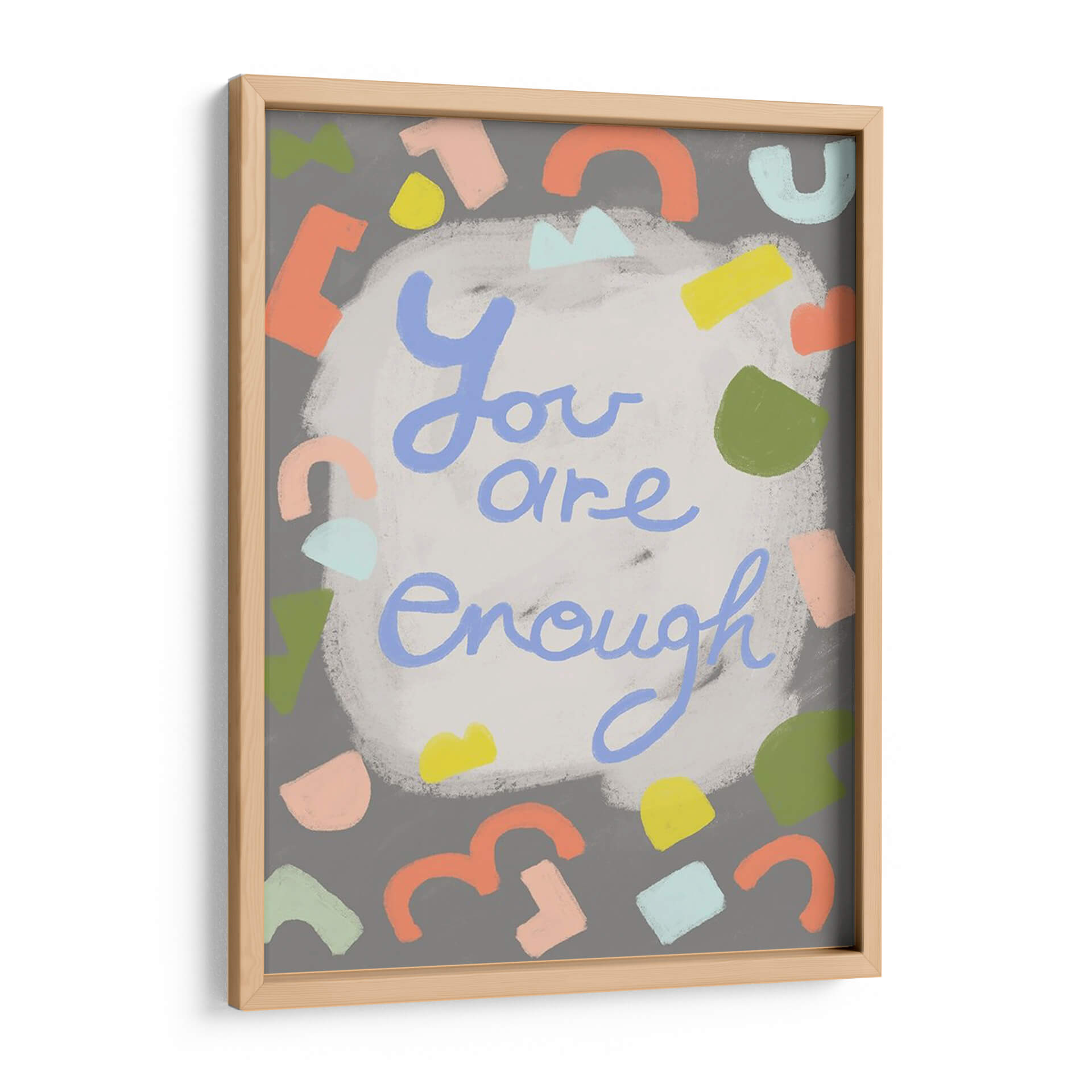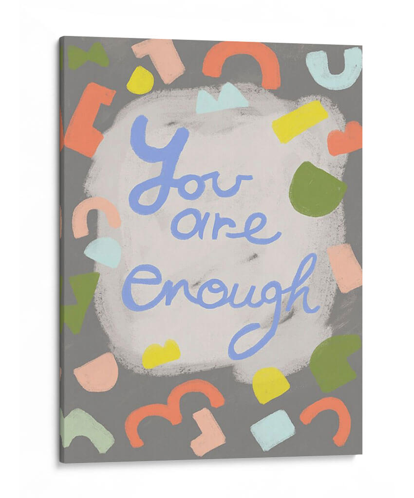 Este cautivador cuadro decorativo, titulado "Su Voz Ii" por Chariklia Zarris, irradia un mensaje de autoaceptación y positividad. La obra presenta una composición lúdica y abstracta, con formas geométricas y orgánicas dispersas alrededor de un texto central que proclama "You are enough" (Eres suficiente). La paleta de colores es suave y atractiva, combinando tonos pastel como coral, verde menta y amarillo con acentos más intensos de azul y naranja sobre un fondo gris apastelado. El estilo es contemporáneo y desenfadado, con pinceladas que sugieren un trazo audaz y expresivo. Este cuadro es ideal para infundir un ambiente de calma y confianza en cualquier espacio, ya sea una sala de estar, un dormitorio o una oficina. Su diseño vibrante y su mensaje inspirador lo convierten en una pieza de arte de pared perfecta para aquellos que buscan rodearse de afirmaciones positivas y un estilo visual moderno y accesible. Añade un toque de optimismo y personalidad a tu decoración con esta obra única.