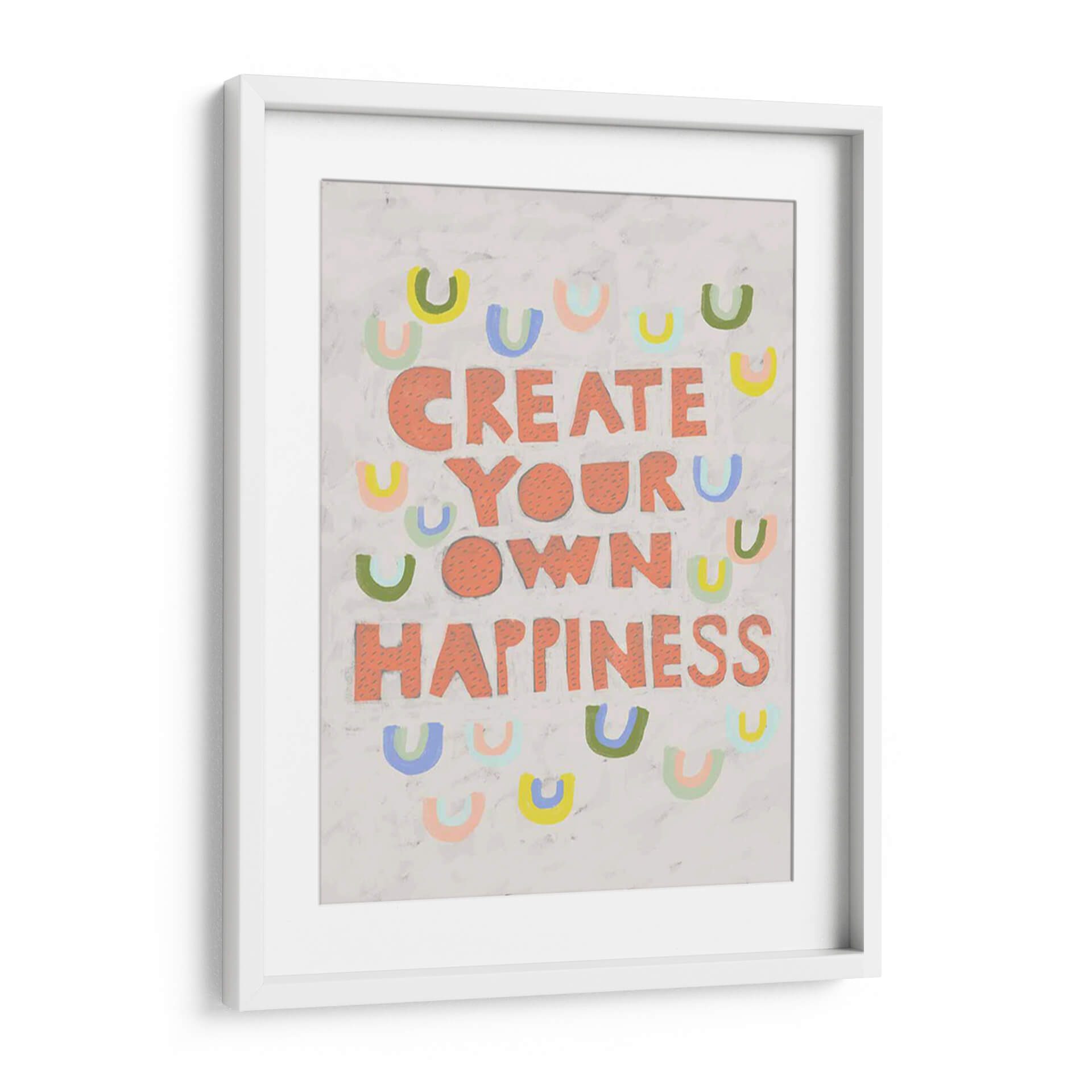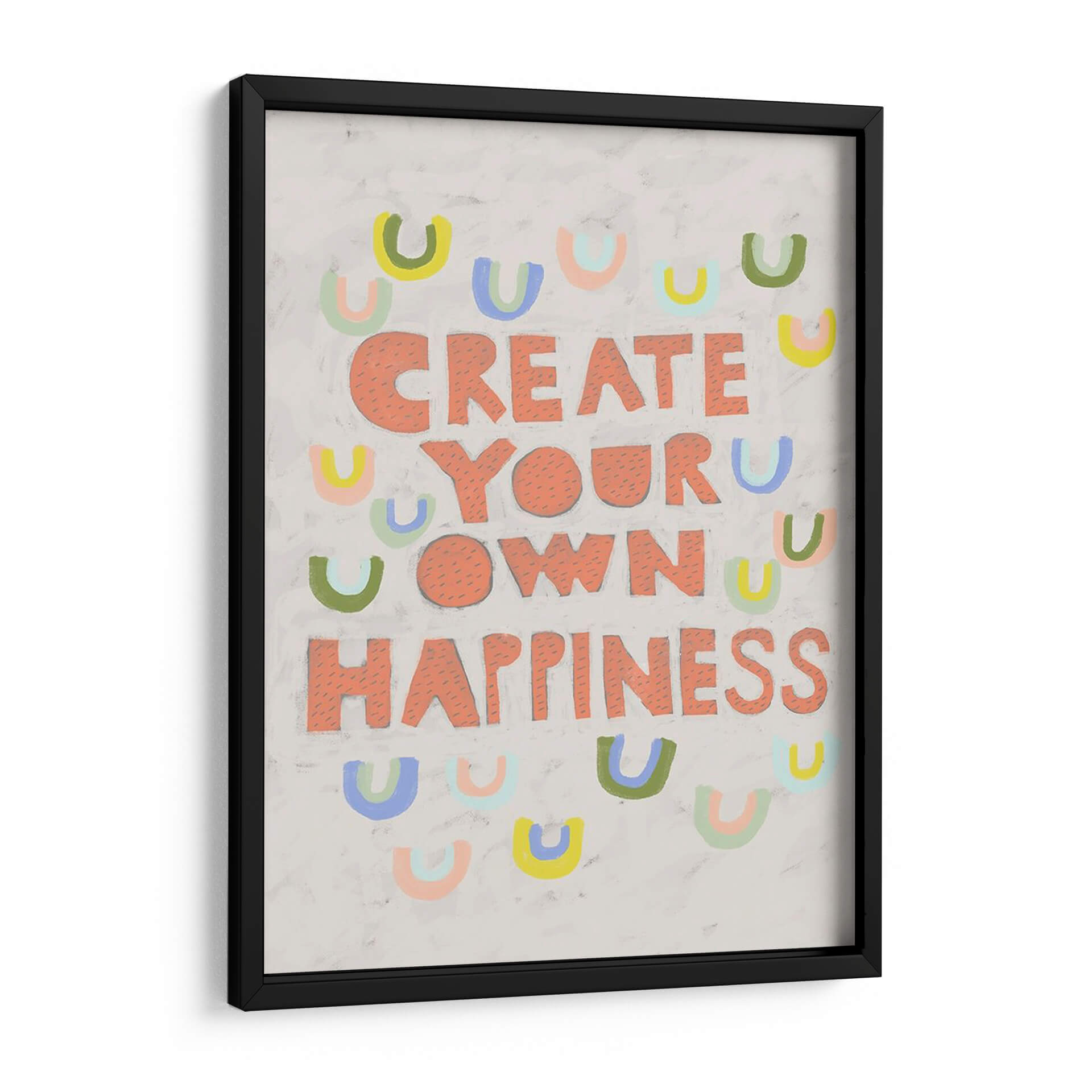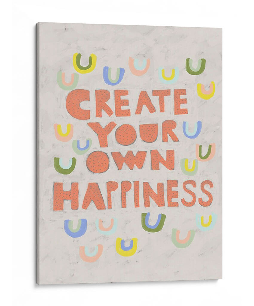 Inyecta optimismo y estilo en tu hogar con "Su Voz Iv", una obra de arte contemporáneo que celebra la creación de la felicidad. Esta pieza vibrante presenta el inspirador mensaje "CREATE YOUR OWN HAPPINESS" (Crea tu propia felicidad) en audaces letras salmón, rodeado por un encantador patrón de arcos de colores pastel. Los tonos suaves y la composición lúdica crean una atmósfera de alegría y empoderamiento, perfecta para cualquier espacio que necesite un toque de positividad. El fondo texturizado en gris claro añade profundidad y un toque artesanal, haciendo que cada detalle sea visualmente atractivo. Ideal para salas de estar, oficinas o cualquier habitación donde se desee fomentar una mentalidad positiva y un ambiente acogedor. "Su Voz Iv" no es solo una decoración, es un recordatorio diario para cultivar tu propia dicha. Añade esta pieza única a tu colección y transforma tu entorno con su energía contagiosa y su diseño contemporáneo.