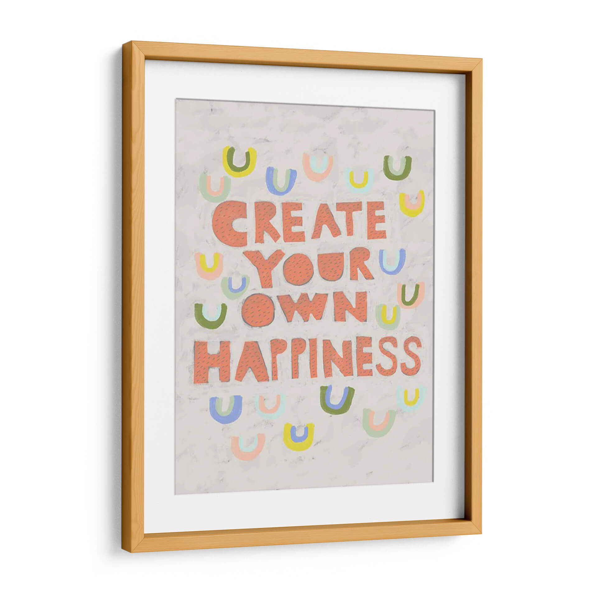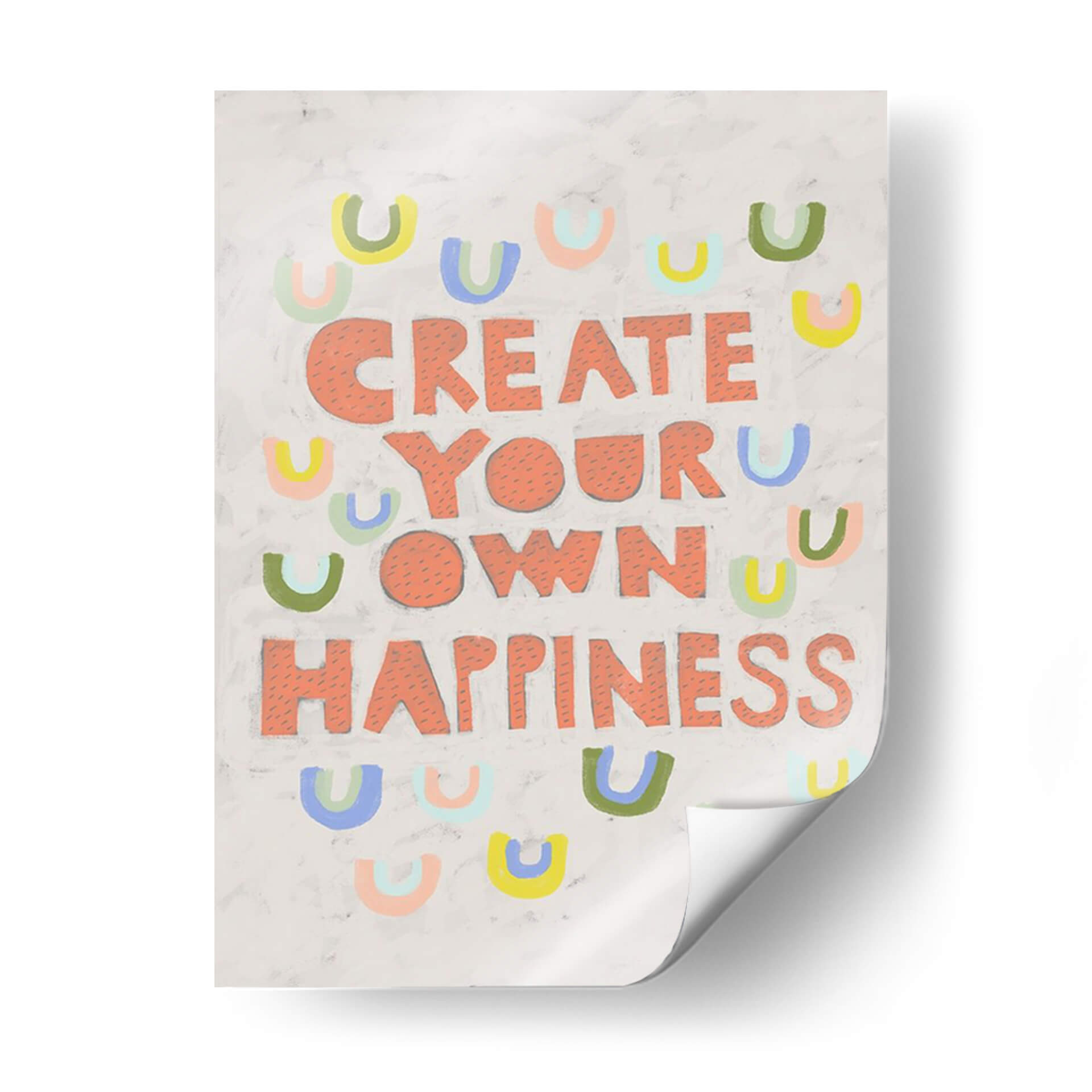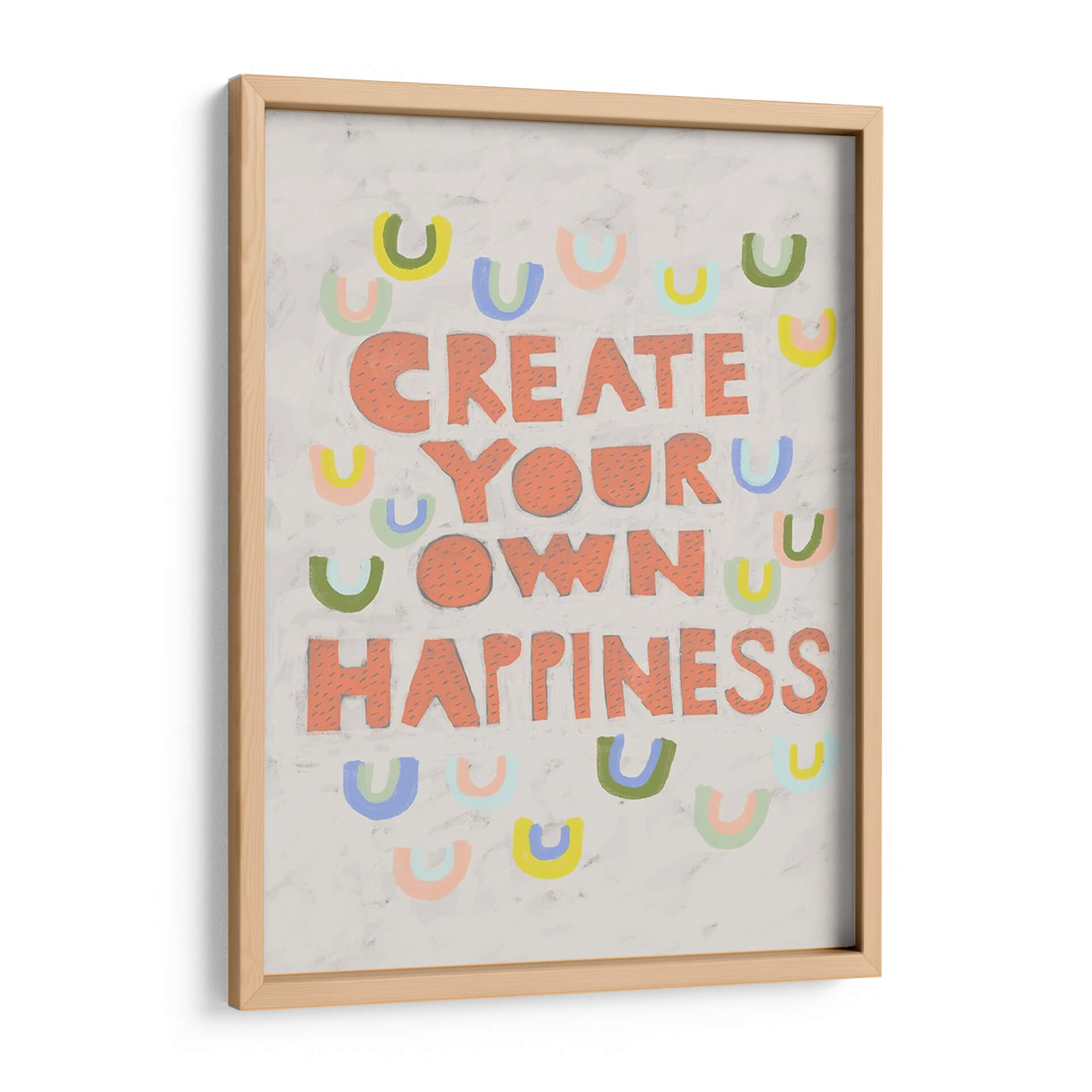 Inyecta optimismo y estilo en tu hogar con "Su Voz Iv", una obra de arte contemporáneo que celebra la creación de la felicidad. Esta pieza vibrante presenta el inspirador mensaje "CREATE YOUR OWN HAPPINESS" (Crea tu propia felicidad) en audaces letras salmón, rodeado por un encantador patrón de arcos de colores pastel. Los tonos suaves y la composición lúdica crean una atmósfera de alegría y empoderamiento, perfecta para cualquier espacio que necesite un toque de positividad. El fondo texturizado en gris claro añade profundidad y un toque artesanal, haciendo que cada detalle sea visualmente atractivo. Ideal para salas de estar, oficinas o cualquier habitación donde se desee fomentar una mentalidad positiva y un ambiente acogedor. "Su Voz Iv" no es solo una decoración, es un recordatorio diario para cultivar tu propia dicha. Añade esta pieza única a tu colección y transforma tu entorno con su energía contagiosa y su diseño contemporáneo.