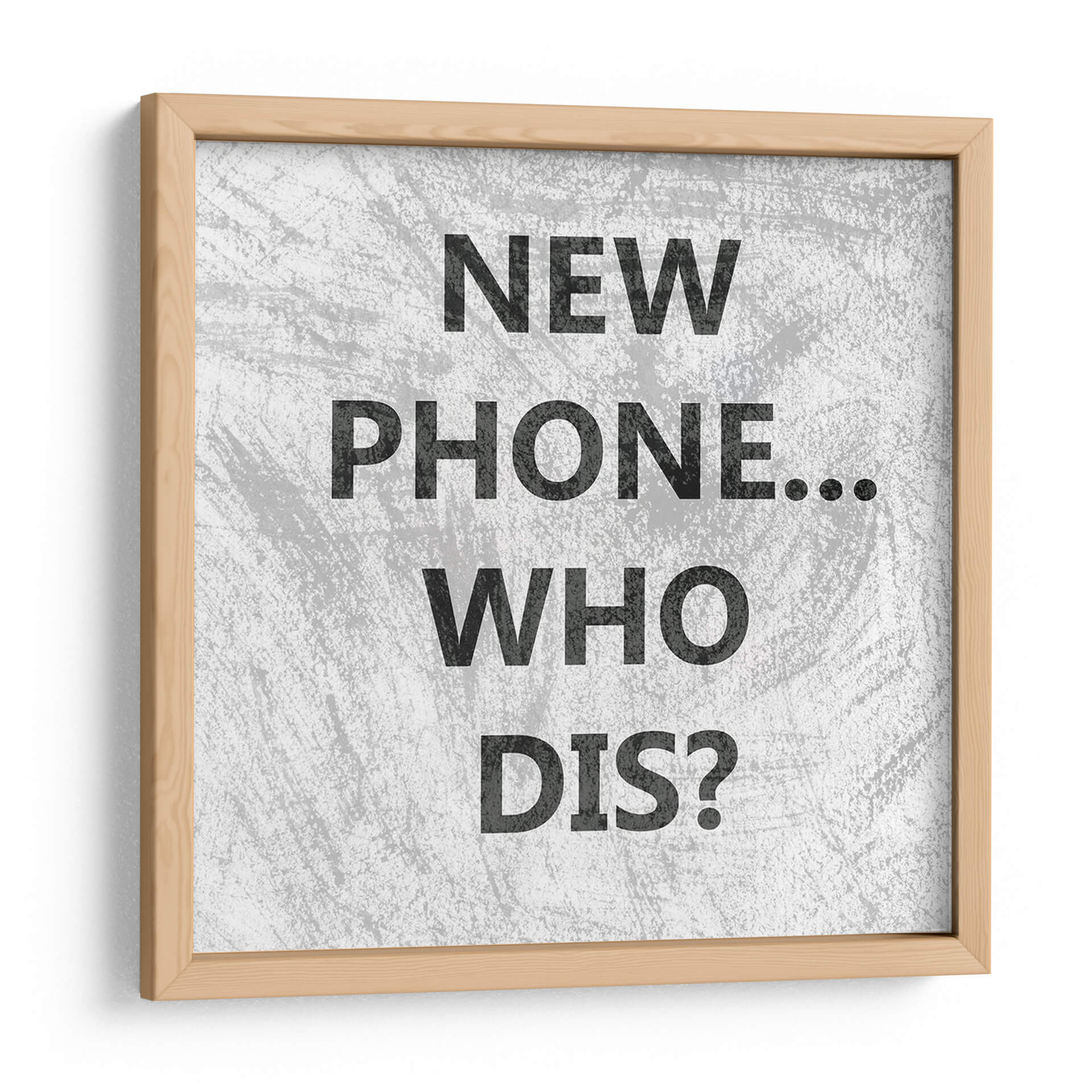 Transforma tu espacio con el intrigante cuadro decorativo "Teléfono Snark I" de Sharon Chandler. Esta pieza de arte contemporáneo captura la esencia de la comunicación moderna con un toque de humor irónico. Presenta un fondo texturizado en tonos grises, sobre el cual se despliega la icónica frase "NEW PHONE... WHO DIS?" en una tipografía audaz y monocromática. Los colores neutros y el diseño minimalista hacen de esta obra un complemento versátil para cualquier decoración, desde la más moderna y urbana hasta la más sobria y elegante. Ideal para oficinas, salas de estar o incluso dormitorios, este cuadro decorativo añade un punto de conversación y un aire de irreverencia sofisticada. La textura sutil del fondo aporta profundidad y carácter, mientras que la claridad del mensaje garantiza que la pieza no pase desapercibida. "Teléfono Snark I" es más que una simple decoración de pared; es una declaración de estilo y una reflexión sobre la cultura contemporánea. Añade un toque de ingenio a tu hogar u oficina con esta obra única que combina arte visual y mensaje.