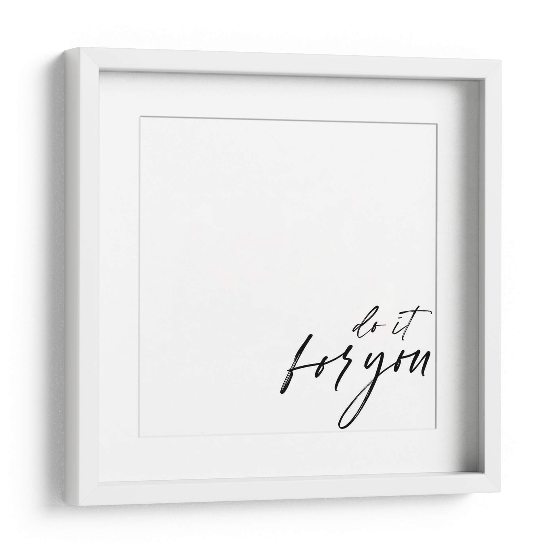 Inyecta motivación y positividad en tu espacio con "Usted Mismo Yo", una cautivadora obra de arte de Anna Hambly. Esta pieza minimalista presenta una inspiradora frase escrita en una elegante caligrafía manuscrita en color negro sobre un fondo blanco impoluto. La composición se centra en la autoafirmación y el empoderamiento personal, transmitiendo un mensaje de autocuidado y dedicación a los propios objetivos. El estilo de letra fluida y orgánica añade un toque de calidez y autenticidad, invitando a la reflexión sobre la importancia de priorizarse a uno mismo. El contraste nítido entre el negro y el blanco crea un impacto visual limpio y moderno, asegurando que la frase destaque y resuene con el espectador. "Usted Mismo Yo" es ideal para cualquier entorno que busque inspiración, desde un despacho en casa hasta un dormitorio o una sala de estar. Este cuadro decorativo contemporáneo es perfecto para quienes aprecian el arte con mensaje, añadiendo no solo estética sino también un recordatorio diario de autoamor y crecimiento personal. Transforma tu pared en un lienzo de inspiración con esta pieza única.