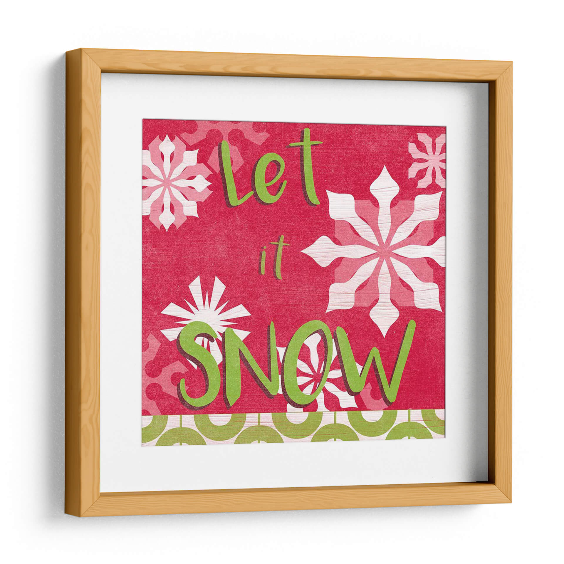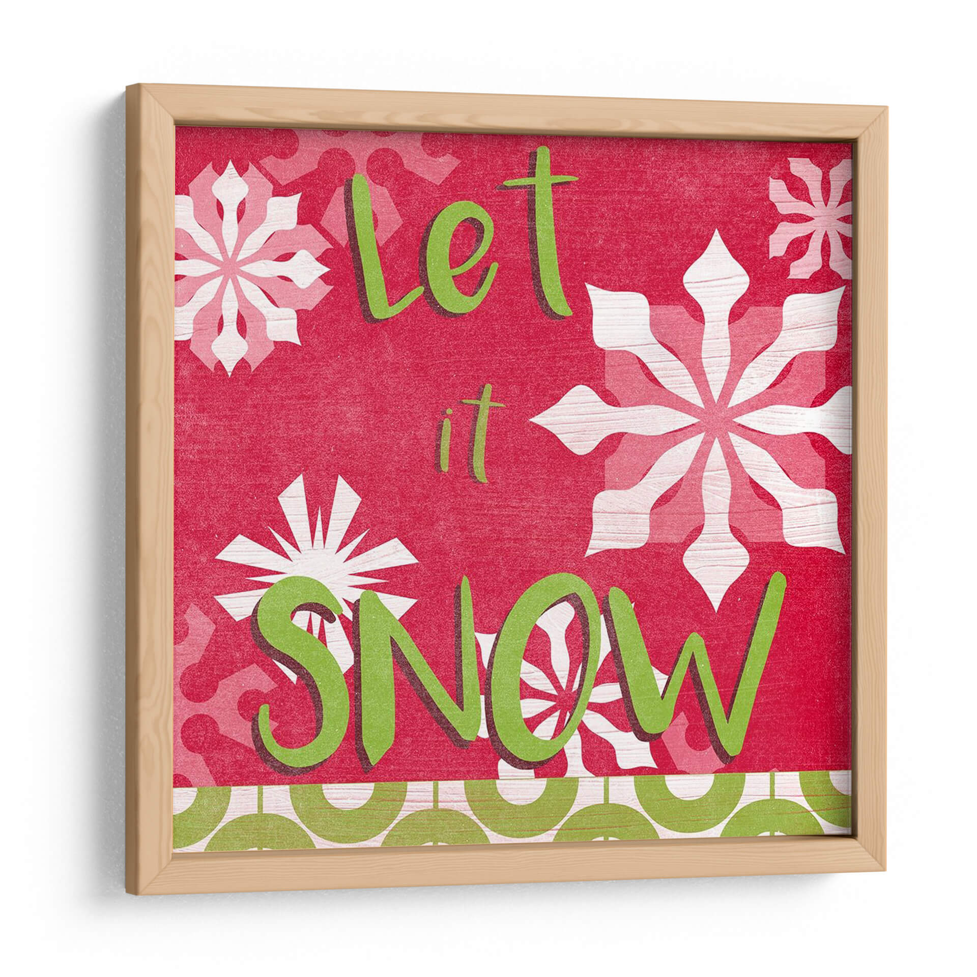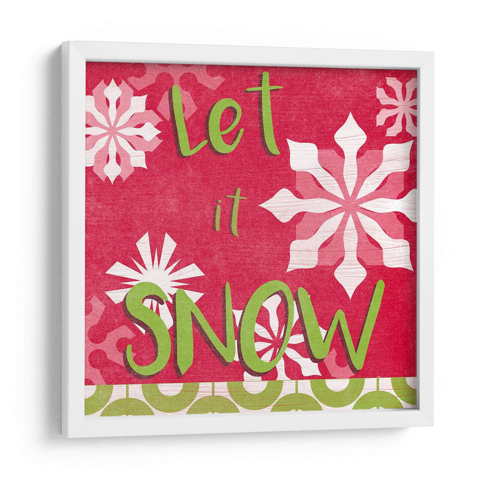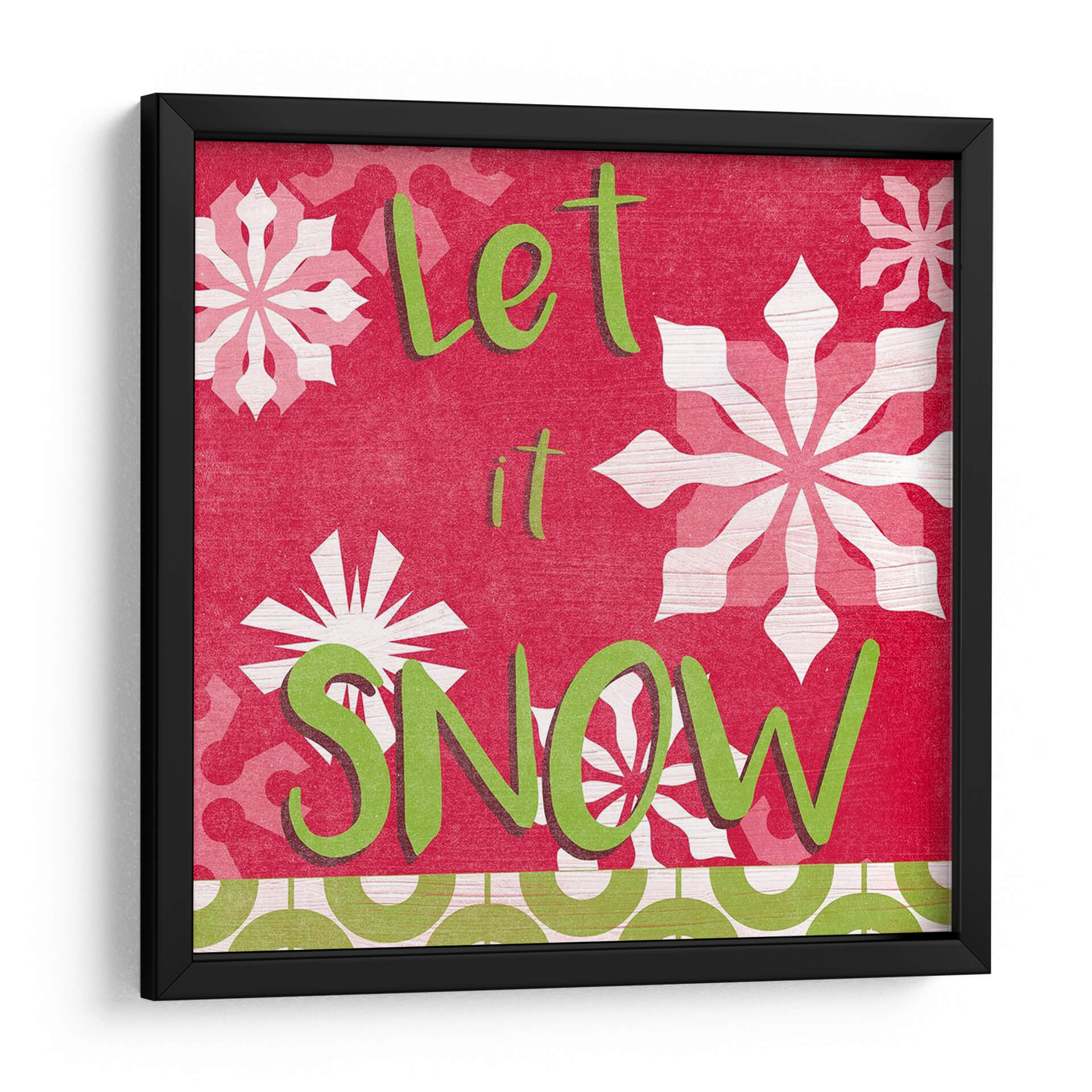 Inunda tu hogar con la alegría festiva de este cuadro decorativo "Vamos A Conseguir Alegremente Vi", una obra vibrante del artista June Erica Vess. Este diseño cautivador presenta una paleta de colores audaces, dominada por un rojo intenso que evoca calidez y celebración, contrastado con el verde brillante del texto y los copos de nieve en blanco y rosa pálido. La composición visual es dinámica, con grandes y estilizados copos de nieve que añaden un toque invernal encantador, mientras que el mensaje "Let it Snow" (Deja que nieve) invita a la relajación y al espíritu festivo. El estilo gráfico y texturizado de la obra le confiere una personalidad única, haciéndola ideal para espacios que buscan un toque de carácter y alegría. Este cuadro decorativo es perfecto para añadir un acento festivo a tu sala de estar, comedor o incluso una entrada durante la temporada navideña, o para mantener ese espíritu acogedor durante todo el año. Su diseño versátil se adapta a decoraciones modernas, rústicas o eclécticas, aportando un elemento visualmente atractivo y lleno de energía positiva que sin duda será un tema de conversación.