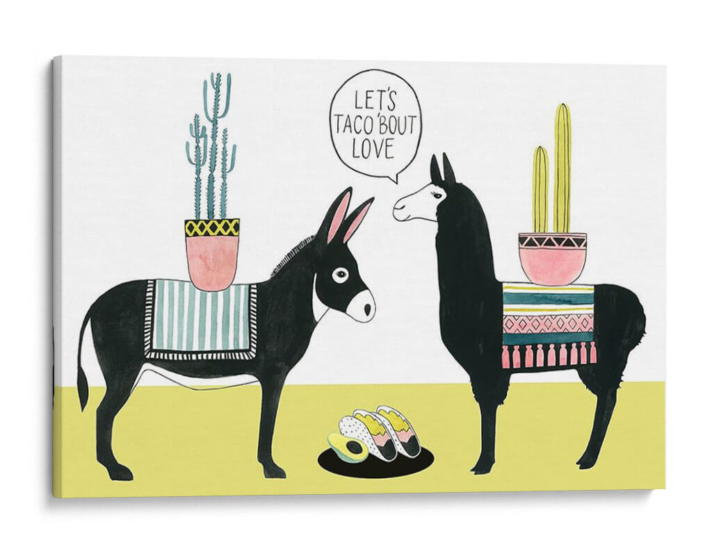 Captura la esencia de la diversión y el afecto con este encantador cuadro decorativo 'Vamos A Tacos Bout Amor I' de Grace Popp. Esta obra de arte digital presenta un burro y una llama vestidos con mantas coloridas, adornados con cactus en macetas vibrantes, compartiendo un momento entrañable con un plato de tacos. La paleta de colores, dominada por tonos tierra, verdes y toques de rosa y azul, crea una atmósfera alegre y juguetona, perfecta para añadir personalidad a cualquier espacio. El estilo artístico es una mezcla encantadora de ilustración peculiar y elementos culturales, evocando una sensación de calidez y camaradería. Ideal para la cocina, el comedor o cualquier habitación donde quieras inyectar un toque de humor y estilo único. Este cuadro decorativo es un punto focal divertido que seguramente provocará sonrisas y conversaciones, celebrando el amor con un giro ingenioso. Transforma tu hogar con esta pieza única que combina arte contemporáneo con un mensaje conmovedor, creando un ambiente acogedor y lleno de vida. ¡Deja que esta obra de arte sea el centro de atención y exprese tu estilo con audacia!