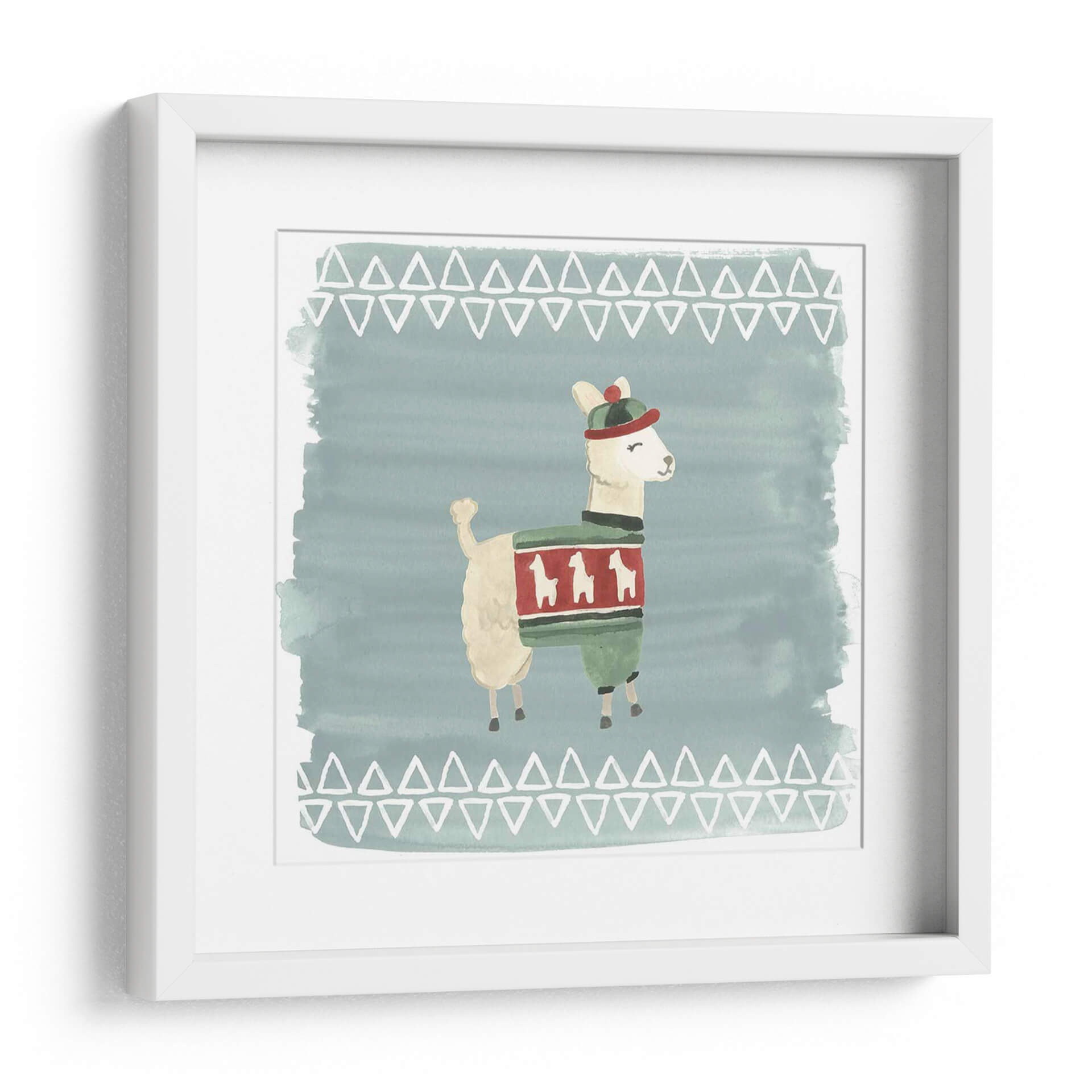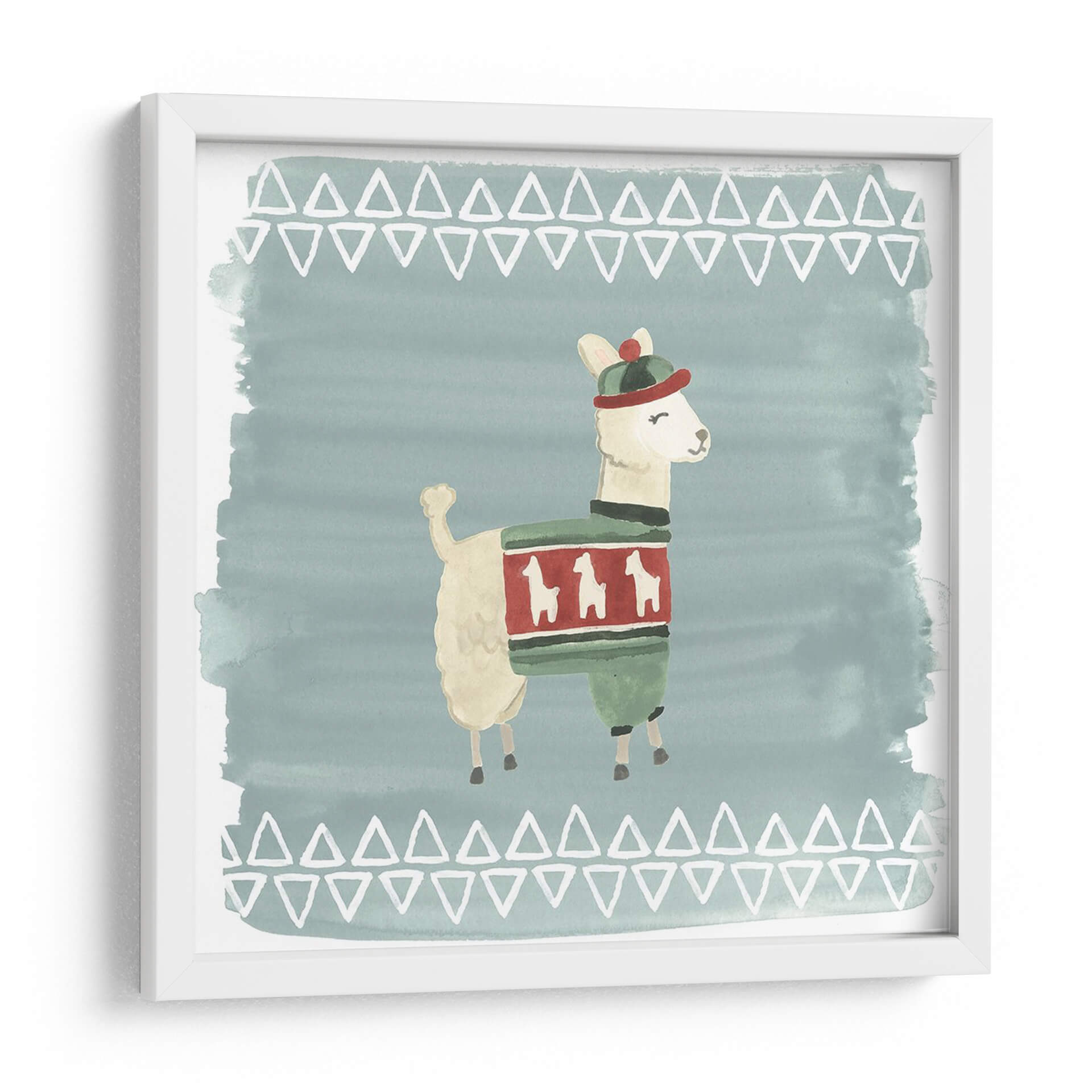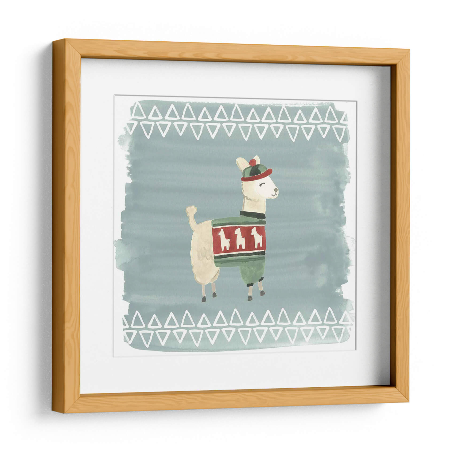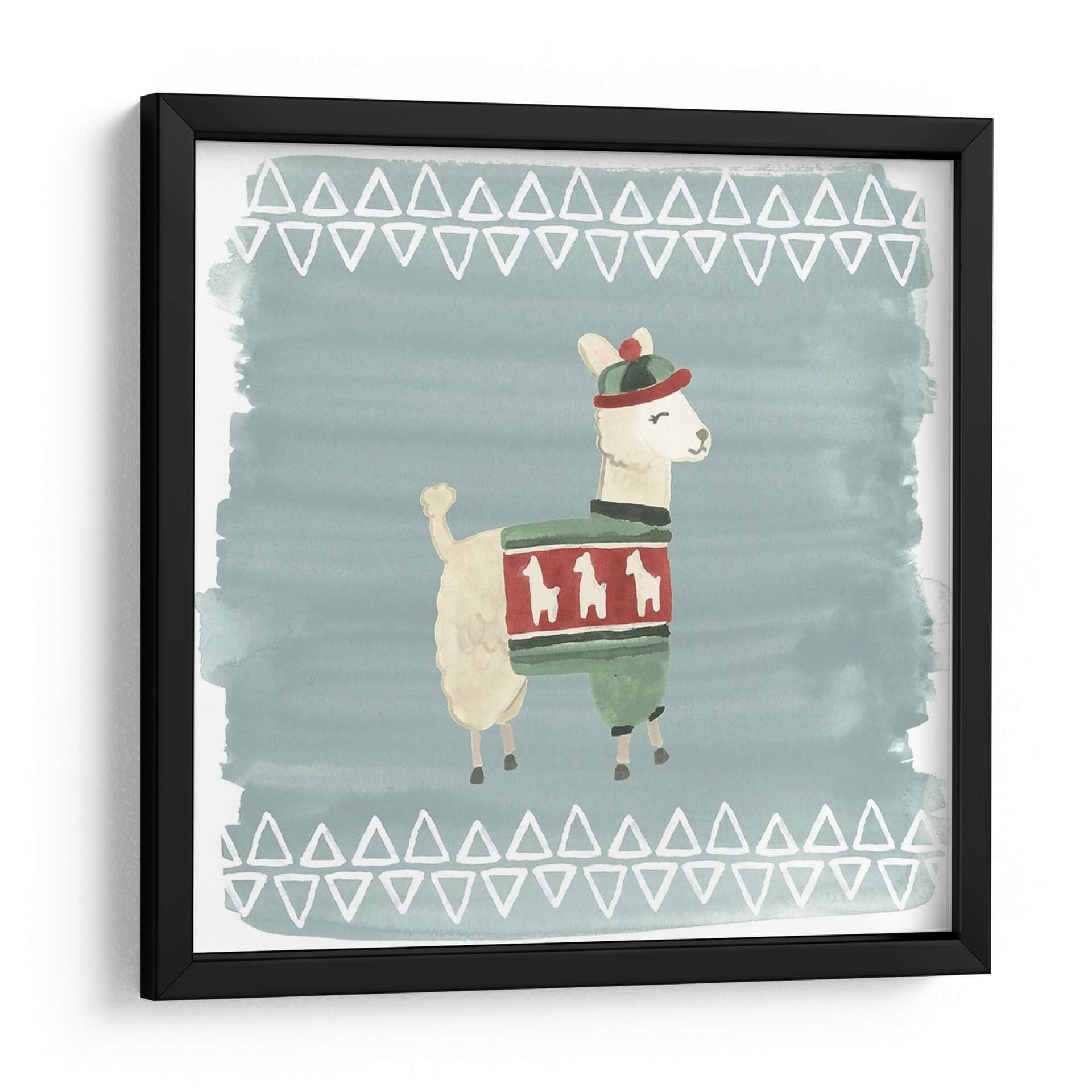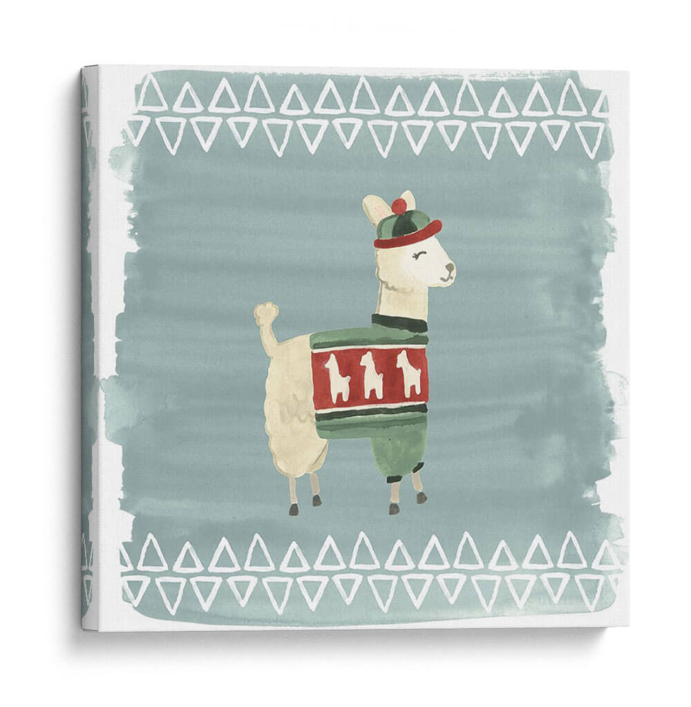 Este encantador cuadro decorativo presenta una llama de acuarela vestida con un suéter festivo y un gorro, irradiando una atmósfera de calidez y alegría invernal. La obra, titulada "Winter Wonder Llama III" por June Erica Vess, utiliza una paleta de colores suaves con predominancia de tonos azul verdoso, crema y toques de rojo y verde, creando un ambiente sereno y acogedor. El estilo de acuarela, con sus pinceladas sueltas y texturas sutiles, aporta un aire artesanal y delicado a la pieza. La composición, centrada en la adorable figura de la llama, está adornada con patrones geométricos de triángulos y la imagen de llamas en miniatura sobre su suéter, añadiendo un toque lúdico y detallado. Ideal para añadir un toque de personalidad y dulzura a habitaciones infantiles, estudios, salas de estar o cualquier espacio que necesite una dosis de encanto invernal y estilo contemporáneo. Este cuadro decorativo es perfecto para quienes buscan arte original que evoque sentimientos de felicidad y comodidad.