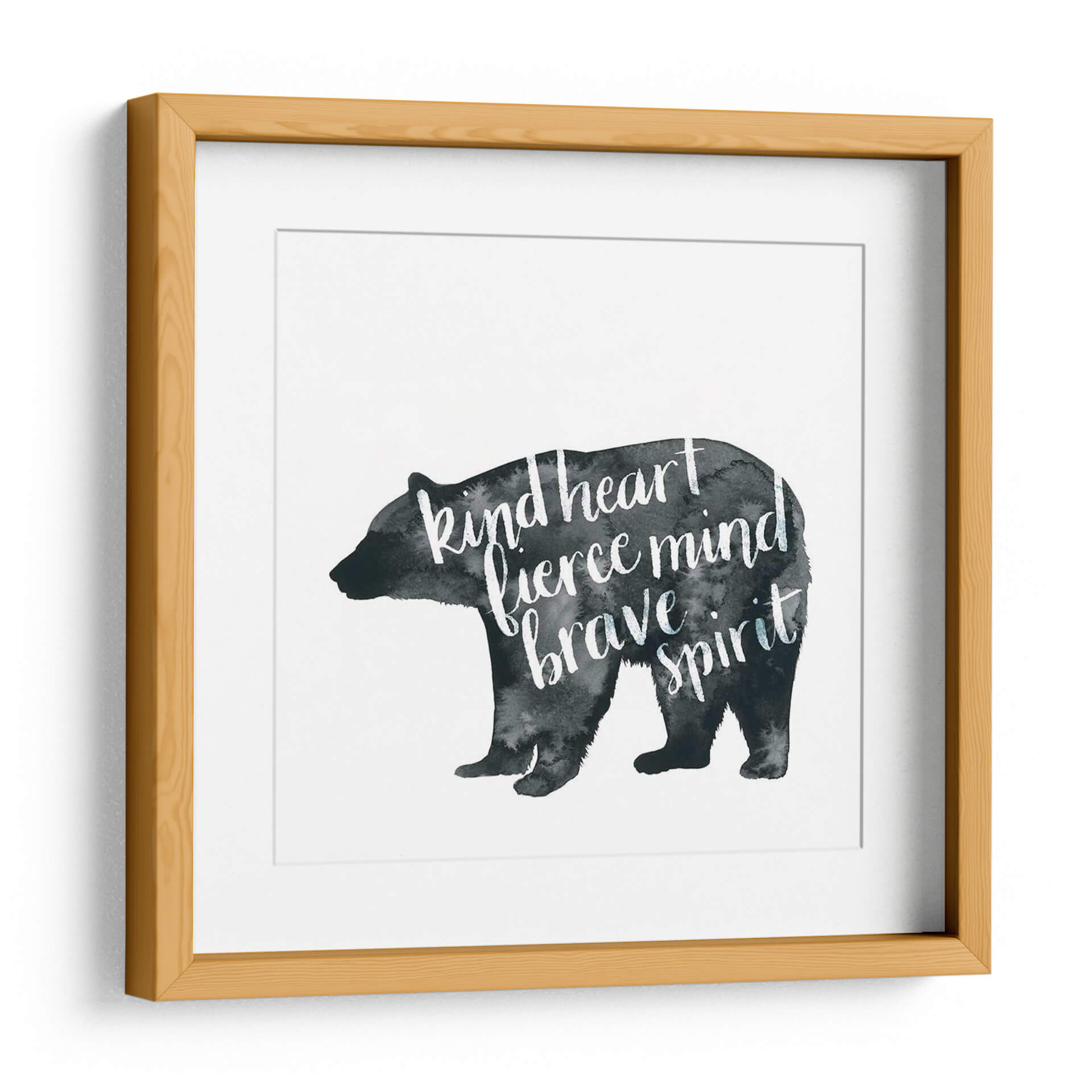 Adéntrate en la sabiduría y la fuerza con "Wise Walker I", una cautivadora obra de arte de Grace Popp. Este cuadro decorativo presenta una silueta de oso de acuarela en tonos de negro y gris oscuro, su forma intrincadamente tejida con las inspiradoras palabras "kind heart, fierce mind, brave spirit" (corazón amable, mente feroz, espíritu valiente). La técnica de acuarela aporta una textura suave y orgánica, creando un contraste llamativo con la audacia del mensaje. Los sutiles matices grises y negros de la paleta de colores transmiten una sensación de profundidad y reflexión, haciendo de esta pieza un complemento perfecto para cualquier espacio que busque un toque de carácter y motivación. Ideal para salas de estar modernas, estudios de yoga o cualquier rincón que necesite una dosis de inspiración diaria. "Wise Walker I" no es solo una decoración de pared, es un recordatorio visual para abrazar tu propia fortaleza interior mientras mantienes la compasión. Añade este cuadro decorativo a tu hogar para crear un ambiente de empoderamiento y calma.