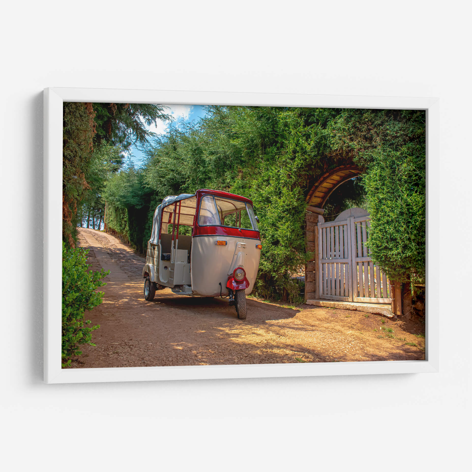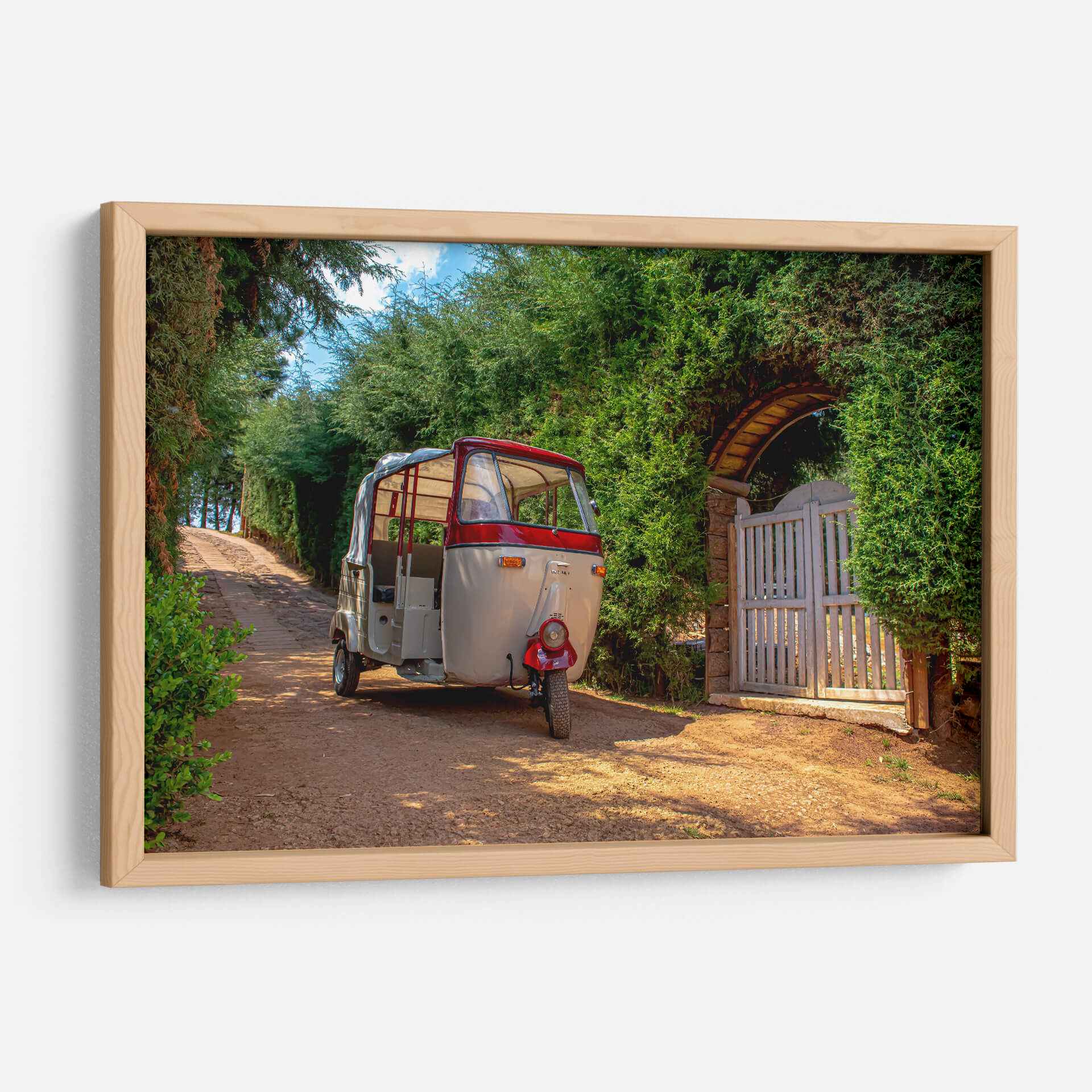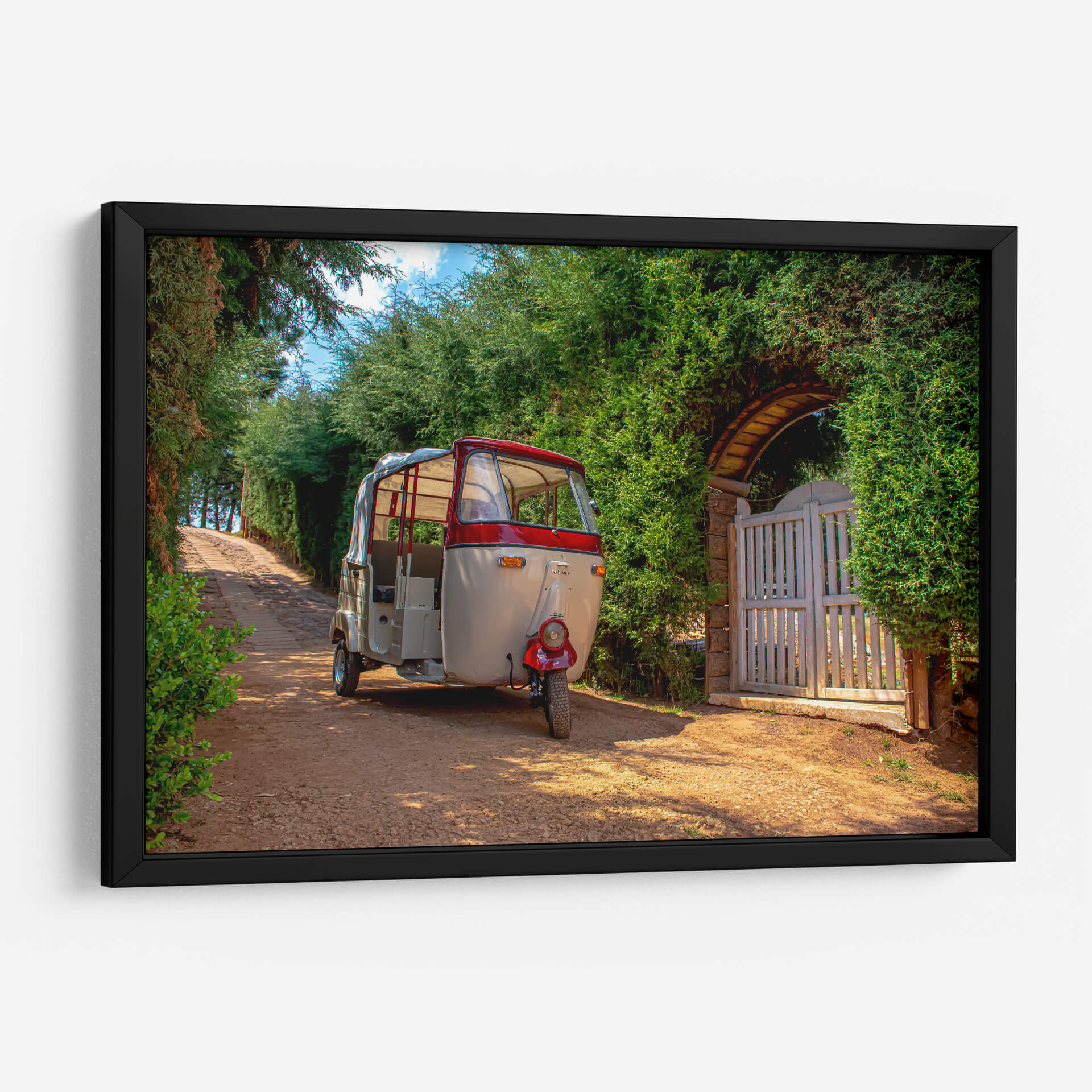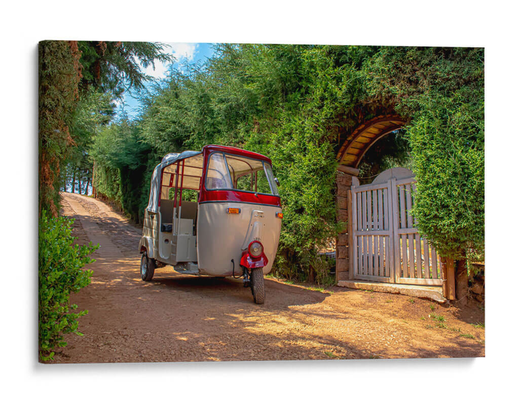 Embárquese en un viaje visual con nuestro cuadro decorativo 'Campestre', una obra que captura la esencia de la serenidad rural y la aventura nostálgica. Esta pieza artística presenta un pintoresco camino de tierra flanqueado por frondosos árboles verdes que forman un túnel natural, culminando en un encantador portal de madera y un arco de piedra. En el centro de la composición, un triciclo clásico en tonos rojos y crema añade un toque de encanto retro y evoca un sentido de viaje pausado y exploración. Los colores vibrantes de la vegetación contrastan maravillosamente con el cielo azul brillante y la tierra ocre del camino, creando una atmósfera acogedora y llena de vida. La luz del sol se filtra a través de las hojas, proyectando sombras tenues que añaden profundidad y realismo a la escena. Este cuadro es ideal para infundir un aire de tranquilidad y escapismo en cualquier espacio, desde una sala de estar o comedor hasta una oficina o un rincón de lectura. Aporta una sensación de paz, simplicidad y la promesa de descubrimientos al hogar, convirtiéndose en un punto focal que invita a la contemplación y al disfrute de la belleza del entorno natural y los pequeños placeres de la vida. Perfecto para amantes de los paisajes, el arte retro o simplemente para aquellos que buscan añadir un toque de calidez y carácter a su decoración.