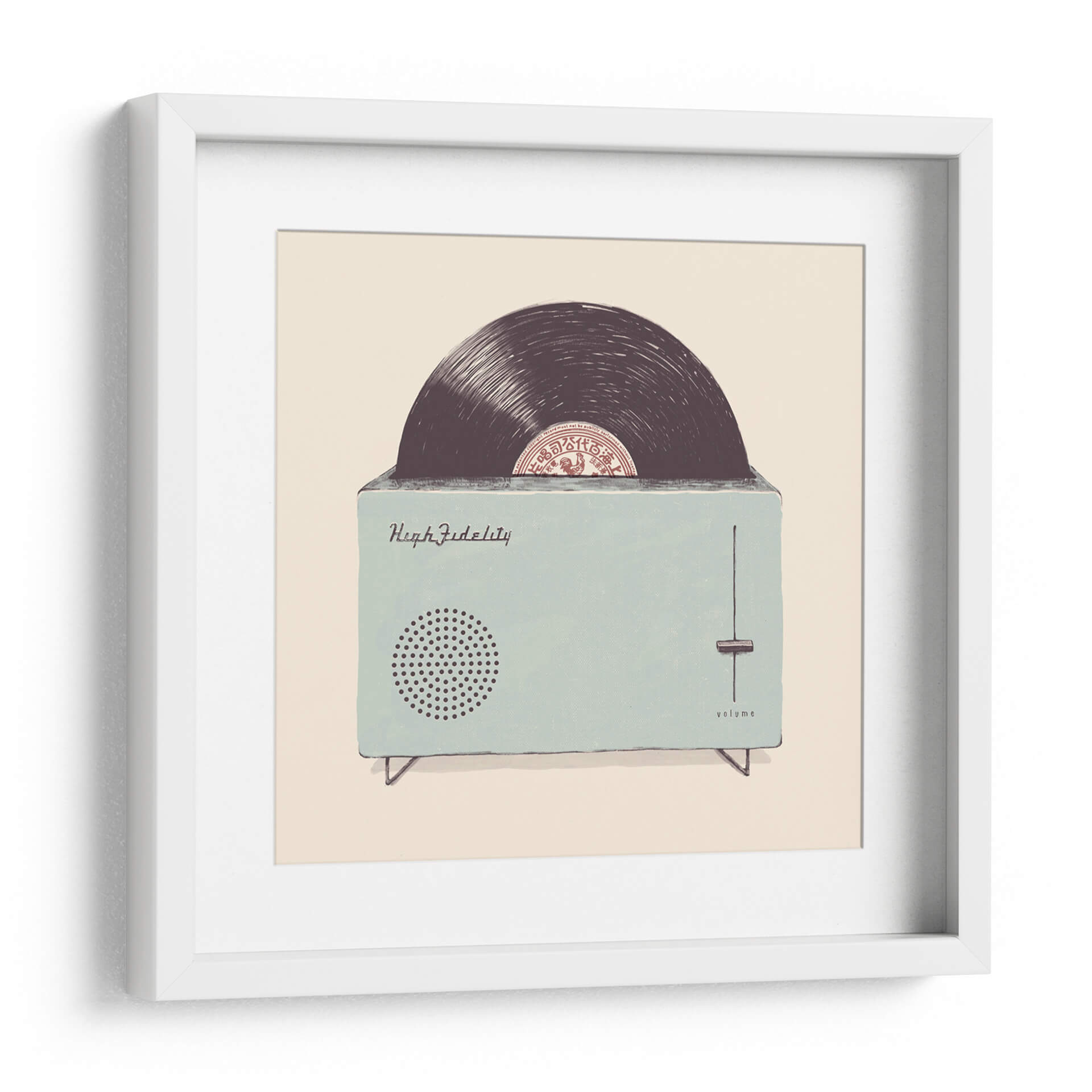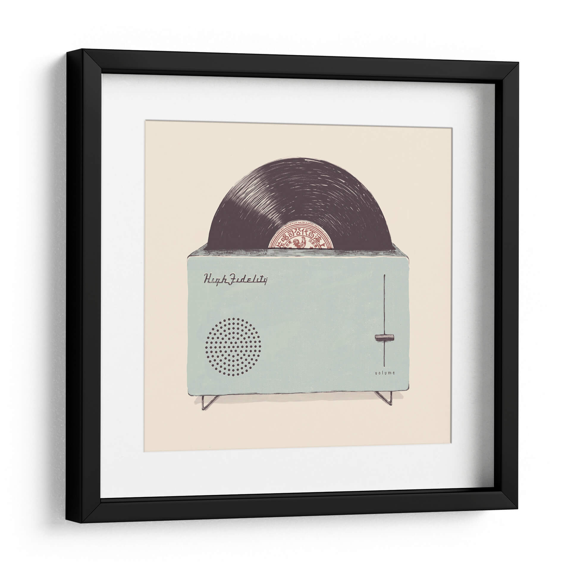 Sumérgete en la nostalgia y la calidad del sonido con "Alta Fidelidad", una obra de arte de Florent Bodart que evoca la era dorada de la música. Este cuadro decorativo presenta un diseño estilizado y minimalista centrado en un tocadiscos retro, con un disco de vinilo asomando delicadamente. La paleta de colores, dominada por tonos pastel suaves y el contraste de un vinilo oscuro, crea una atmósfera serena y a la vez vibrante, perfecta para añadir un toque de encanto vintage a cualquier espacio. La inscripción "High Fidelity" y el control de volumen sutil complementan la estética, invitando a la reflexión sobre la experiencia auditiva. Ideal para amantes de la música, coleccionistas de vinilos o cualquier persona que busque una pieza decorativa única y con carácter para su hogar u oficina. Este cuadro decorativo no solo embellece tus paredes, sino que también celebra la conexión emocional con la música, sirviendo como un punto focal que genera conversación y evoca recuerdos. Transforma tu entorno con este tributo visual a la alta fidelidad y la pasión por el audio.