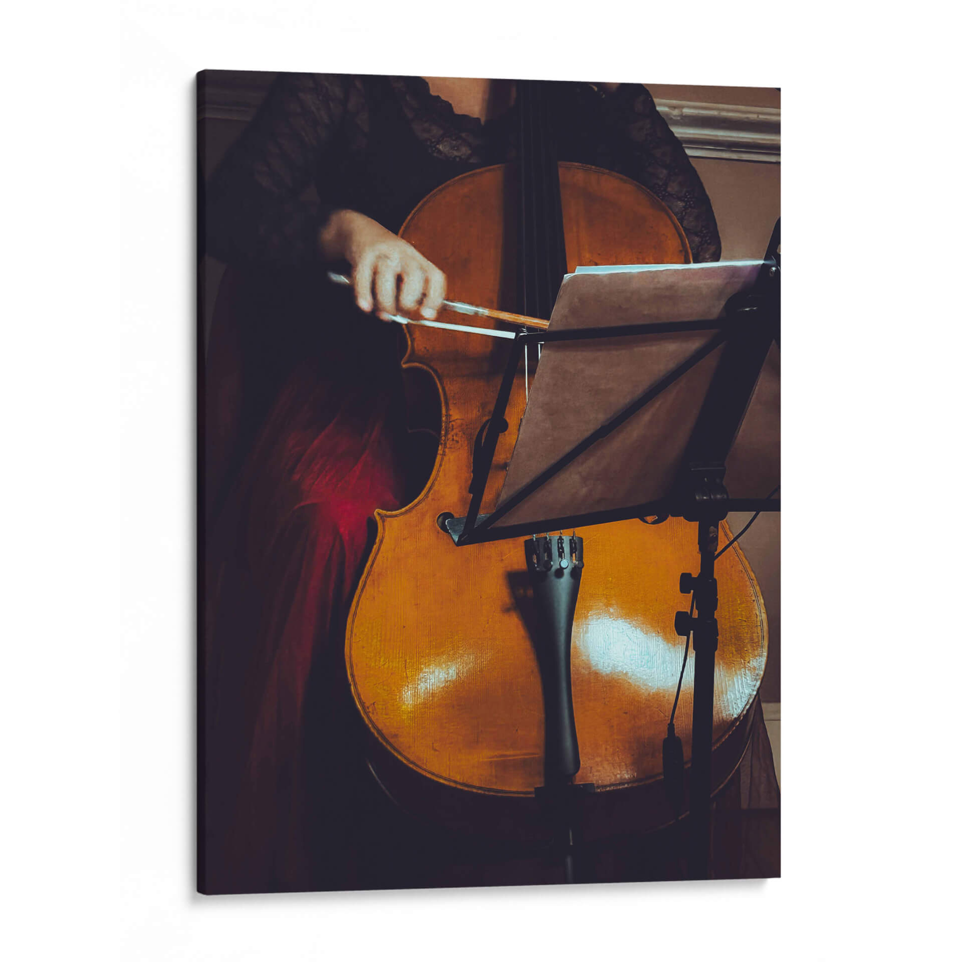 Sumérgete en la melodía visual de "Concierto en cello", una obra de arte que captura la esencia íntima de la música clásica. La pieza presenta un primer plano de un violonchelo, con el arco en movimiento sobre las cuerdas, creando una atmósfera de profunda concentración y pasión. Los tonos cálidos y dorados del instrumento contrastan sutilmente con el oscuro vestido de encaje de la intérprete y los vibrantes rojos de su falda, añadiendo una capa de sofisticación y misterio. La iluminación resalta las texturas y curvas del violonchelo, invitando al espectador a sentir la resonancia de cada nota. Este cuadro decorativo es perfecto para amantes de la música, salas de estar elegantes, estudios privados o cualquier espacio que busque un toque de refinamiento artístico y serenidad. "Concierto en cello" no es solo una imagen, es una invitación a experimentar la armonía y la emoción de la música a través de una composición visual cautivadora que aporta profundidad y carácter a tu decoración. Transforma tu hogar en una sala de conciertos privada, donde la belleza del arte y la música se entrelazan.