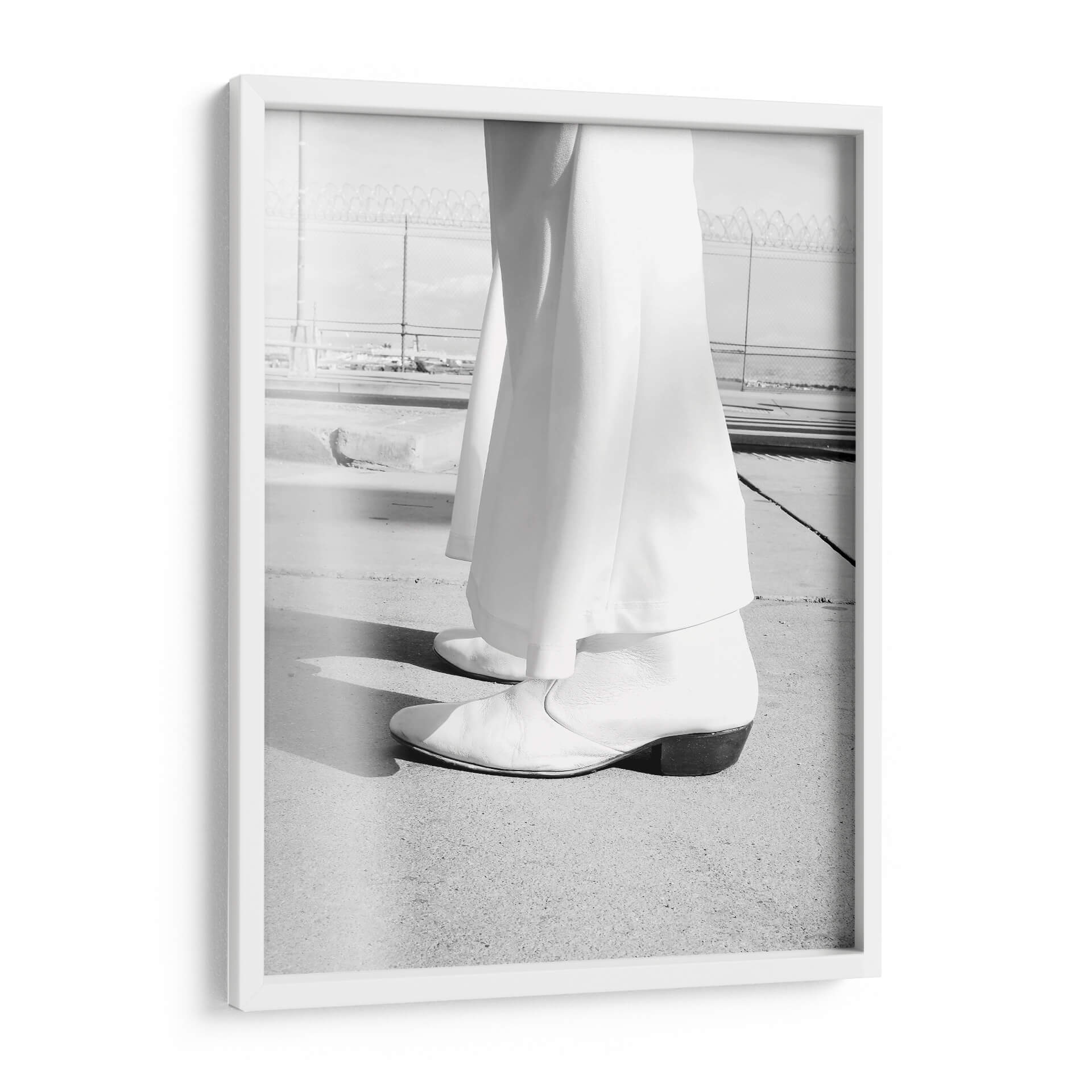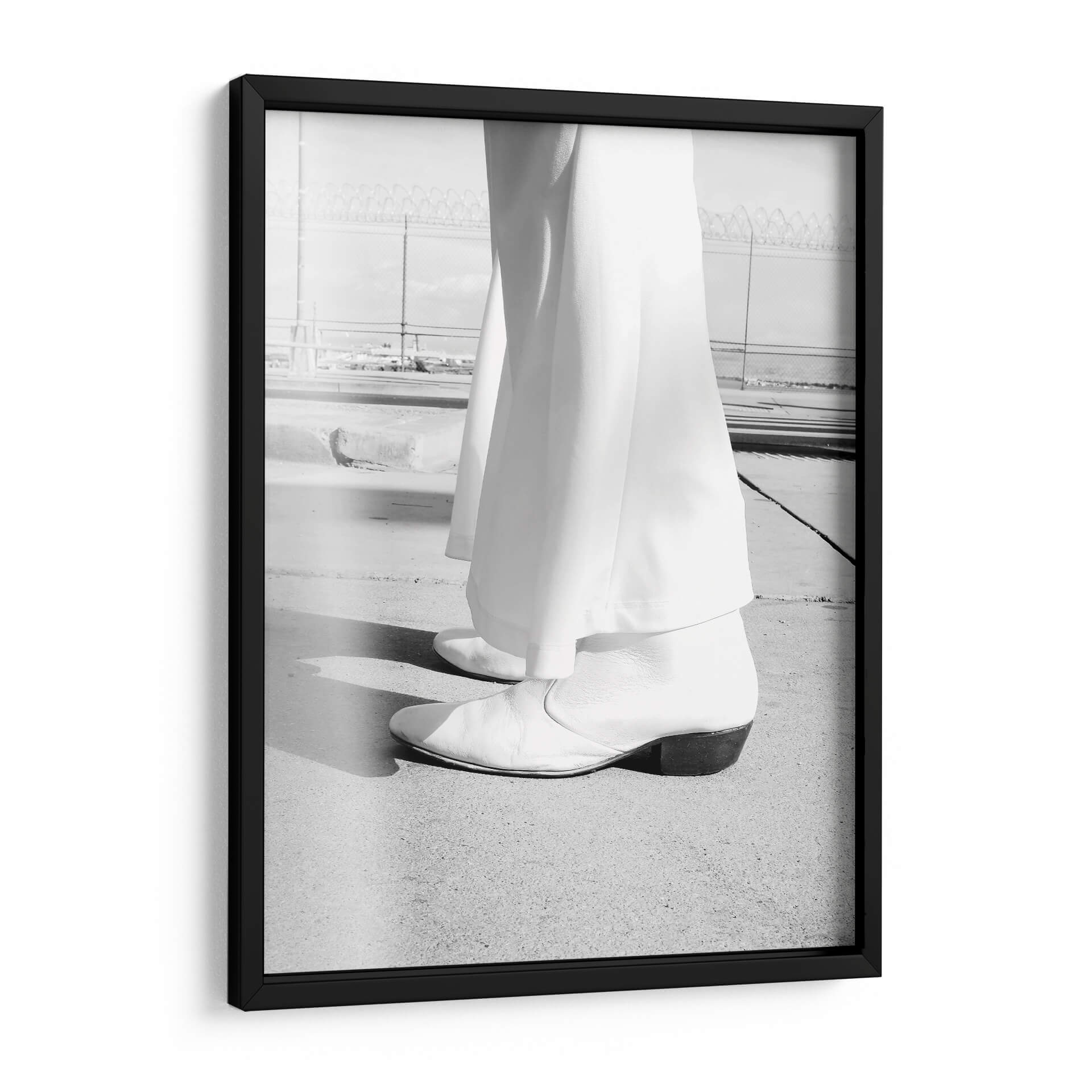 Sumérgete en la atmósfera única de "El Rey Las Vegas" by Fluidys Studio III, una obra de arte en blanco y negro que captura la esencia del estilo y la sofisticación. Esta pieza presenta un primer plano de un atuendo elegante, destacando la fluidez de los pantalones blancos anchos y el calzado distintivo, que evoca una sensación de misterio y opulencia asociada a la icónica ciudad de Las Vegas. La fotografía, con su estética monocromática, resalta las texturas, las sombras y las luces, creando un juego visual cautivador. El fondo, sutilmente desenfocado, sugiere un entorno urbano o quizás un aeropuerto, añadiendo una capa de intriga a la narrativa. "El Rey Las Vegas" es ideal para espacios que buscan un toque de glamour moderno y audacia. Su composición minimalista y su fuerte impacto visual lo convierten en un punto focal perfecto para salas de estar, estudios o incluso entornos comerciales que deseen transmitir una imagen de vanguardia y refinamiento. Añade un aire de enigmático lujo a tu decoración con este cuadro decorativo excepcional, una pieza que invita a la contemplación y al ensueño.