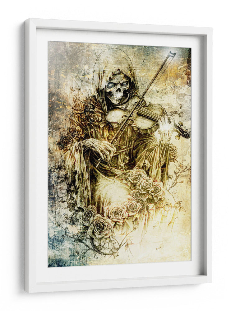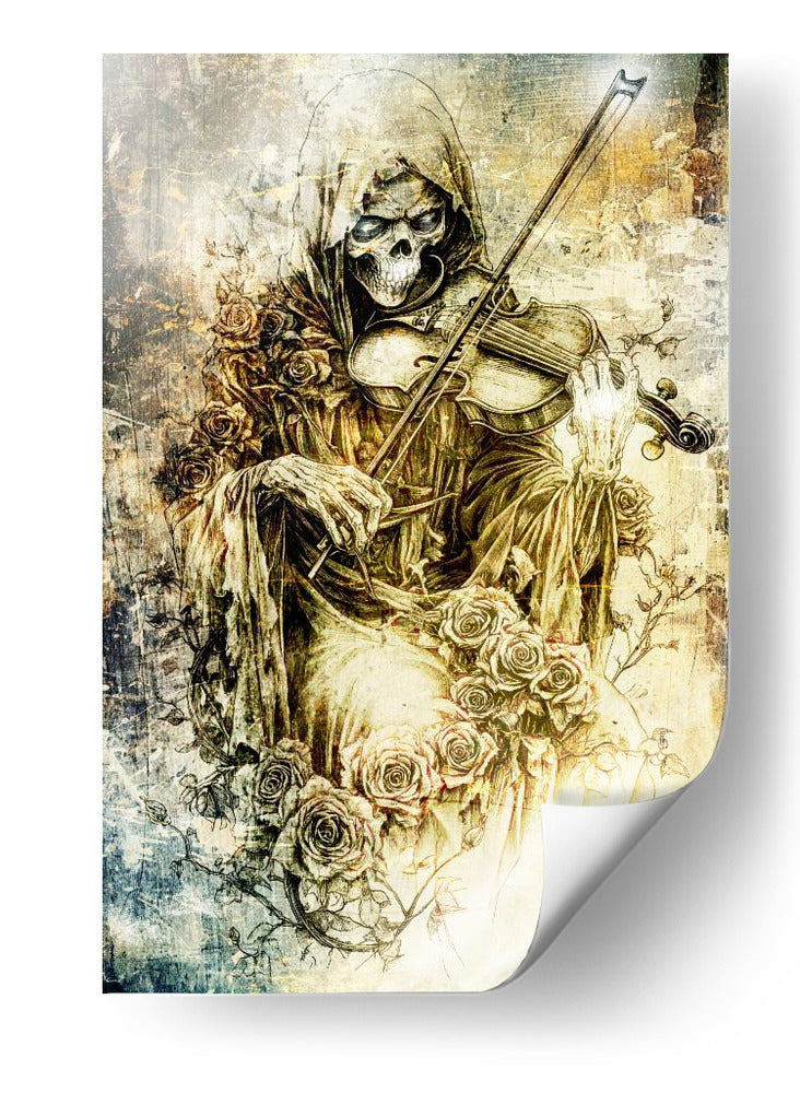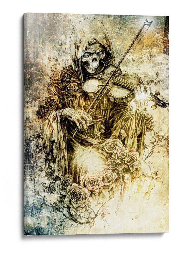 Sumérgete en la enigmática obra maestra 'Ilustración de dibujo de calavera divertida 42' del artista Rafal Kulik. Esta cautivadora pieza presenta una representación artística de la muerte tocando el violín, rodeada de una exuberante profusión de rosas detalladas. La paleta de colores, dominada por tonos terrosos, ocres y toques de azul deslavado en el fondo texturizado, crea una atmósfera melancólica y a la vez fascinante. El estilo, que combina elementos de dibujo a lápiz con una estética desgastada y casi gótica, evoca una profunda reflexión sobre la vida, la muerte y la belleza efímera de la existencia. La figura central, una calavera con detalles sombríos y ojos brillantes, contrasta con la delicadeza de las flores, generando una tensión visual intrigante. Este cuadro decorativo es perfecto para aquellos que buscan añadir un toque de misterio y sofisticación a sus espacios, ya sea una sala de estar moderna, un estudio personal o una oficina con carácter. La composición detallada y la narrativa implícita invitan a la contemplación, convirtiendo esta obra en un punto focal que sin duda generará conversación. Descubre la dualidad entre lo macabro y lo bello, una pieza que trasciende lo ordinario para adornar tu hogar con arte que inspira y perdura.