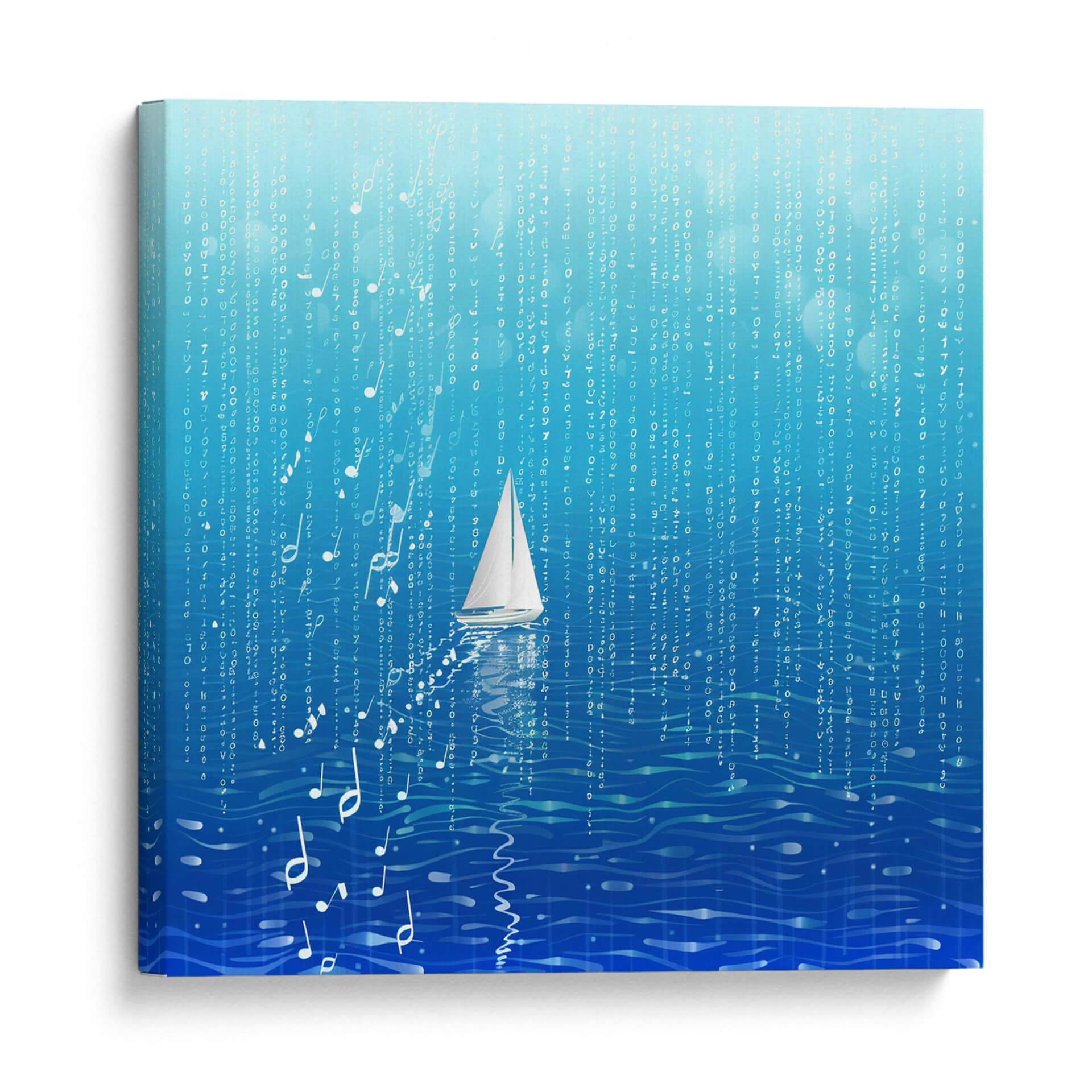 odesubliminal. El cuadro decorativo presenta un velero solitario navegando sobre aguas tranquilas, rodeado por una cascada de c