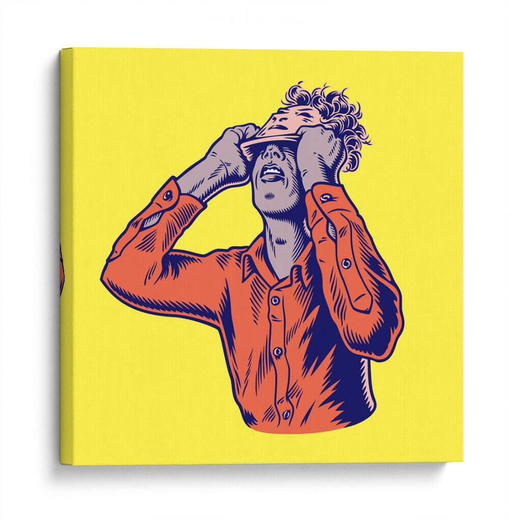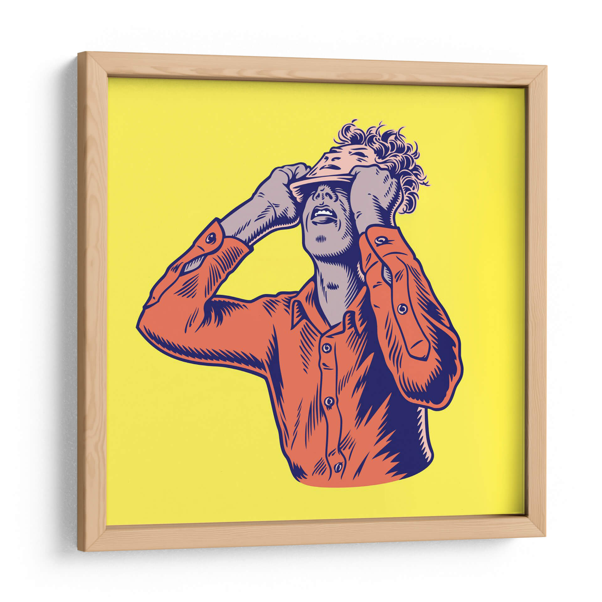 Sumérgete en la intrigante obra de arte titulada "Moderat mask yellow", una pieza visualmente impactante que desafía las percepciones y explora la dualidad de la identidad. Esta obra destaca por su audaz paleta de colores, dominada por un vibrante amarillo de fondo que contrasta poderosamente con las figuras en tonos anaranjados y azul oscuro. La composición central presenta a una figura humana retirándose una máscara, revelando una expresión de intenso esfuerzo o descubrimiento. El estilo gráfico y las líneas marcadas confieren a la pieza una energía contemporánea y una sensación de movimiento palpable. "Moderat mask yellow" es más que una simple imagen; es una invitación a la reflexión sobre las fachadas que presentamos al mundo y las capas que componen nuestro ser. Su atmósfera es enigmática, generando curiosidad y diálogo. Este cuadro decorativo es ideal para espacios que buscan un toque de originalidad y profundidad, como una sala de estar moderna, un estudio creativo o una oficina que aspire a inspirar conversaciones. Su fuerte presencia visual la convierte en un punto focal ineludible, capaz de transformar cualquier ambiente en un lugar cargado de significado y carácter artístico. Añade esta pieza única a tu colección y deja que su narrativa visual impulse la personalidad de tu hogar u oficina.