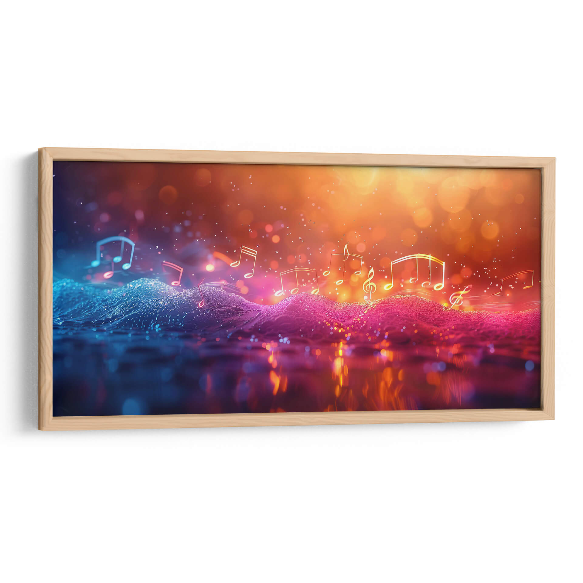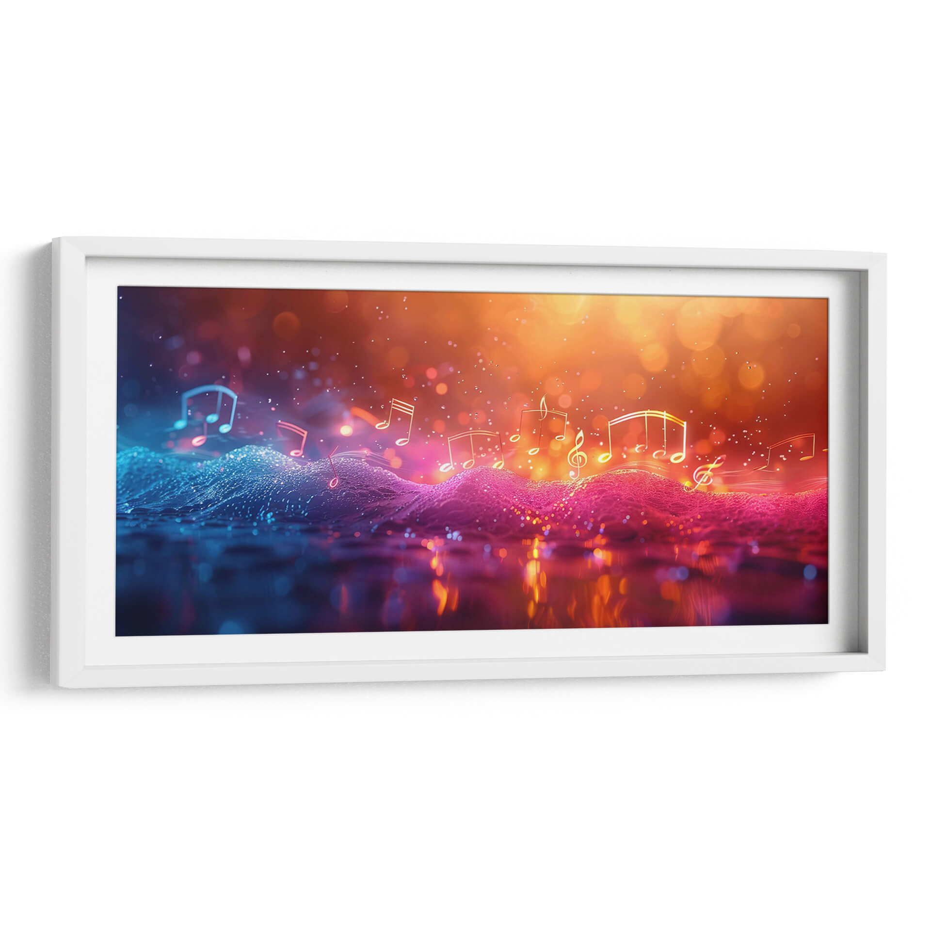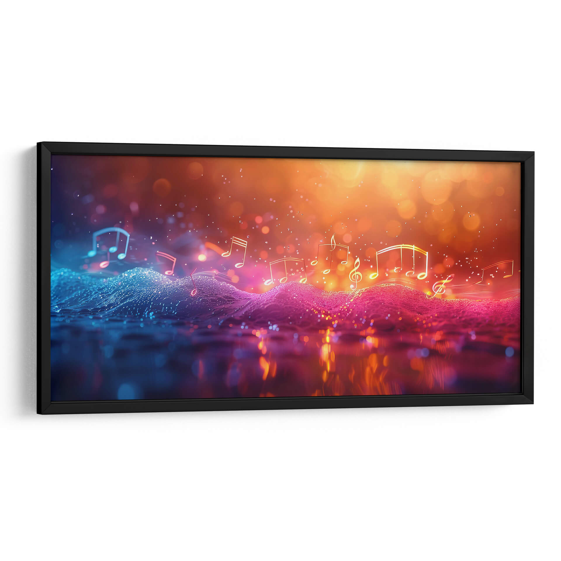 Sumérgete en la vibrante melodía visual de "Música Burbujeante", una obra de arte contemporáneo que captura la esencia etérea de la música a través de un espectáculo de luces y colores. Este cuadro decorativo abstracto presenta una composición dinámica donde las notas musicales flotan sobre un paisaje ondulado de texturas digitales, bañado en una paleta de colores que transita del azul eléctrico y vibrante al cálido y resplandeciente naranja y dorado. Las luces bokeh y los destellos crean una atmósfera mágica y enérgica, evocando la sensación de una melodía que cobra vida. Ideal para salones modernos, estudios de música o cualquier espacio que busque un toque de sofisticación y dinamismo, "Música Burbujeante" es más que una pieza decorativa; es una experiencia sensorial que invita a la contemplación y al disfrute. Su estilo digital y abstracto la convierte en un punto focal cautivador, perfecto para inspirar creatividad y alegría en tu hogar u oficina. Descubre la sinfonía visual que Cecilia Flores ha creado para transformar tus ambientes.