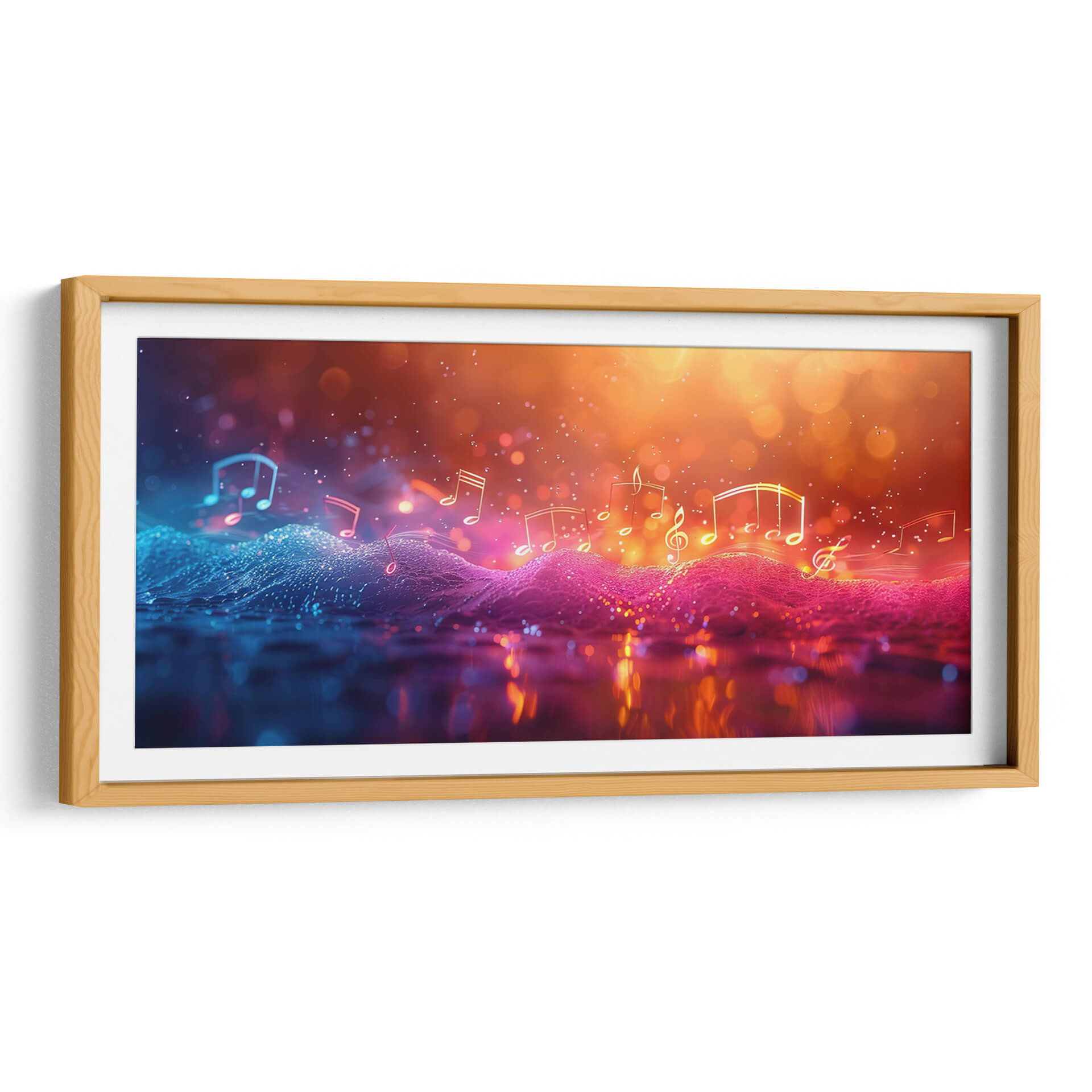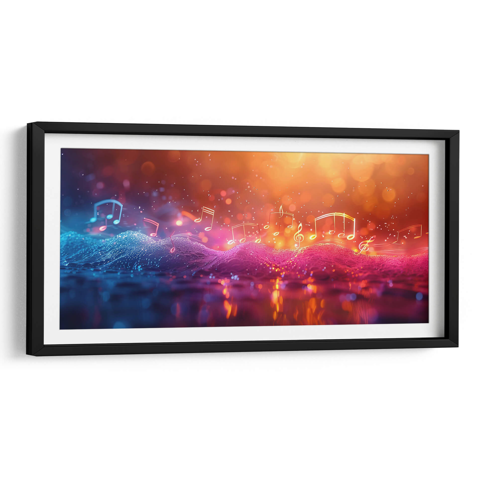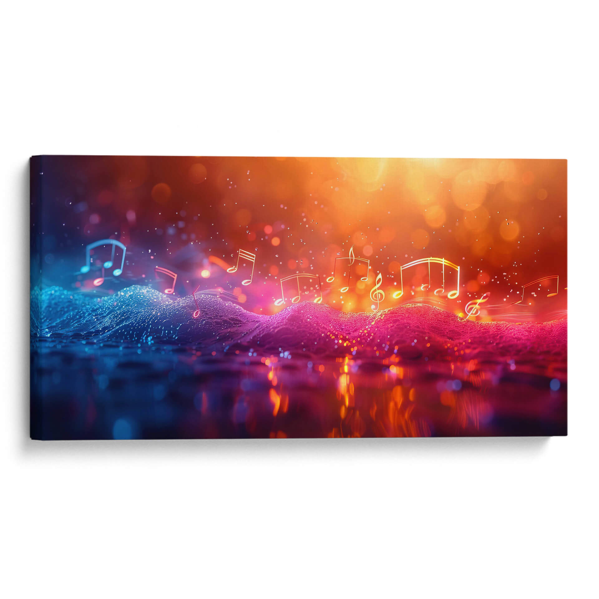 Sumérgete en la vibrante melodía visual de "Música Burbujeante", una obra de arte contemporáneo que captura la esencia etérea de la música a través de un espectáculo de luces y colores. Este cuadro decorativo abstracto presenta una composición dinámica donde las notas musicales flotan sobre un paisaje ondulado de texturas digitales, bañado en una paleta de colores que transita del azul eléctrico y vibrante al cálido y resplandeciente naranja y dorado. Las luces bokeh y los destellos crean una atmósfera mágica y enérgica, evocando la sensación de una melodía que cobra vida. Ideal para salones modernos, estudios de música o cualquier espacio que busque un toque de sofisticación y dinamismo, "Música Burbujeante" es más que una pieza decorativa; es una experiencia sensorial que invita a la contemplación y al disfrute. Su estilo digital y abstracto la convierte en un punto focal cautivador, perfecto para inspirar creatividad y alegría en tu hogar u oficina. Descubre la sinfonía visual que Cecilia Flores ha creado para transformar tus ambientes.