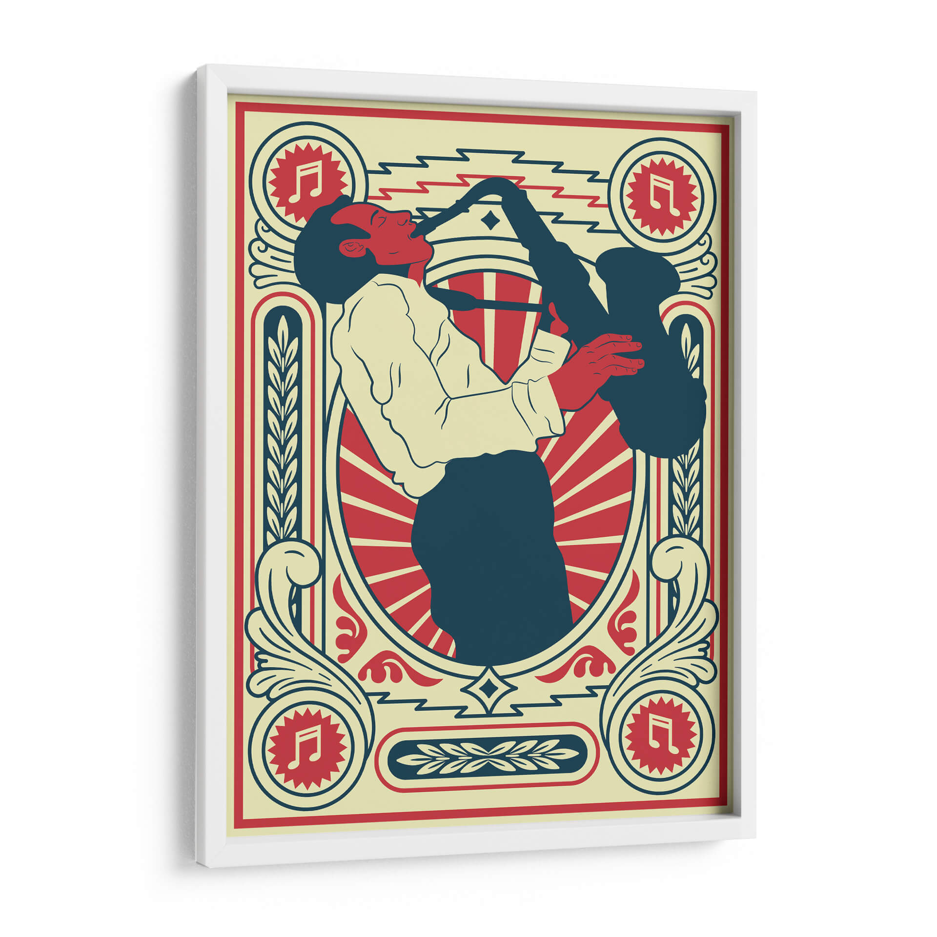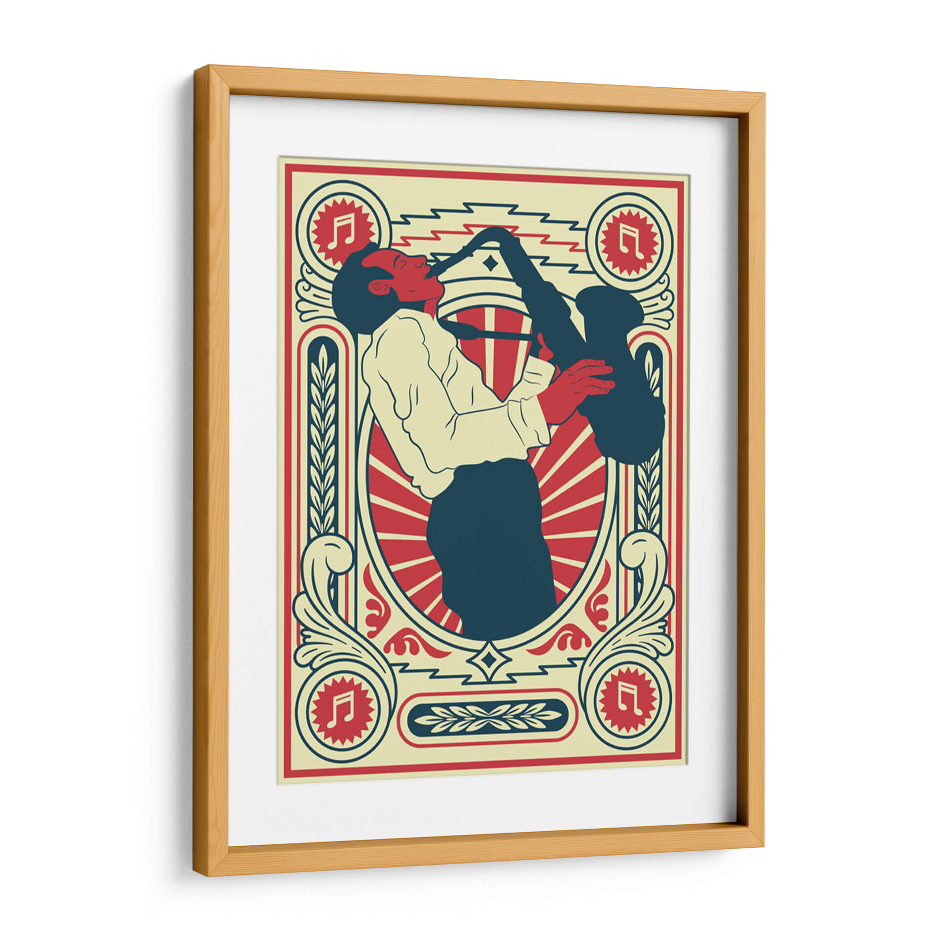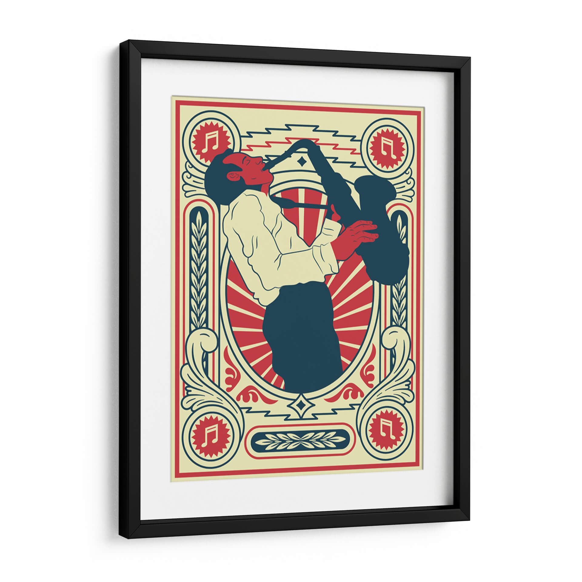 Sumérgete en el vibrante mundo del jazz con "Música Jazz" de Najesi, una obra de arte que captura la pasión y el alma de este género musical. La pieza presenta a un saxofonista en plena interpretación, con su rostro inclinado hacia el instrumento y una expresión de profunda concentración. La paleta de colores, dominada por tonos crema, azul marino y rojo intenso, crea un contraste audaz y una atmósfera retro, evocando la época dorada del jazz. El estilo gráfico, con contornos definidos y formas estilizadas, le otorga una energía visual única. Los intrincados detalles decorativos, como los símbolos musicales y los elementos ornamentales en los bordes, añaden un toque de sofisticación y un aire vintage. "Música Jazz" es ideal para cualquier espacio que busque un punto focal lleno de ritmo y carácter, como una sala de estar, un estudio musical o una oficina con un toque de estilo. Esta obra no solo decora, sino que también transmite una sensación de movimiento, emoción y la inconfundible melodía del jazz, convirtiéndose en una pieza central que inspira y cautiva a todos los que la contemplan. Añade un toque de sofisticación y pasión musical a tu hogar con este impresionante lienzo.
