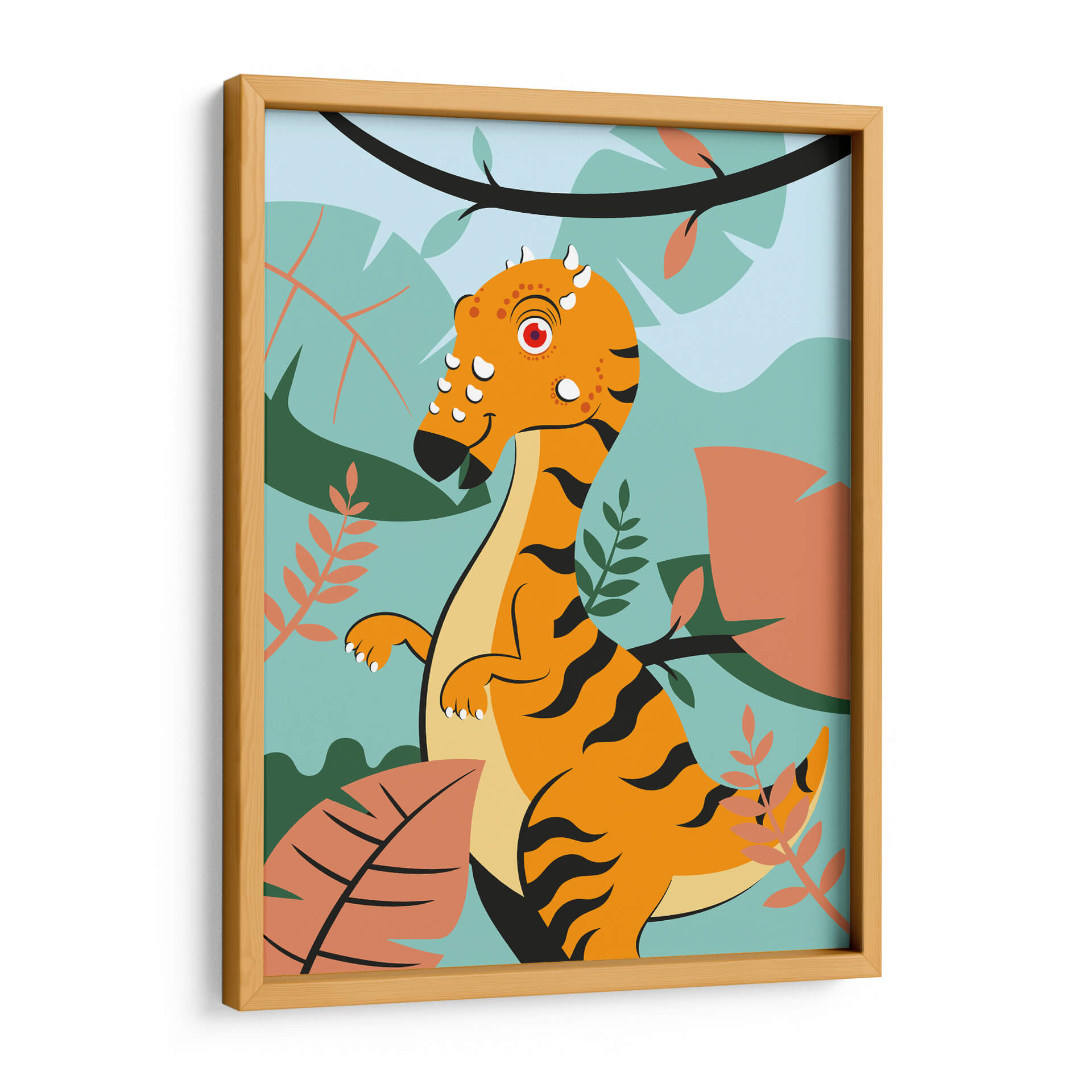 Sumérgete en un mundo de fantasía y color con "HOLA, NIÑO", DICE EL PACHYCEPHALOSAURUS", una obra vibrante del artista Najesi. Esta pieza captura la esencia de la prehistoria con un toque moderno y juguetón, presentando a un adorable dinosaurio rodeado de exuberante vegetación en tonos teal y ocre. La paleta de colores, dominada por el naranja brillante del Pachycephalosaurus con sus distintivas rayas negras, contrasta maravillosamente con el fondo sereno de azules celestes y verdes selváticos. El estilo gráfico y simplificado, con líneas limpias y formas audaces, confiere a la obra una energía contemporánea, haciéndola perfecta para espacios que buscan un toque de alegría y personalidad. La composición, centrada en la amigable figura del dinosaurio, crea un punto focal encantador, ideal para habitaciones infantiles, salas de juegos o cualquier rincón que necesite un estallido de vida y optimismo. Este lienzo no solo decora, sino que también evoca sensaciones de aventura y asombro, transportando al espectador a un paraíso jurásico lleno de imaginación. Añade un toque de carácter único a tu hogar u oficina con esta cautivadora pieza que celebra la naturaleza y la fantasía con un estilo inconfundible.