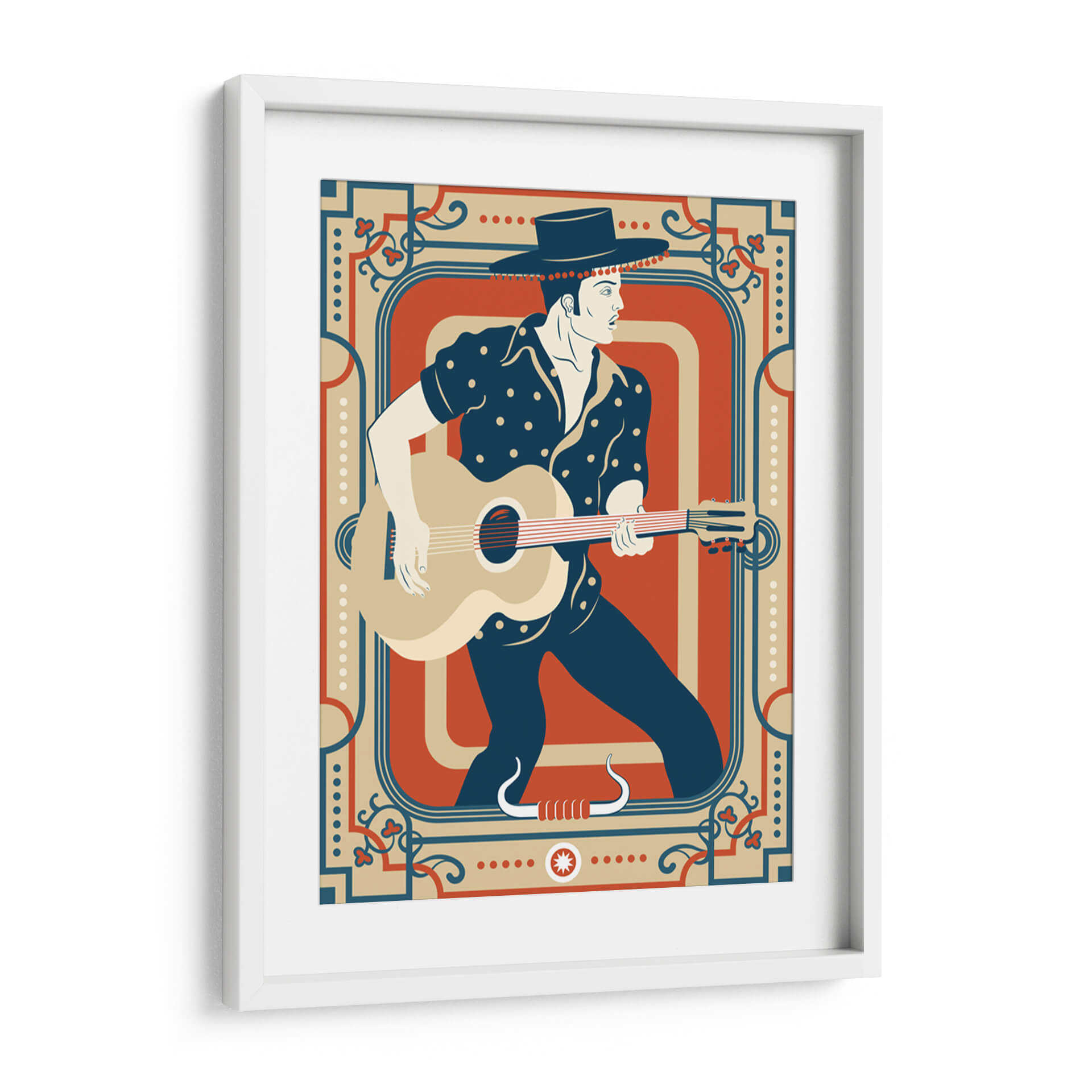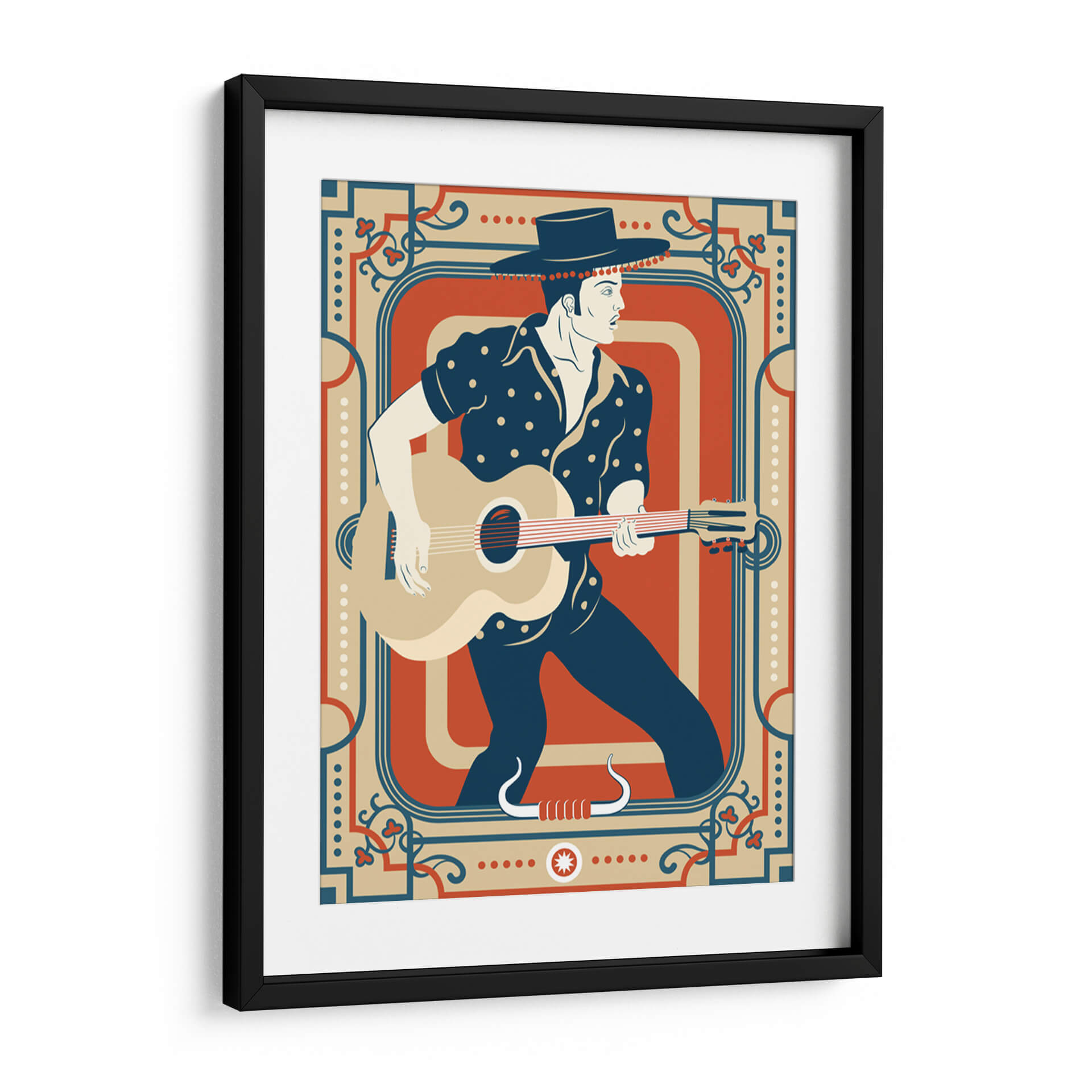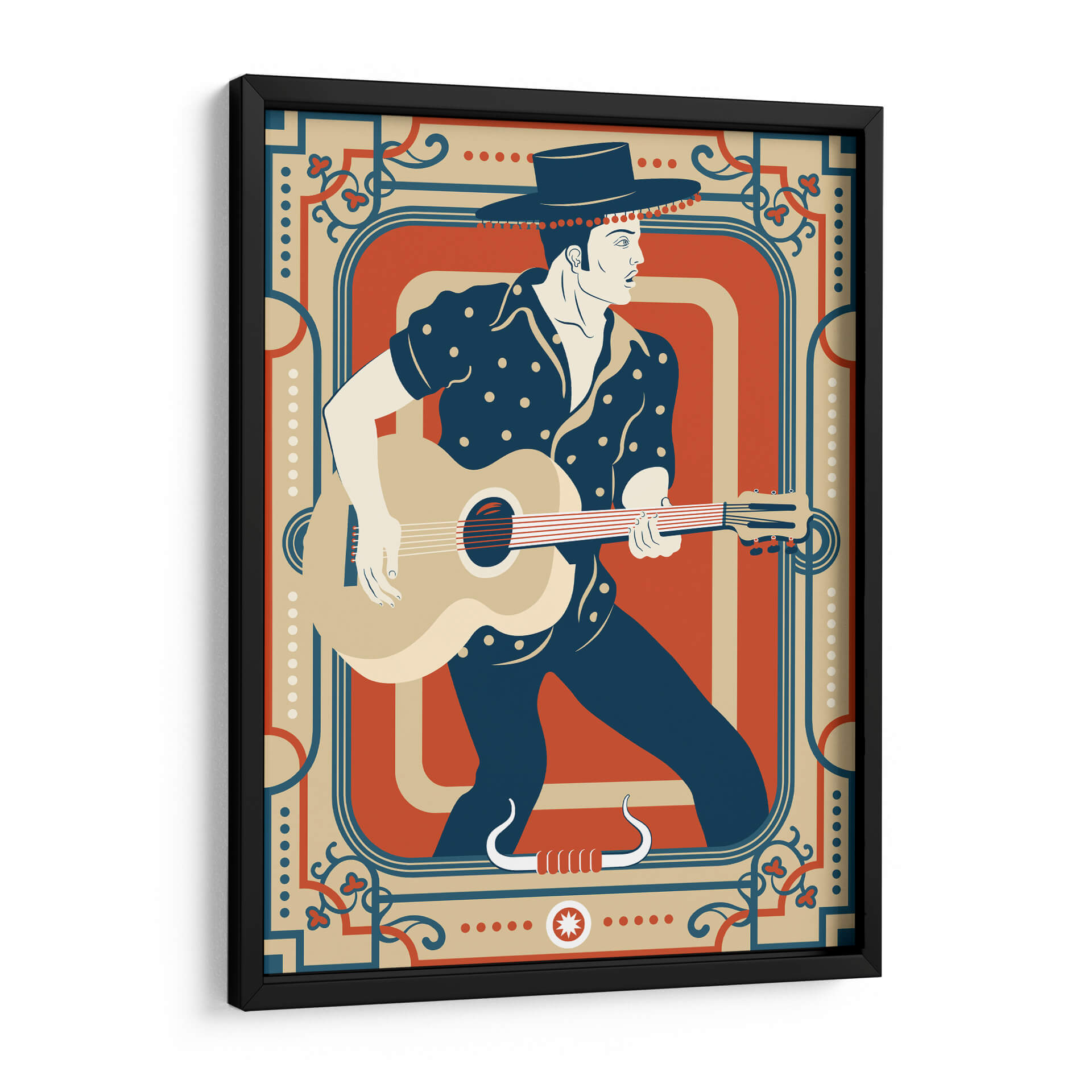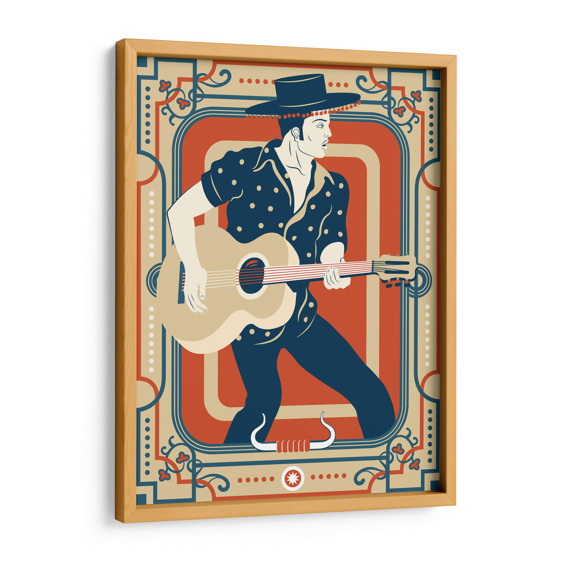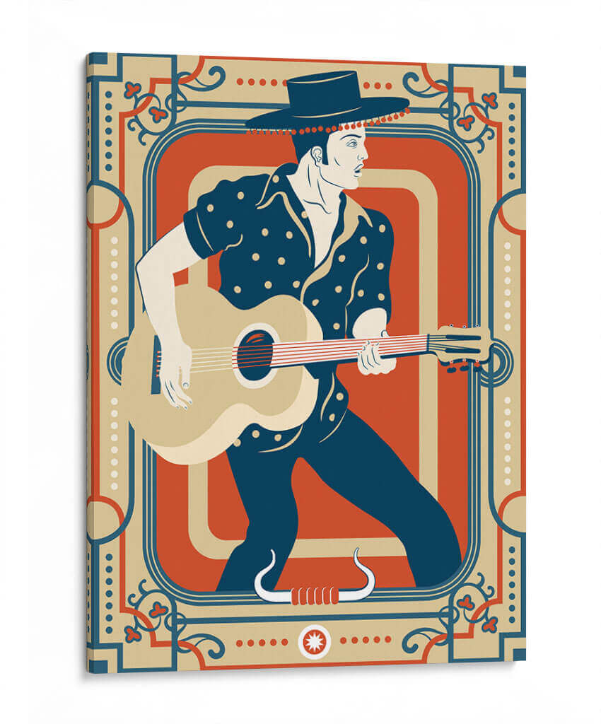 Sumérgete en la vibrante esencia de la música española con "Música Flamenco", una obra de arte cautivadora del artista Najesi. Esta pieza evoca la pasión y el ritmo del flamenco a través de una composición estilizada y una paleta de colores audaz. Un guitarrista, figura central, es representado con energía y movimiento, con su instrumento de cuerdas como protagonista, mientras que el sombrero y la vestimenta añaden un toque distintivo a la escena. Los tonos cálidos y terrosos, combinados con el azul profundo y acentos rojos, crean una atmósfera envolvente que resuena con la tradición y la modernidad. El diseño se enmarca en un borde decorativo con motivos florales y geométricos, añadiendo profundidad y carácter. Ideal para espacios que buscan infundir carácter y sofisticación, como salas de estar, estudios musicales o cualquier rincón donde se aprecie el arte con alma y sentimiento. "Música Flamenco" no es solo una decoración, es una expresión artística que invita a sentir la música.