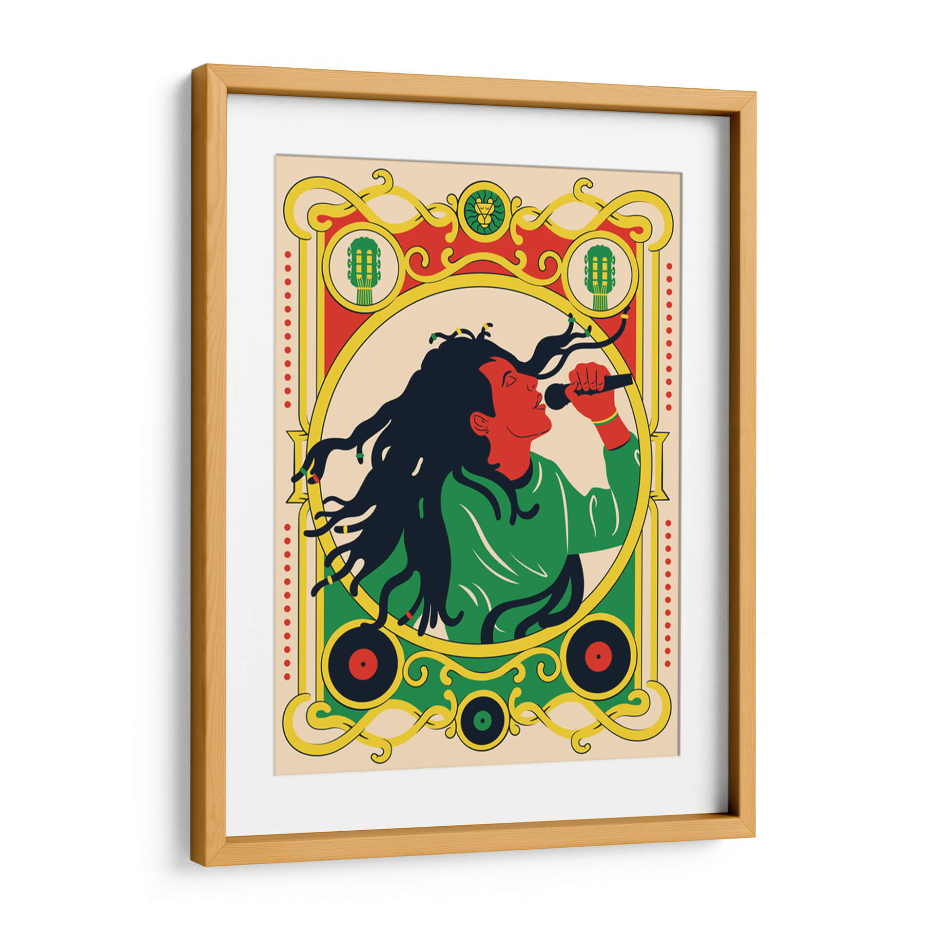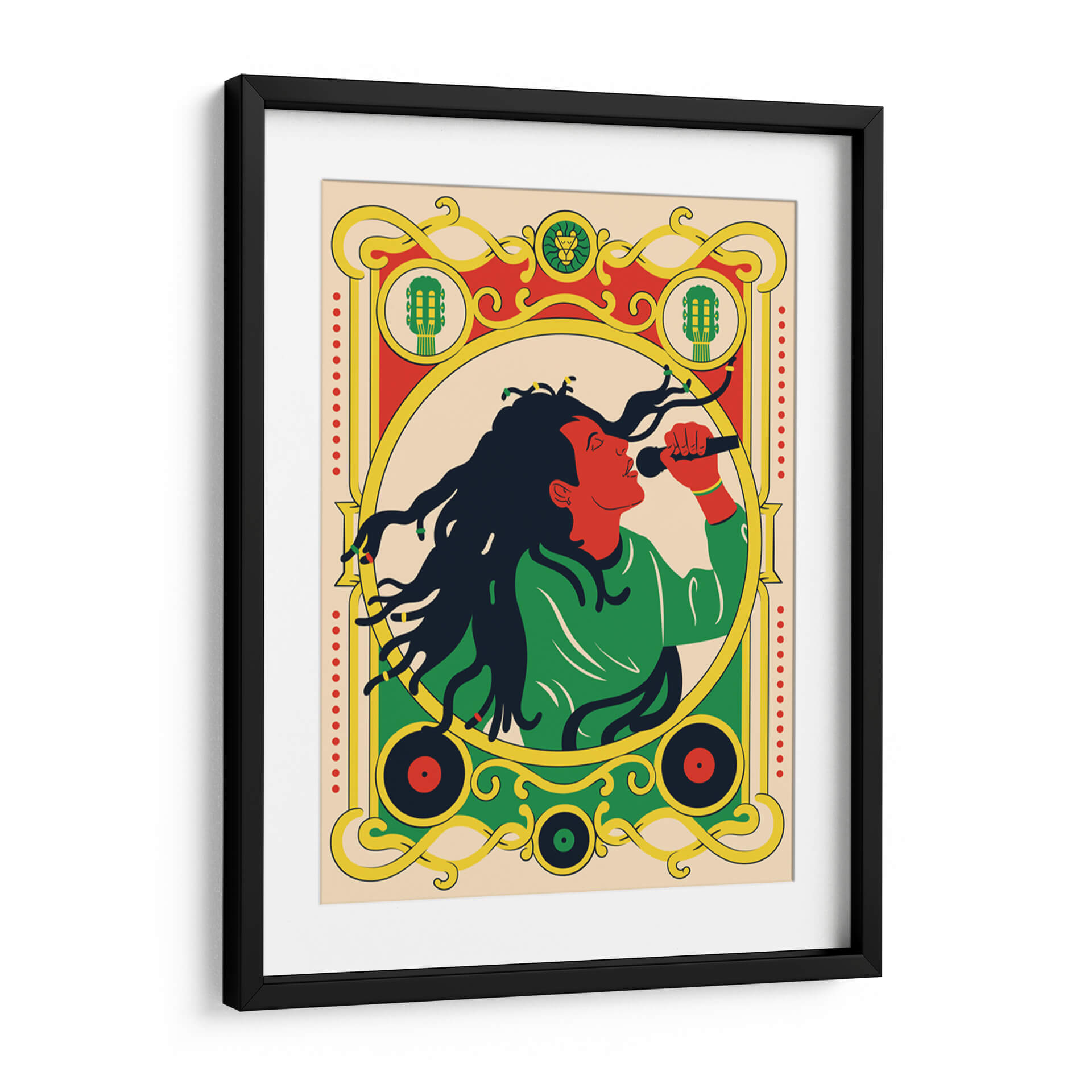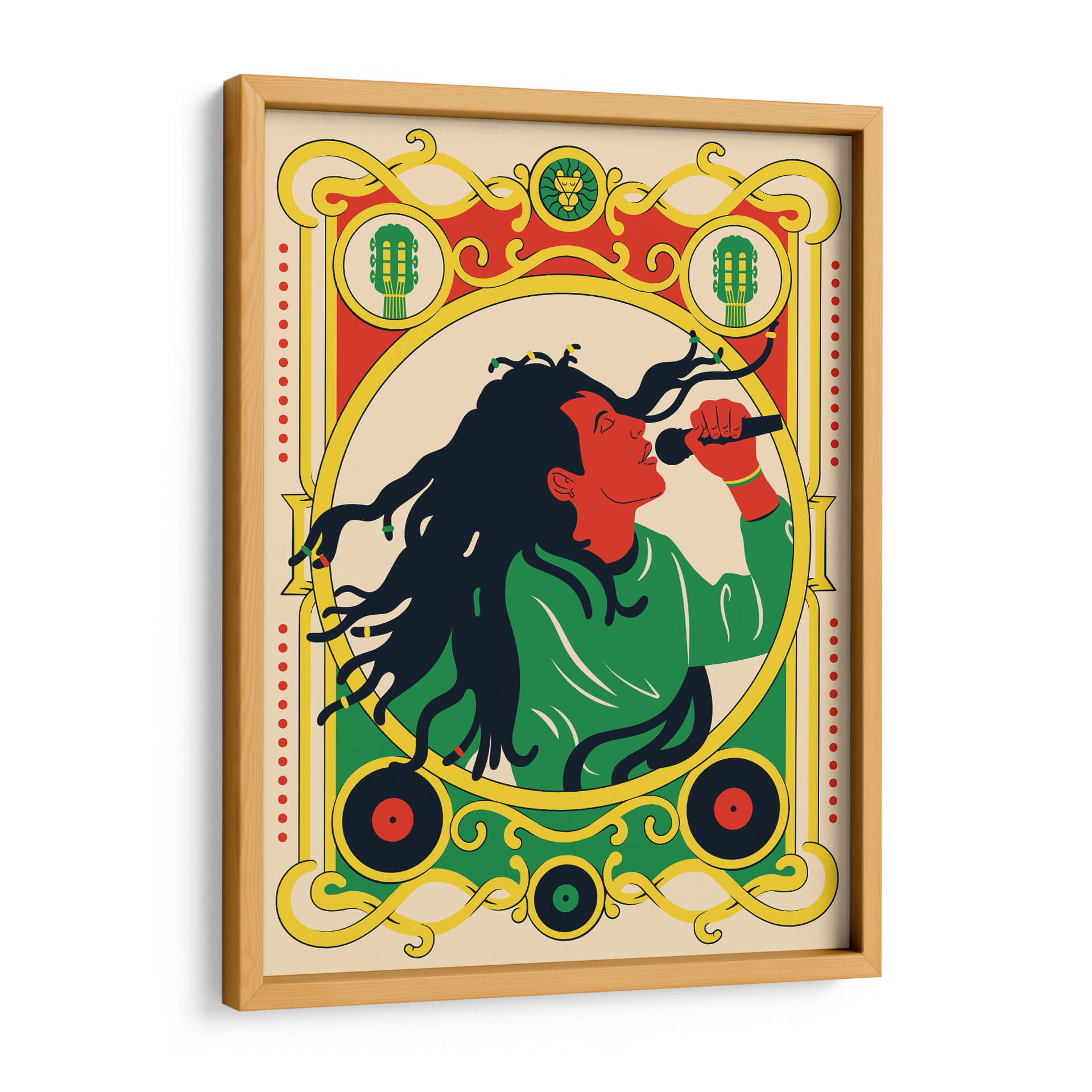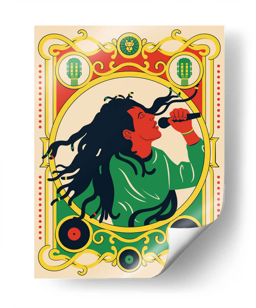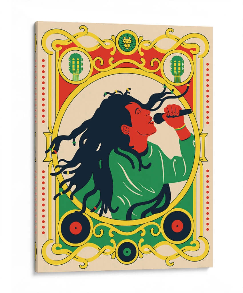Sumérgete en el vibrante mundo de la música reggae con esta cautivadora obra de arte del artista Najesi. La pieza, titulada "Música reggae", captura la esencia de un icónico cantante con rastas, transmitiendo energía y pasión a través de una paleta de colores audaz y una composición estilizada. Los tonos rojos, verdes y amarillos dominantes crean una atmósfera cálida y enérgica, evocando el espíritu alegre y unitivo del reggae. Los detalles ornamentales dorados y los símbolos como guitarras y vinilos refuerzan la temática musical, haciendo de esta pieza un homenaje visual a la cultura reggae. El estilo gráfico y plano, con líneas definidas, le otorga un carácter moderno y distintivo, ideal para convertirse en el punto focal de cualquier espacio. Imagina esta obra adornando tu sala de estar, llenándola de ritmo y color, o aportando un toque de inspiración y positividad a tu oficina. Es perfecta para amantes de la música, fans del reggae o cualquiera que busque una pieza de arte única y llena de personalidad para transformar su hogar o lugar de trabajo. Deja que la música de Najesi resuene en tus paredes.