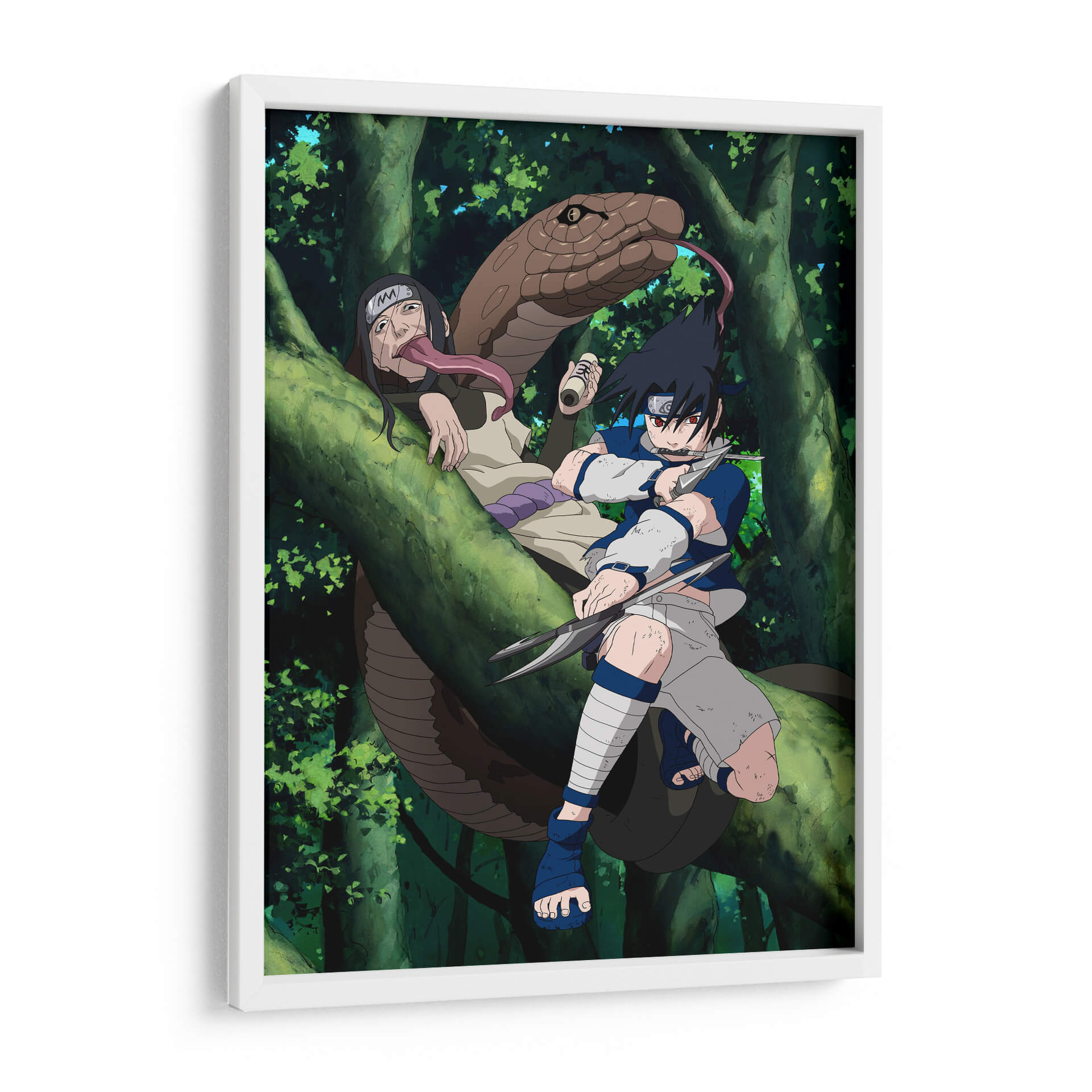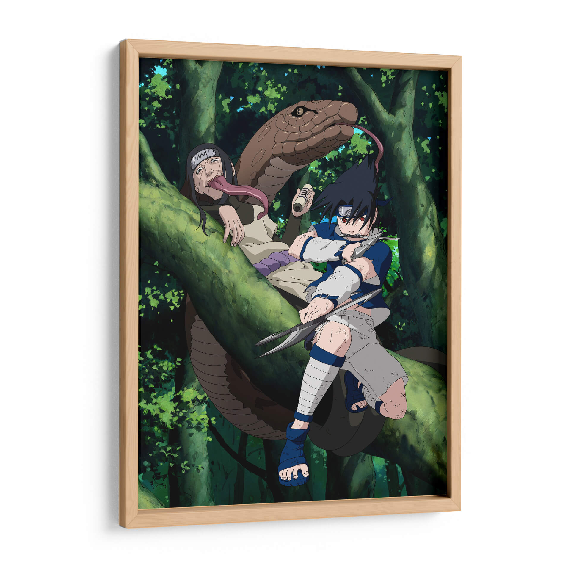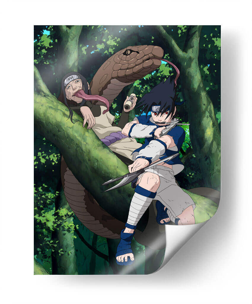 Sumérgete en la intensidad de la acción con este cautivador cuadro decorativo, inspirado en escenas dinámicas de anime. La obra presenta a dos figuras humanas en medio de una batalla, envueltas por la amenazante presencia de una serpiente gigante. La composición se desarrolla en un entorno boscoso, con árboles frondosos que crean un telón de fondo vibrante y detallado. Los colores predominantes son los verdes profundos de la naturaleza, contrastando con los tonos tierra de la serpiente y los atuendos de los personajes. La paleta se complementa con toques de azul en la vestimenta de uno de los protagonistas, y el contraste de piel en las figuras aporta realismo a la escena. El estilo artístico, claramente influenciado por la animación japonesa, captura la energía y el movimiento, transmitiendo una atmósfera de suspense y poder. Este cuadro decorativo es ideal para los amantes del manga y el anime, aportando un toque de dramatismo y aventura a cualquier sala de estar, estudio u oficina, convirtiéndose en un punto focal que evoca emociones de acción y determinación.
