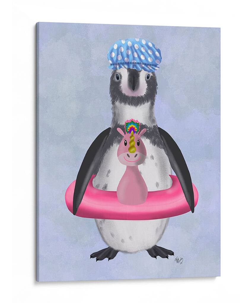 Transforma tu espacio con este encantador cuadro decorativo que presenta un pingüino con un gorro de baño de lunares azules y un flotador rosa, sosteniendo un adorable unicornio rosado. La obra, titulada 'Anillo De Goma De Pingüino Unicornio' por el artista Fab Funky, combina elementos lúdicos y fantásticos en una composición cautivadora. Los colores suaves y el fondo azul claro crean una atmósfera de tranquilidad y diversión, perfecta para añadir un toque de alegría a cualquier habitación. Este cuadro es ideal para cuartos infantiles, salas de estar modernas o cualquier espacio que necesite un acento de originalidad y fantasía. La calidad de la ilustración digital y el estilo único del artista hacen de esta pieza una adición memorable a tu decoración. Descubre cómo este pingüino unicornio puede infundir calidez y sonrisas en tu hogar.