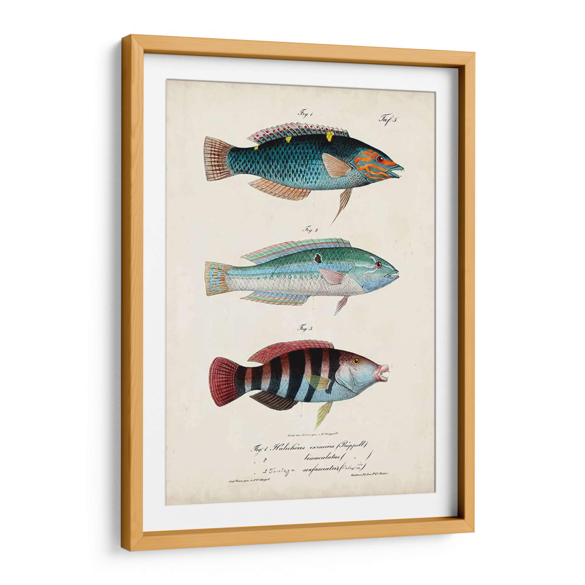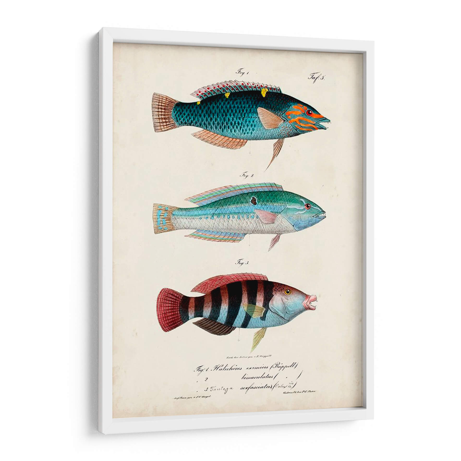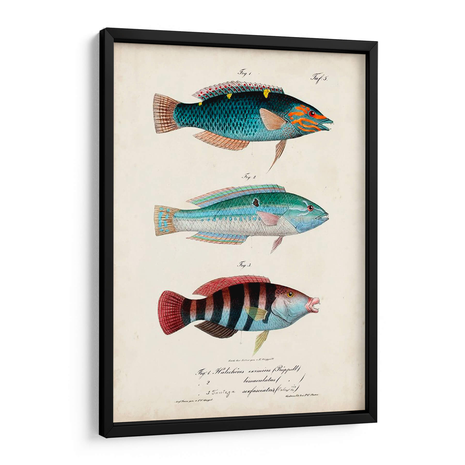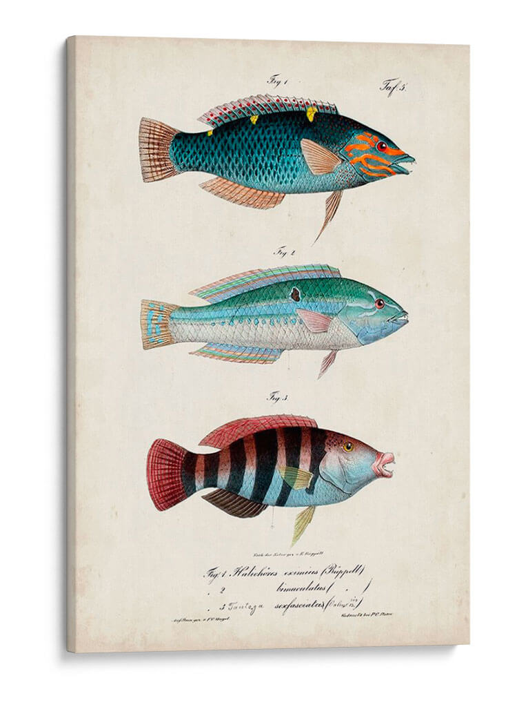 Embellece tu hogar u oficina con "Antiguo Fish Trio III", una obra de arte evocadora de Vision Studio. Este cuadro decorativo presenta una detallada ilustración de tres especímenes de peces, cada uno representado con una precisión que evoca los antiguos textos de historia natural. La paleta de colores, dominada por tonos azules, verdes, rojos y toques anaranjados, aporta una vibrante pero serena energía a cualquier espacio. La composición, organizada en una disposición vertical clásica, permite que cada pez sea admirado individualmente, mientras que el fondo de estilo pergamino añade un toque de autenticidad y un aire vintage. Ideal para amantes de la naturaleza, la vida marina o aquellos que buscan un toque de sofisticación y conocimiento científico en su decoración. Este cuadro decorativo es perfecto para añadir carácter a salas de estar, estudios, o incluso como una pieza central en un comedor temático. Sumérgete en la belleza del mundo submarino con esta pieza única que combina arte, ciencia y estilo.