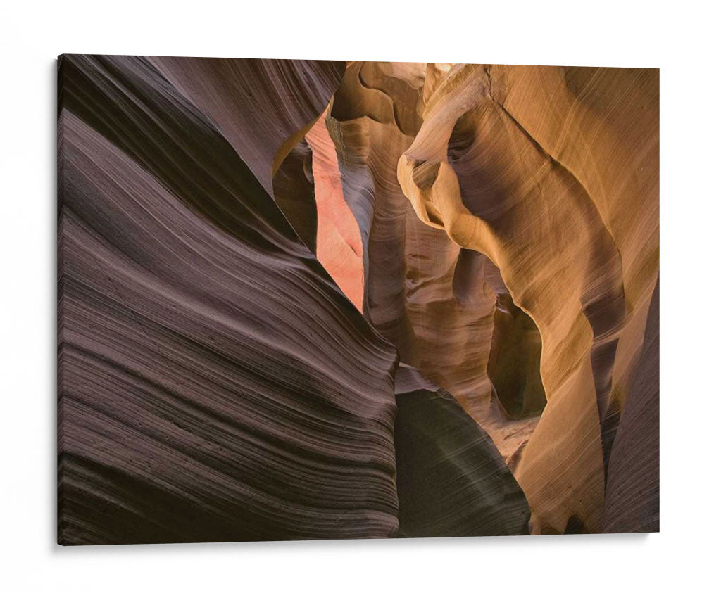 Sumérgete en la majestuosidad natural con "Antílope Canyon II", una obra de arte que captura la esencia etérea de las formaciones rocosas esculpidas por el tiempo. Este cuadro decorativo te transporta a las profundidades de un cañón, donde la luz juega con las texturas y los colores creando un espectáculo visual inolvidable. Las suaves curvas y las líneas fluidas de las paredes del cañón se entrelazan, evocando una sensación de movimiento y dinamismo a pesar de la aparente quietud geológica. La paleta de colores transita desde tonos tierra cálidos, ocres y dorados, hasta sutiles toques de rosa y púrpuras profundos, añadiendo profundidad y misterio a la composición. La iluminación resalta las capas y las formas orgánicas, creando un juego de luces y sombras que añade un dramatismo cautivador. Este cuadro es ideal para añadir un toque de serenidad y asombro a tu salón, dormitorio o estudio, fusionando la belleza del mundo natural con el arte contemporáneo. Es una pieza que invita a la contemplación y añade un elemento de la grandeza de la naturaleza a cualquier espacio interior, convirtiéndose en un punto focal que inspira calma y admiración.