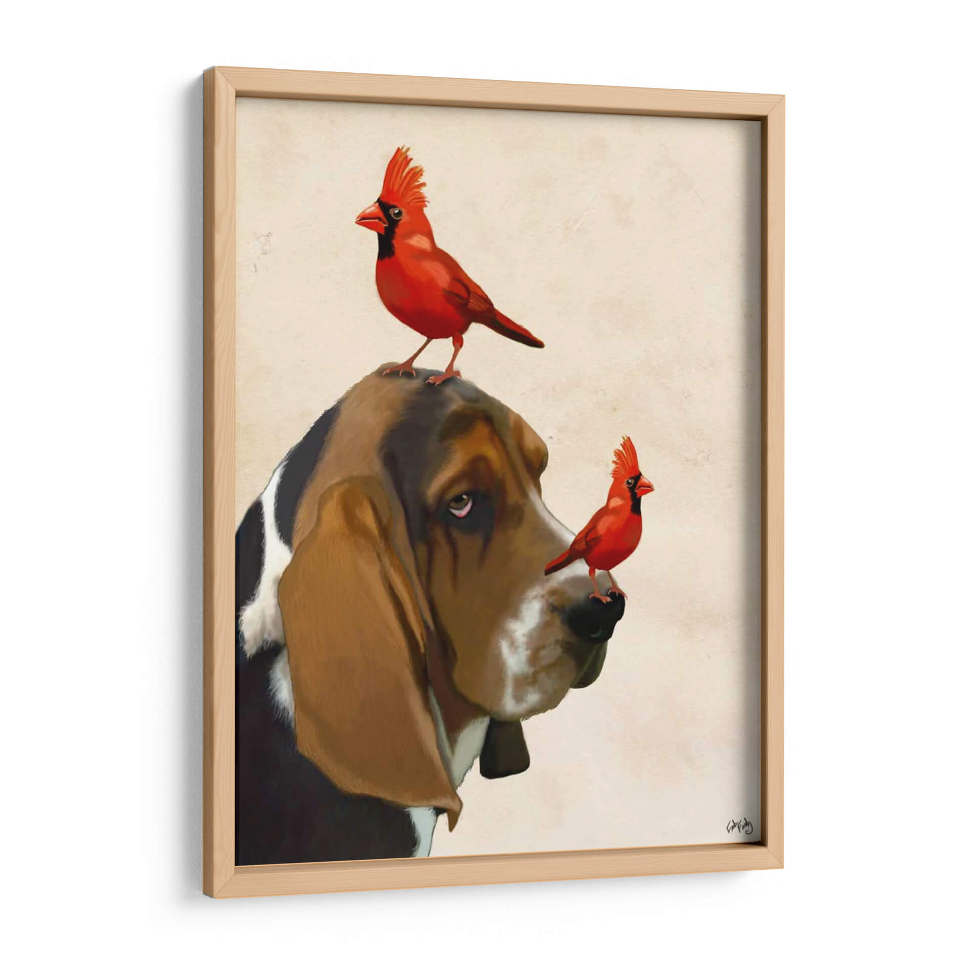 Embellece tu espacio con el encantador cuadro decorativo 'Basset Hound And Birds' del artista Fab Funky. Esta obra captura un momento tierno y juguetón entre un Basset Hound y dos cardenales vibrantes. Los colores cálidos y la composición detallada crean una atmósfera acogedora y llena de personalidad, perfecta para añadir un toque de calidez y originalidad a cualquier habitación. El Basset Hound, con su expresión melancólica pero amigable, contrasta maravillosamente con los alegres cardenales que se posan con delicadeza sobre él. El fondo neutro y texturizado realza la belleza de los sujetos principales, asegurando que esta pieza se convierta en un punto focal en tu decoración. Ideal para amantes de los perros, la naturaleza y el arte contemporáneo, este cuadro es una elección excepcional para salones, dormitorios u oficinas, aportando un aire de serenidad y un toque de humor sutil. Su estilo único y su ejecución magistral lo convierten en una adición memorable a tu colección de arte de pared, invitando a la conversación y a la admiración.