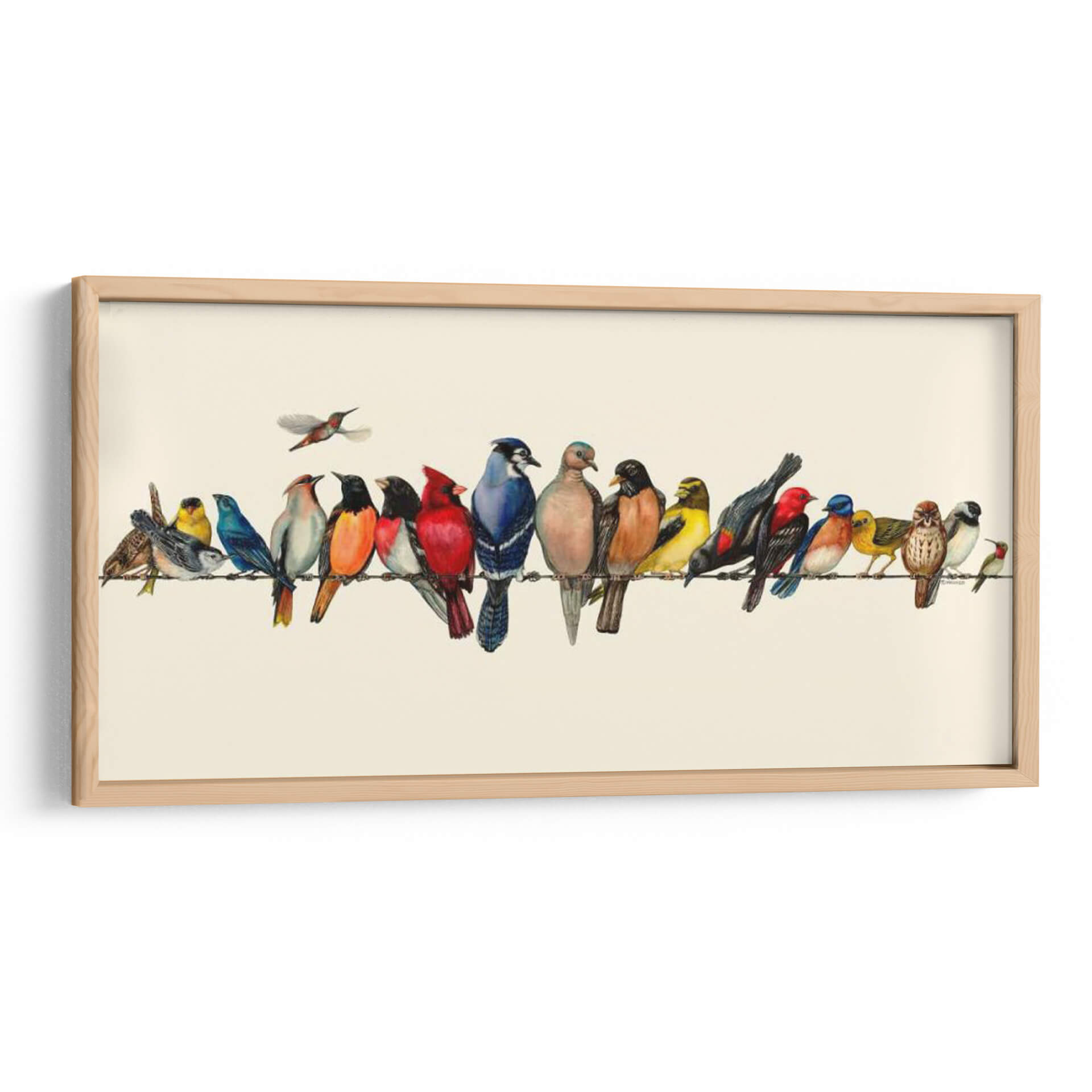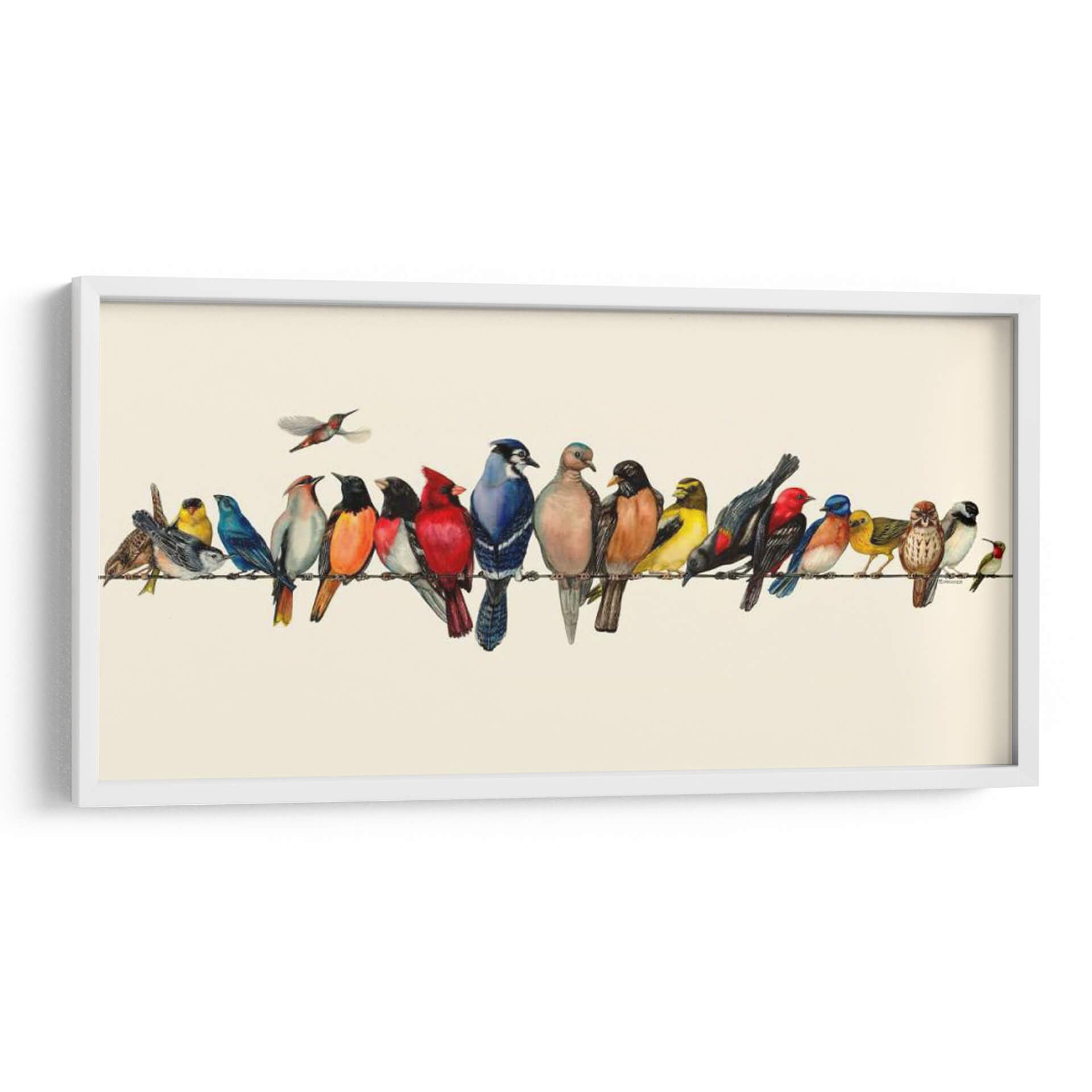 Aporta una dosis de encanto natural y color a tu espacio con este cautivador cuadro decorativo 'Bird Menagerie Iii' de Wendy Russell. La obra presenta una vibrante colección de aves de diferentes especies posadas elegantemente en una línea, cada una con su plumaje detallado y colores distintivos. Desde el rojo intenso de un cardenal hasta el azul eléctrico de un arrendajo y los tonos tierra de otras especies, la paleta de colores es rica y variada, creando un festín visual. El fondo neutro y suave resalta la belleza de cada ave, permitiendo que la composición, que recuerda a las ilustraciones de historia natural, se convierta en el punto focal de cualquier habitación. Este cuadro decorativo es ideal para quienes buscan infundir serenidad, alegría o una conexión con la naturaleza en su hogar u oficina. Su estilo figurativo y detallado se adapta a una variedad de decoraciones, desde rústicas hasta contemporáneas, añadiendo un toque de vida y sofisticación. Imagina la conversación que inspirará este conjunto de aves en tu sala de estar, dormitorio o incluso en un estudio. Es una pieza que celebra la diversidad aviar con una sensibilidad artística exquisita, perfecta para coleccionistas de arte o amantes de las aves.